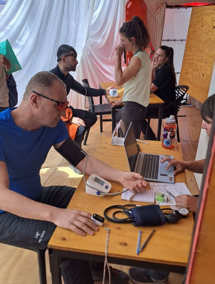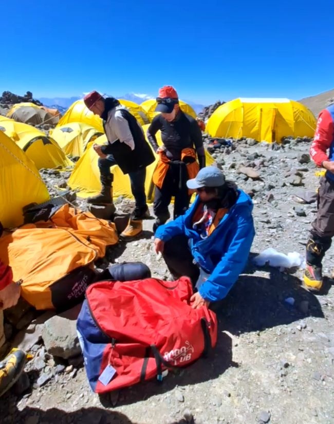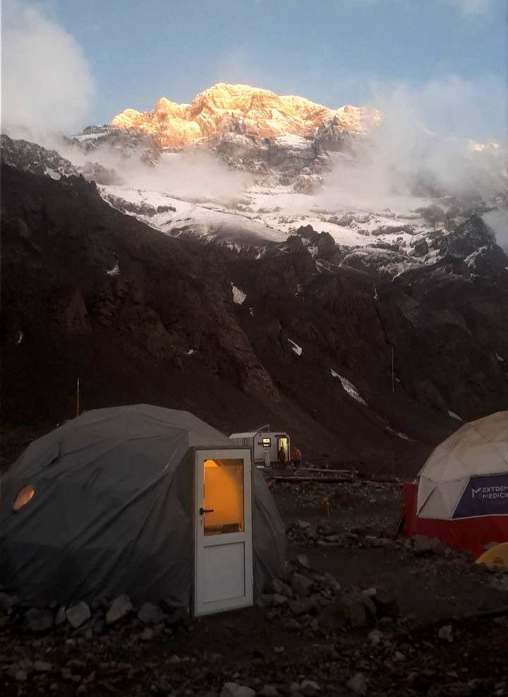 Today we have a day of rest and a medical check. Tomorrow we leave for the final acclimatization rotation, we will spend the night on Nido de Condores. The group guides are Andrey Berezin and Viktor Volodin.