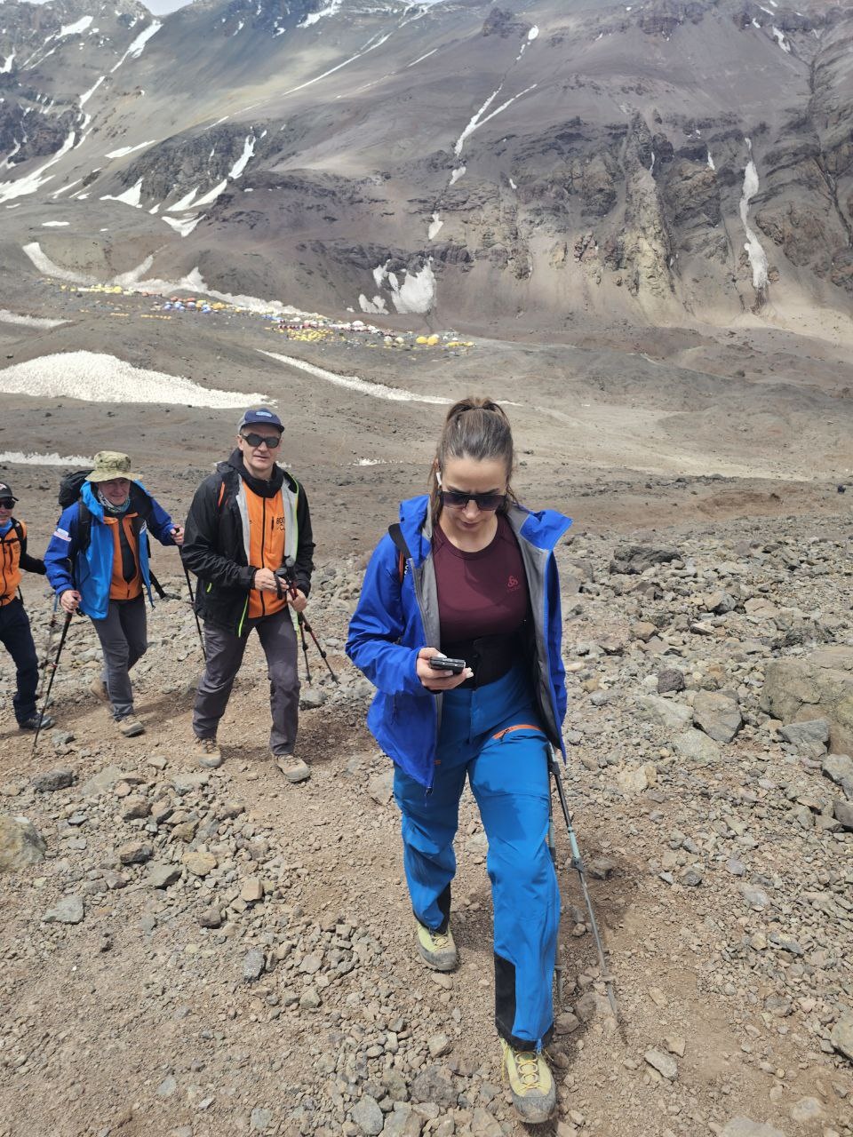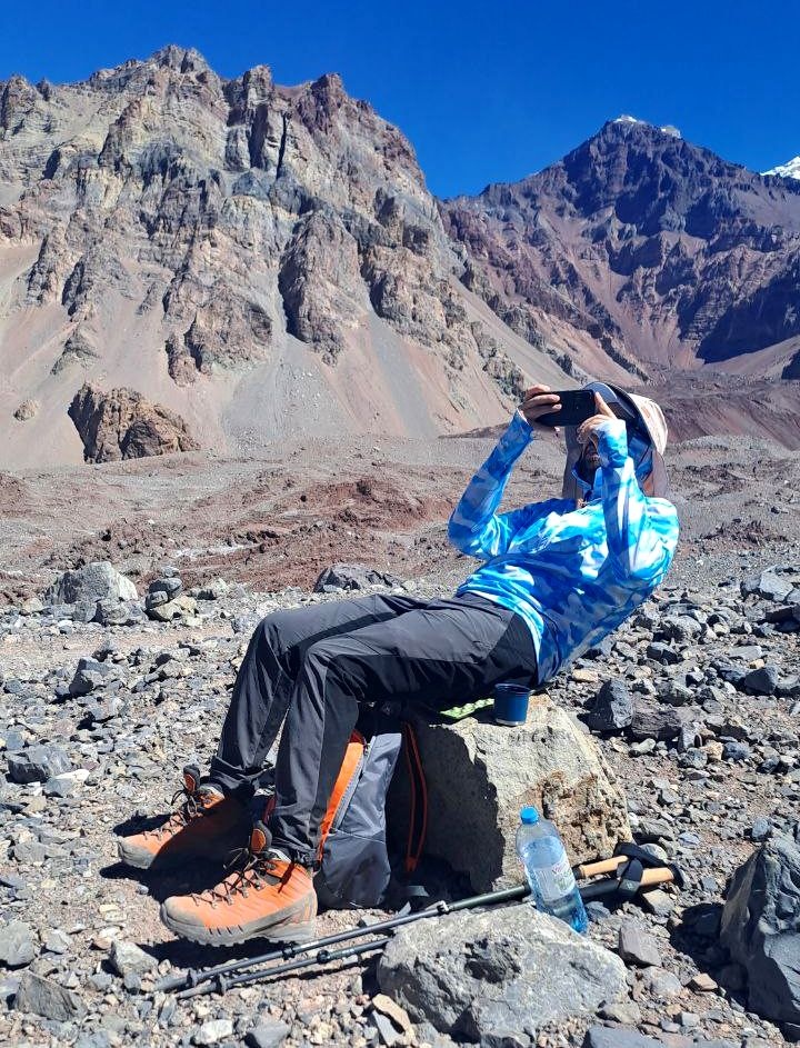 Greetings from sunny Argentina! Today our super group made its first walk, we climbed to the Confluencia camp (3400 m.) We covered the distance at a good pace, all the participants are in excellent shape, now we are resting. Tomorrow is an acclimatization hike to Plaza de France (4000 m.)