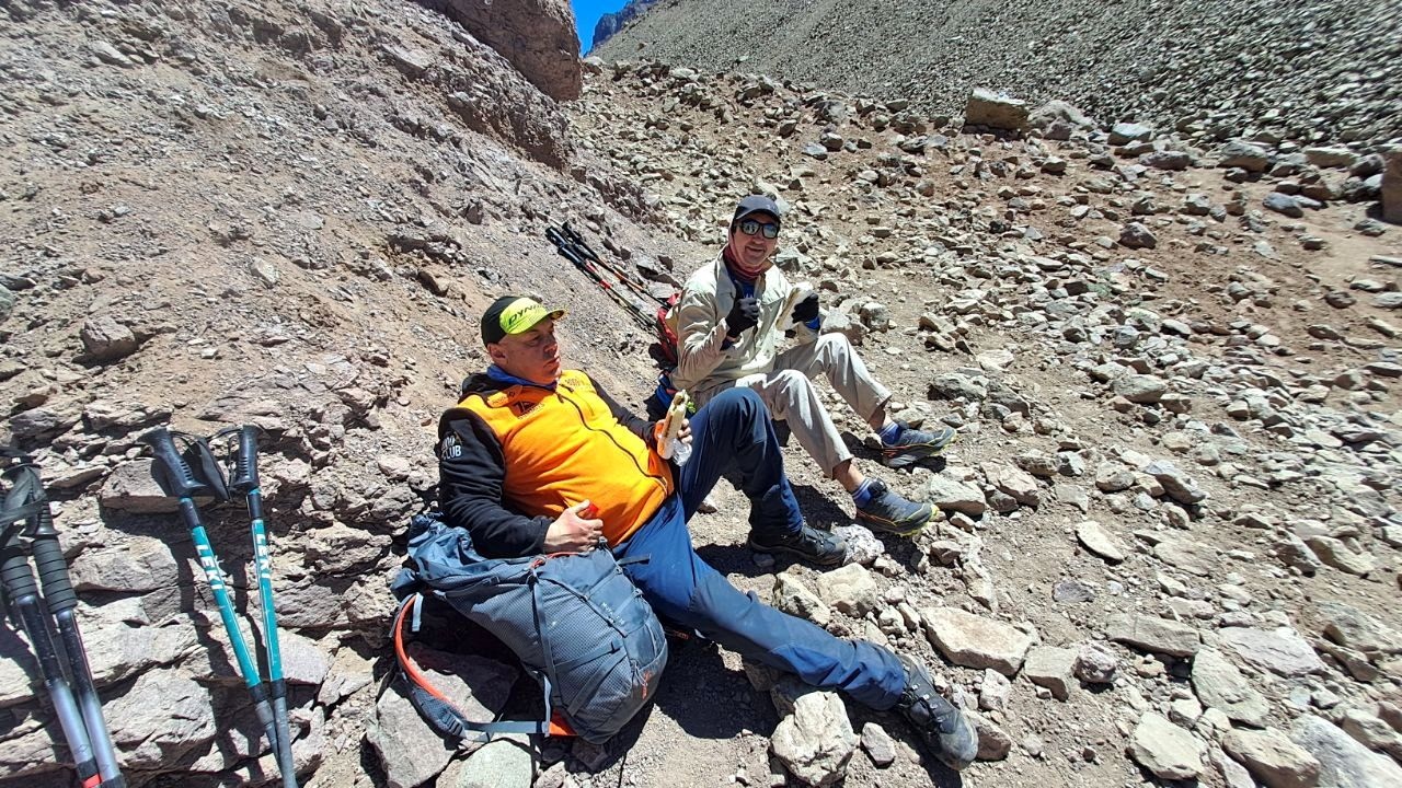 Hola! The "Los Hombres" group continues to acclimatize and prepare for the ascent on the summit of Aconcagua. Today we climbed Plaza Canada, the reached altitude is 5050 meters. Tomorrow we have a day of rest and preparation for the ascent to Nido de Condores, where we have planned to spend a night.