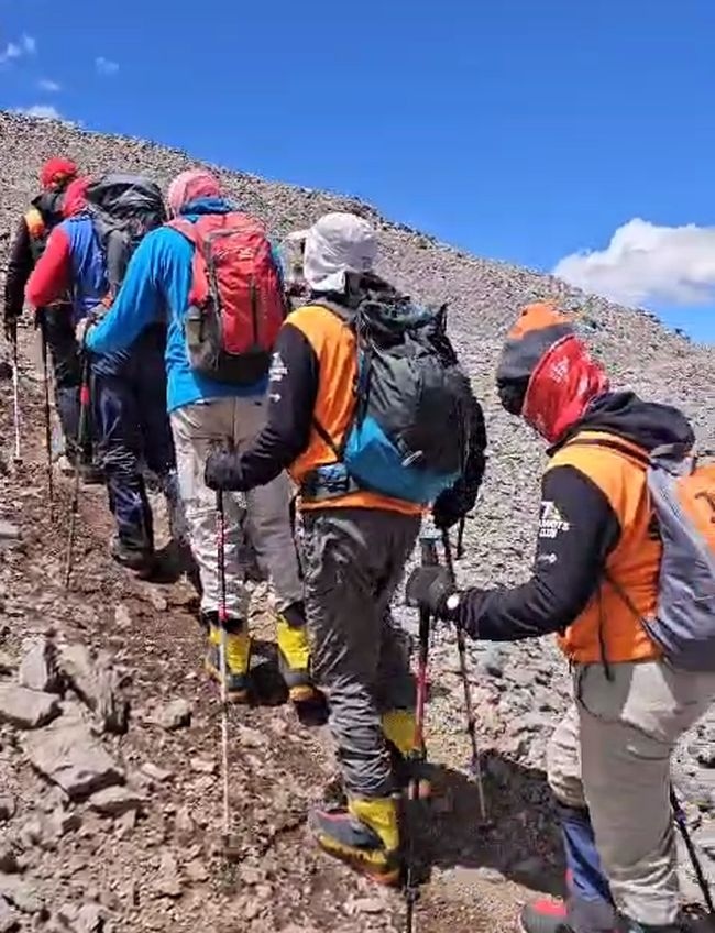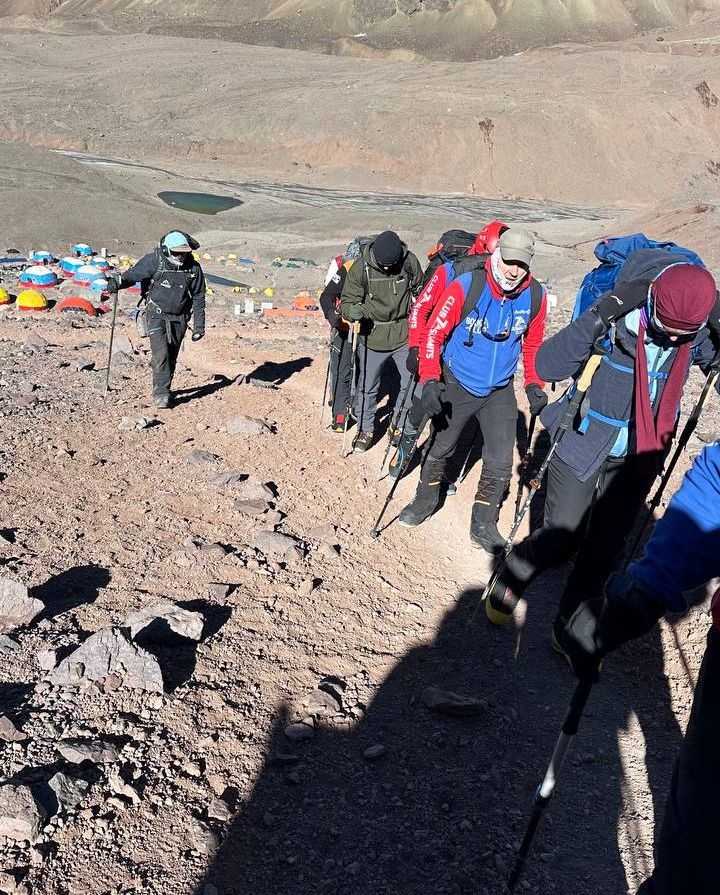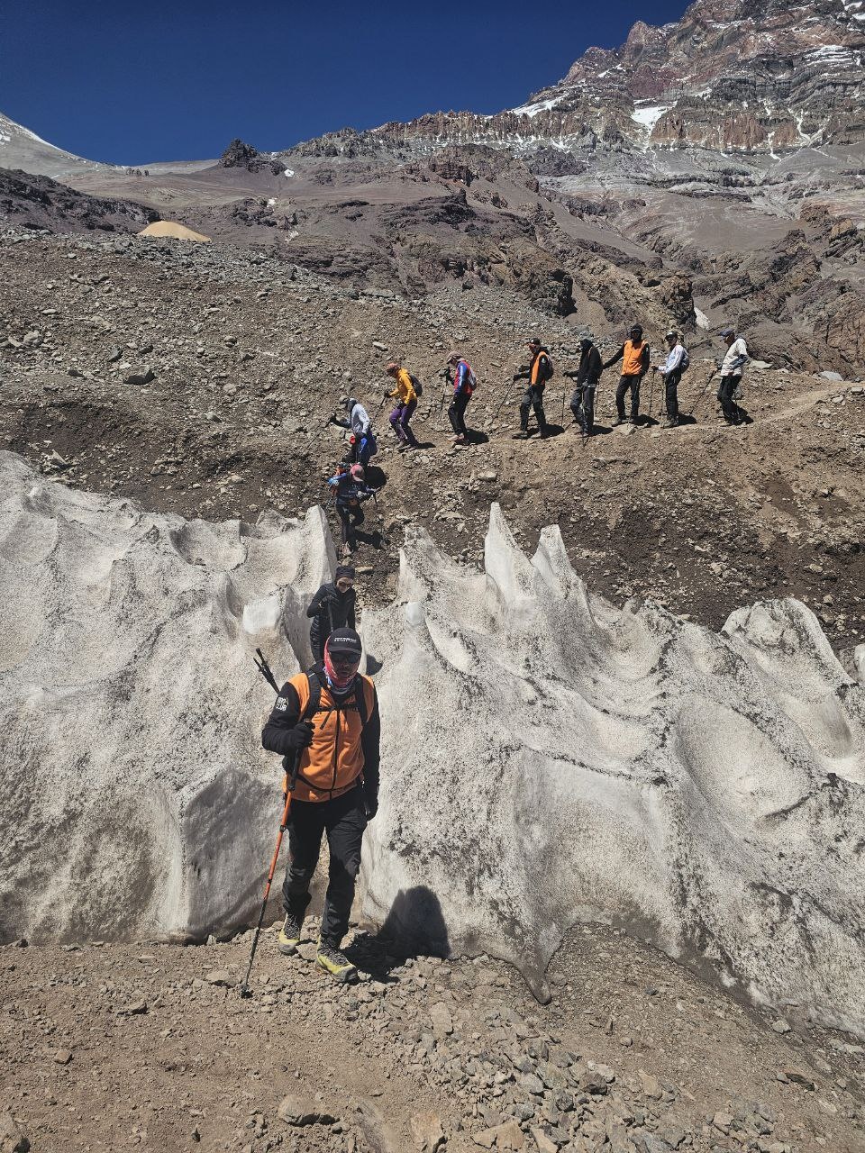 Greetings from the slopes of Aconcagua from the "4th International" group! Today our supergroup made an acclimatization ascent to an altitude of 5,000 meters. At a good pace we climbed to the area of the place called Camp Canada and descended to Plaza de Mulas. Tomorrow the group will have a day of rest and preparation for new challenges. The group is ready to reach a new altitude and continue its ascent. The group's guides are Dmitry Semenov and Andrey Sheynov.