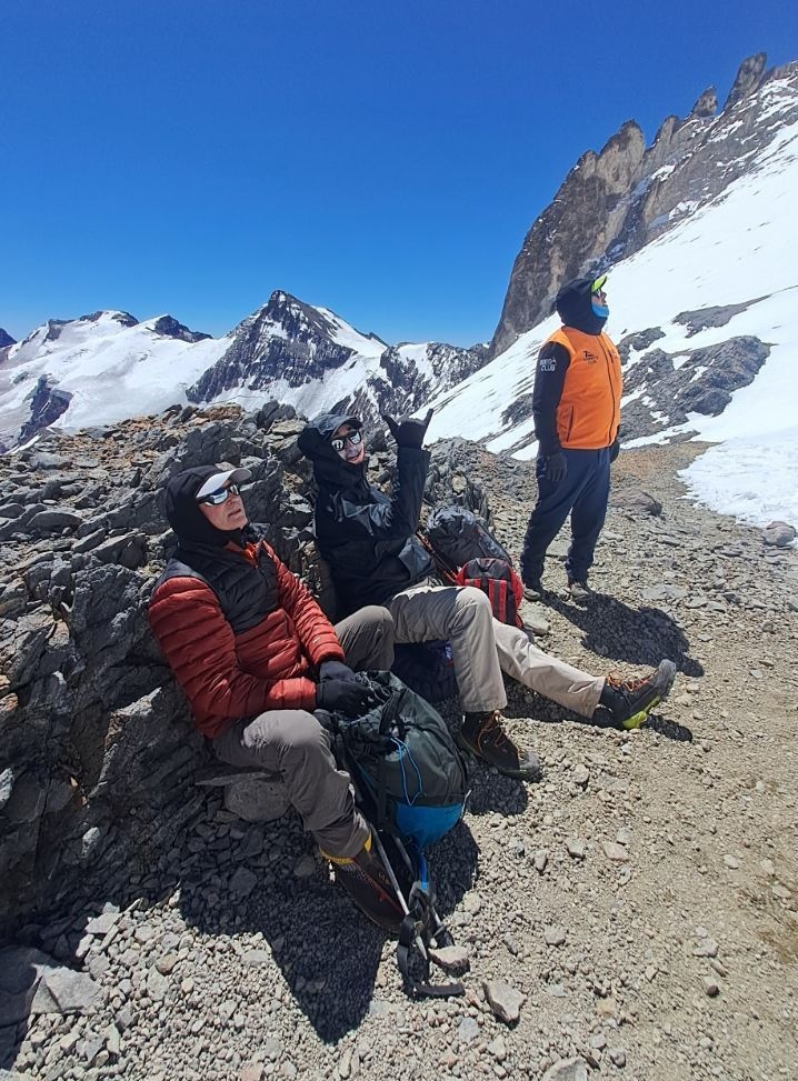 Greetings from sunny Argentina! Firstly, our group has changed its name - now we are "4th International". Today we left the Confluencia camp for an acclimatization hike in the direction of Plaza Francia and, as planned, reached an altitude of 4000 meters. Returning to the camp, we had lunch and underwent a medical examination. Tomorrow, we have a difficult trek to the Plaza de Mulas base camp, the group is ready for it. The group's guides are Dmitry Semenov and Andrey Sheynov.