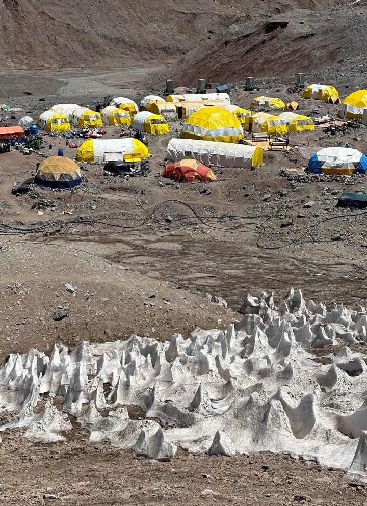 All greetings! Today is not from a very sunny Argentina. Today our super group "Dohodyagi" made their acclimatization hike to an altitude of 4000 m, where we luckily got caught in a snow charge. Having descended to the camp, we underwent a medical examination, where we showed ourselves from an excellent side. Tomorrow we leave for our base camp Plaza de Mulas (4300 m).