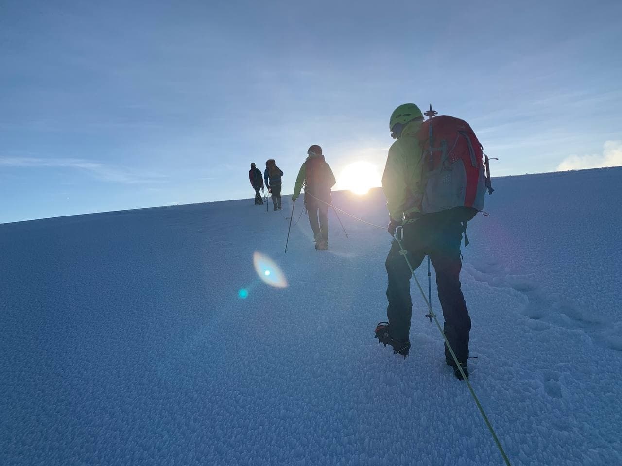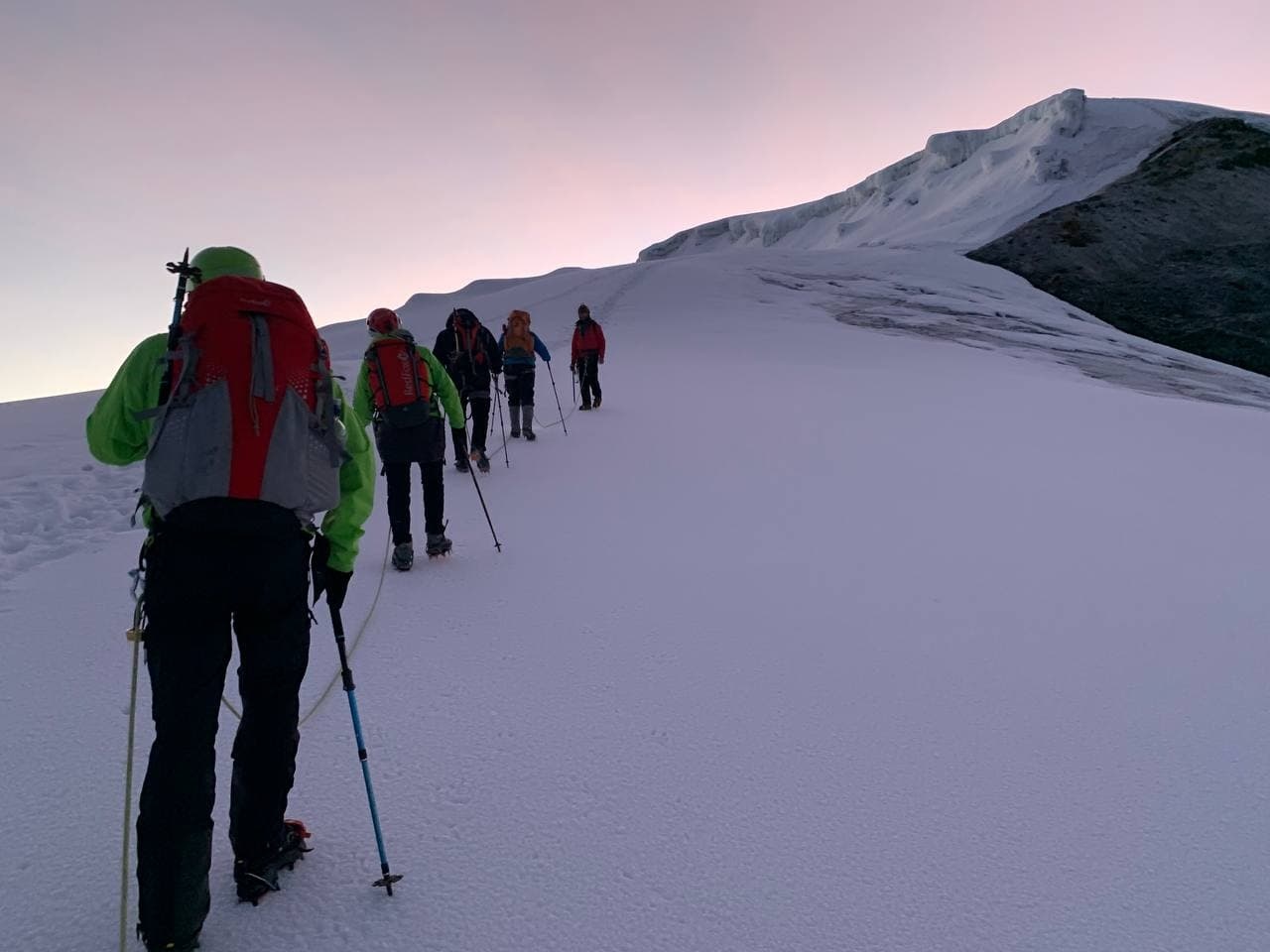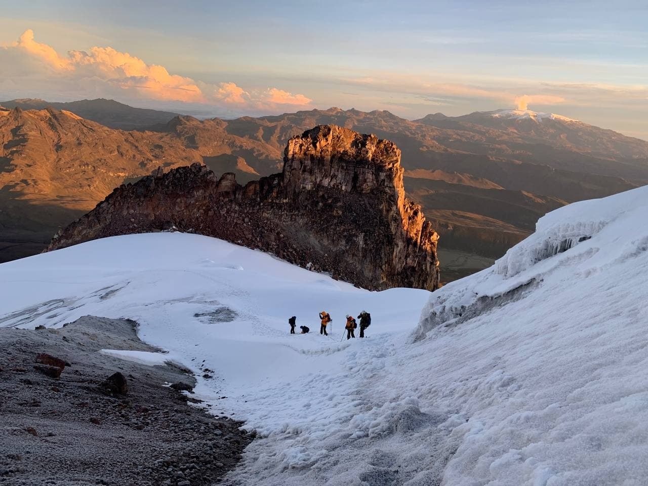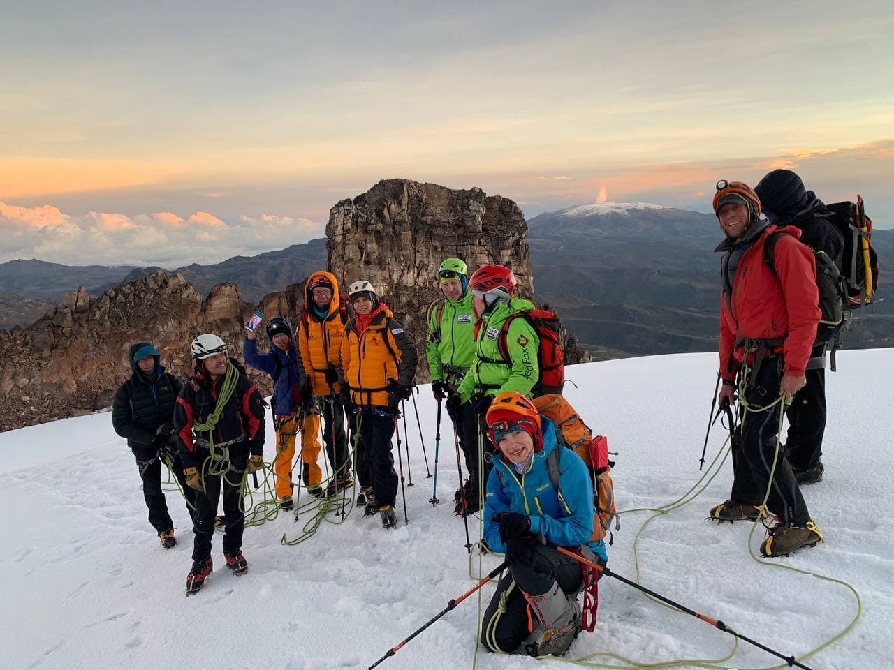 We were very lucky with the weather. On the night of the assault, it was warm and windless. We passed the dangerous rock section quickly with belay. And when we went out on the glacier, the dawn began and the views were stunning.  We were very impressed with the smoking active volcano Ruiz. At the top, we took a lot of photos and even almost made a landslide, jumping too much for the summit photo.