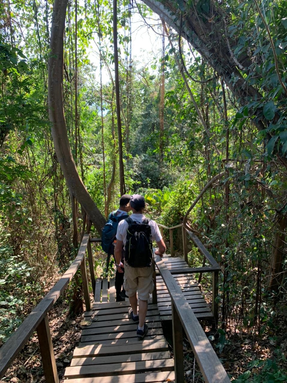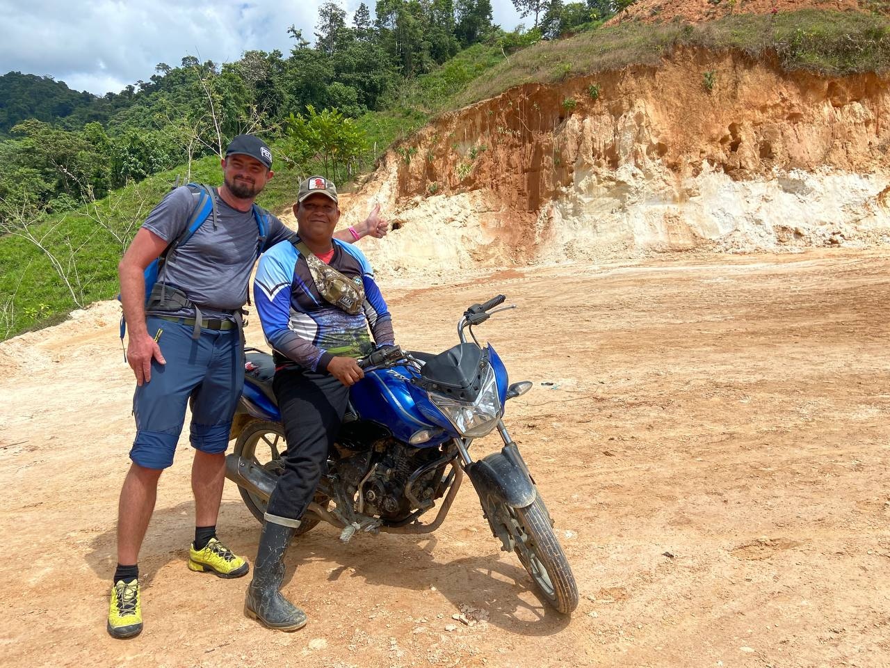 On February 17, we went on the route. On the first day, we drove part of the way on motorbikes and the second half (10 km) walked to the town of Mumake, where we stopped for the night. The route passes through the jungle, through thickets of tall century-old trees. The place of the overnight stay is located on the river bank, and how nice it was to plunge into the cool water after the route! For dinner, we cooked delicious local fish.