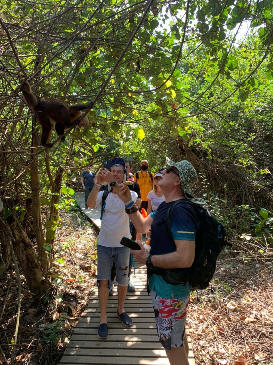 Hello everyone from Colombia! Last night we took a walk in the Tayrona National Park. We fed monkeys and iguanas, swam in the bays, dived and enjoyed the views. We arrived in Bogota late last night. We're flying home today. We really liked the country. Goodbye, Colombia! See you again!