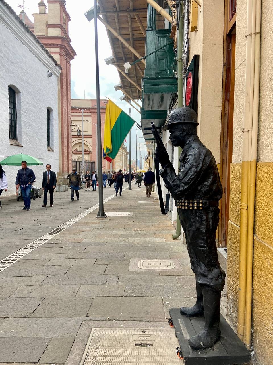 In the morning we walked around the historical center of Bogota. We walked around the central square of the city — Plaza de Bolivar, built in the early 19th century. Life is in full swing here at any time of the day: street performers, numerous fruit stalls, ice cream shops, souvenir shops, coffee shops with delicious coffee, vendors of handicrafts from banknotes and sellers of fried ants — a local delicacy.