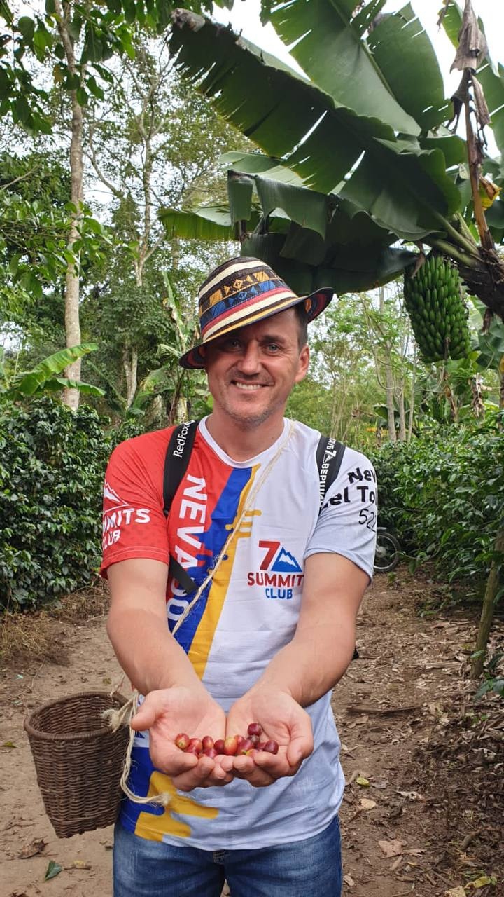 Hello to the 7 Summits Club from Colombia! Today we left the capital of Colombia and moved to Salento, a small provincial town in the Colombian Andes. After arriving by jeep, we moved to the Finka del Ocaso coffee farm, where we learned a lot about the traditions of coffee cultivation. We collected coffee beans and tried to brew Colombian coffee on their own.