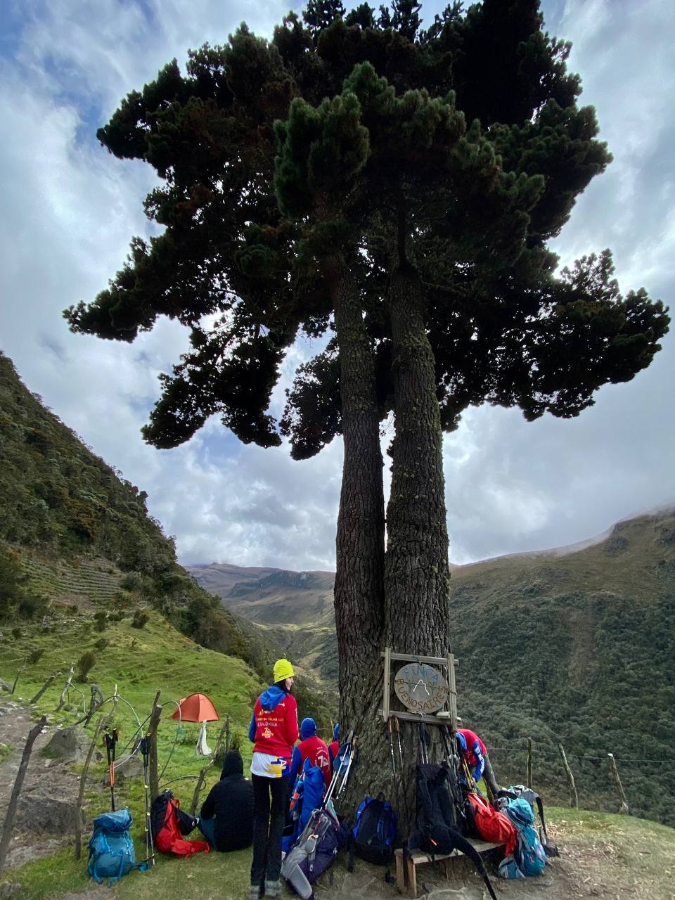 The views are spectacular, along the way we stopped at a tall Columbian pine tree, which is only 3 years younger than our main boss.  Here we drank delicious tea made from coca leaves.