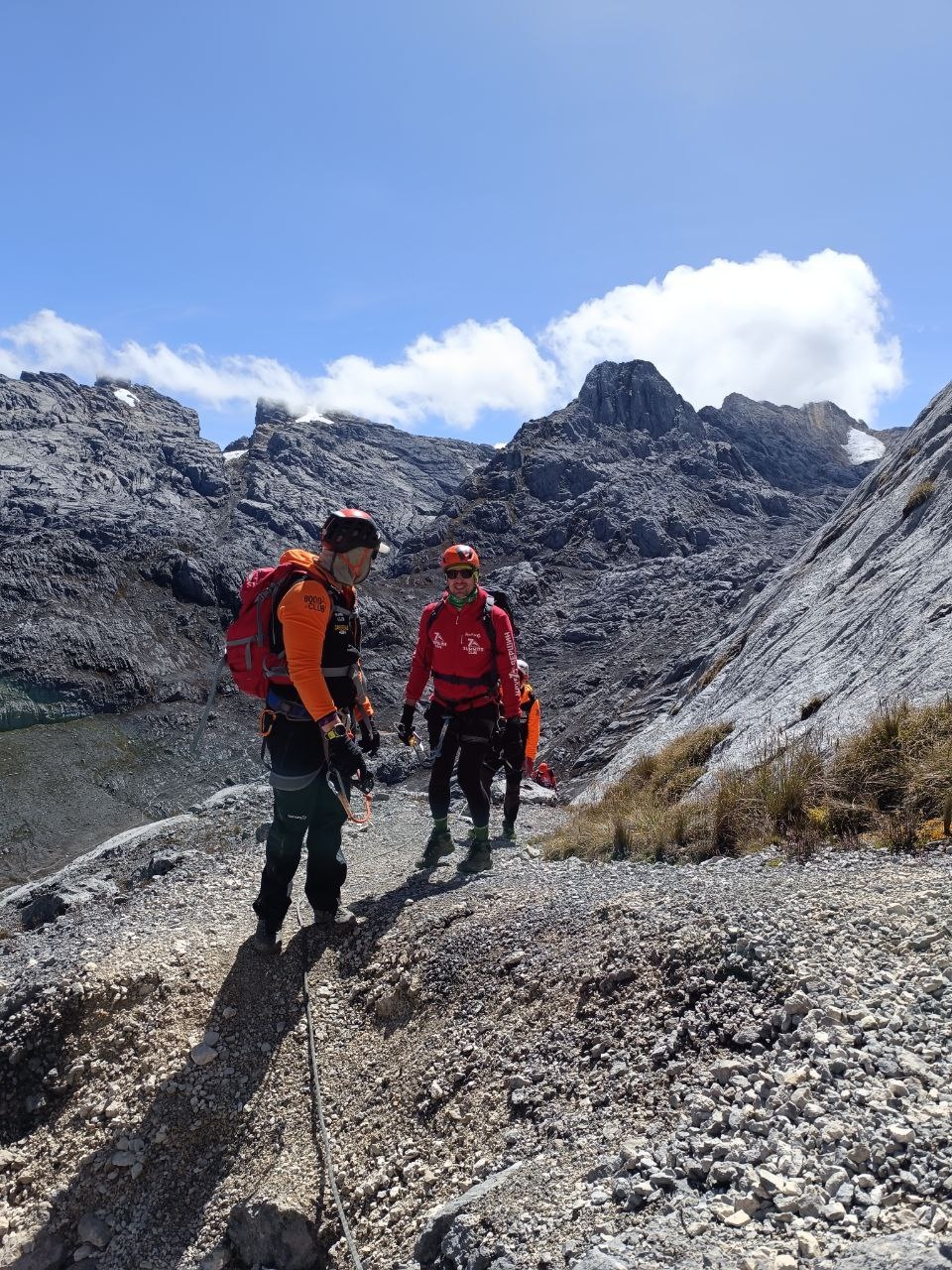 In 25 minutes, our entire group (7 people) under the leadership of Artem Rostovtsev successfully landed in the area of the Base Camp (4200 m), where our camp had already been set up in advance with large sleeping tents and a special recently brought cabin from Red Fox (Team Fox). After resting, the members went on an acclimatization rotation. They trained to work on ropes. An assault on the summit is scheduled for tomorrow morning. We are keeping our fingers crossed for our first group on Carstensz!