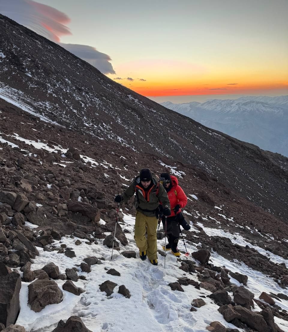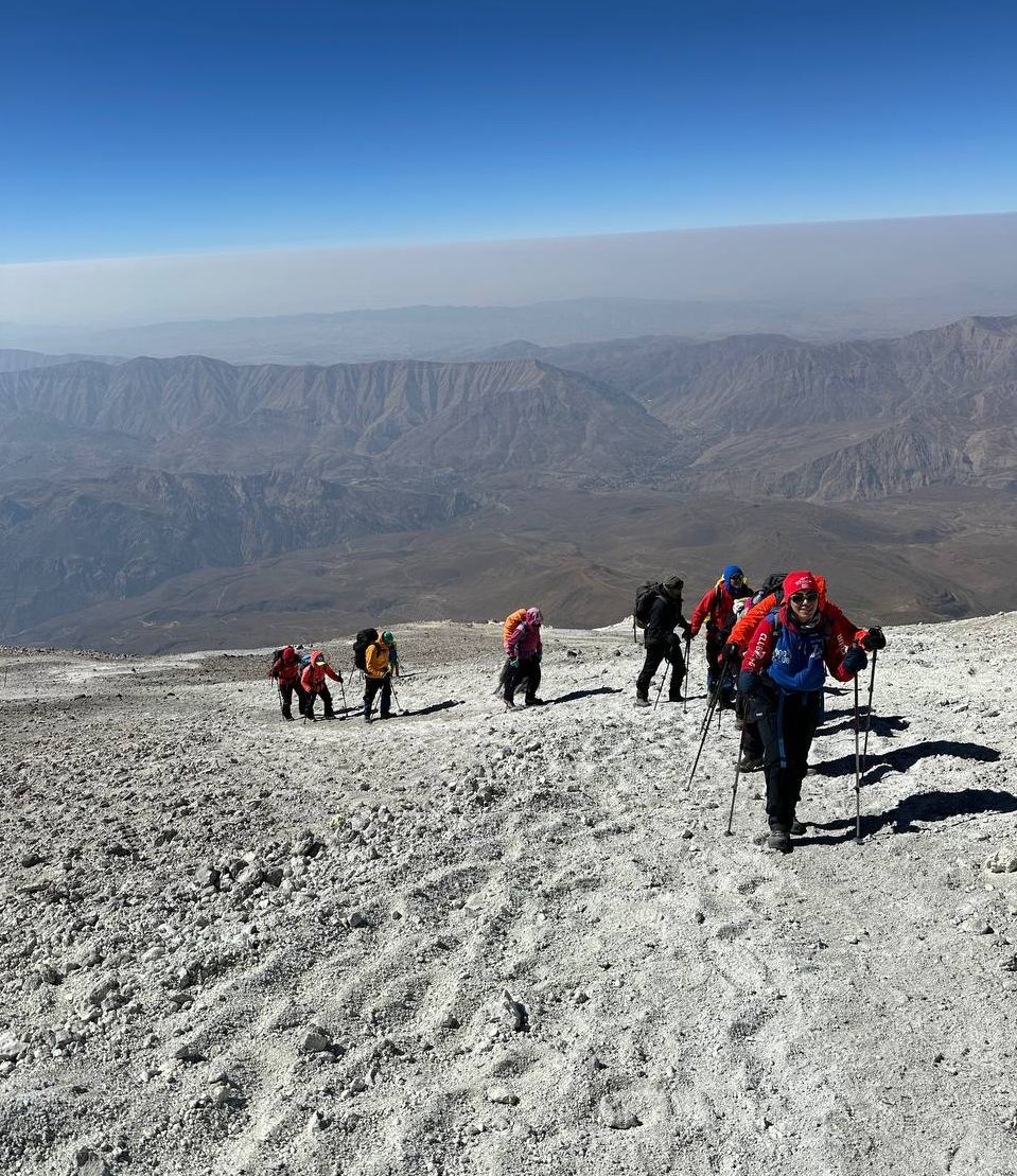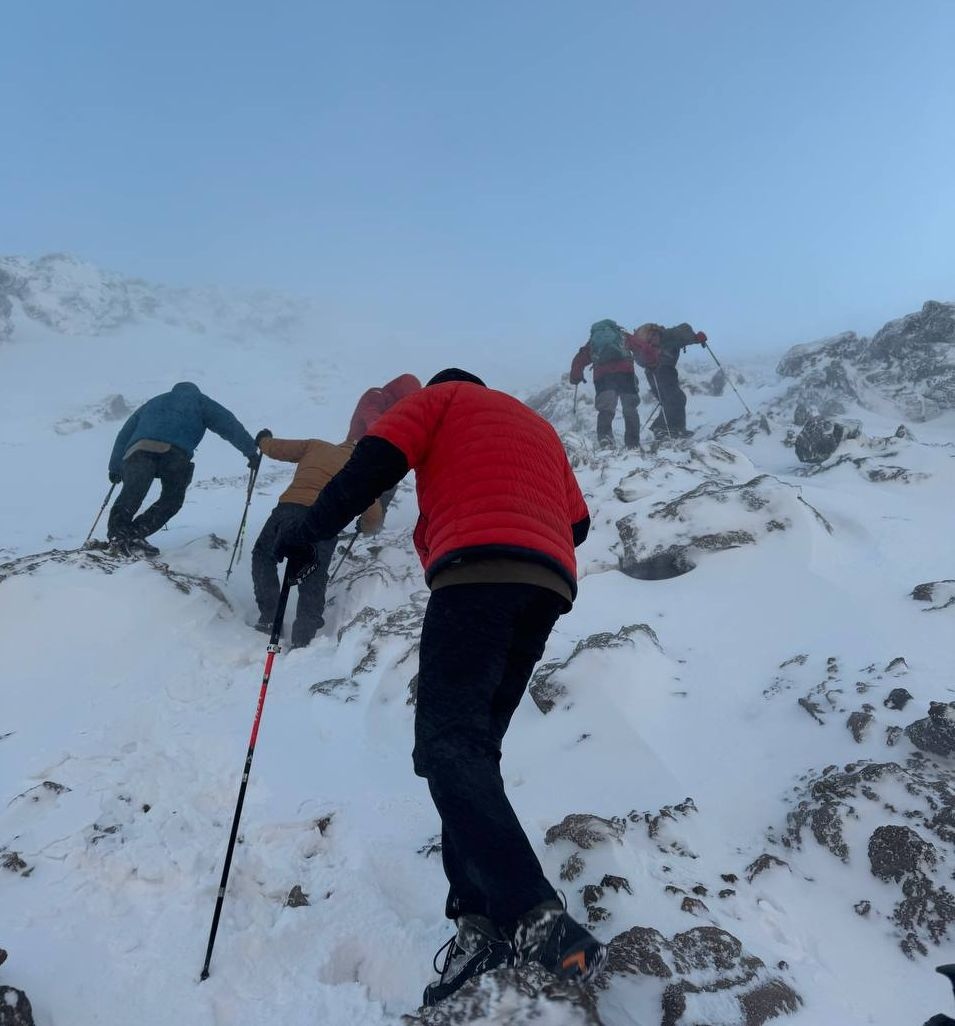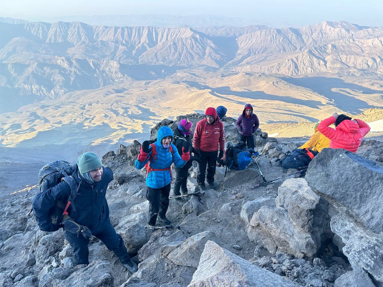 Greetings from Iran from the "X Group"! Today we reached our goal and climbed Mount Damavand. The day before there was a thunderstorm with snow all evening, so we postponed the start time several times. In the end, we finally waited for a weather window and successfully climbed to the top. On the descent, we were caught in a thunderstorm with snow again. But now we are already in the camp and resting.