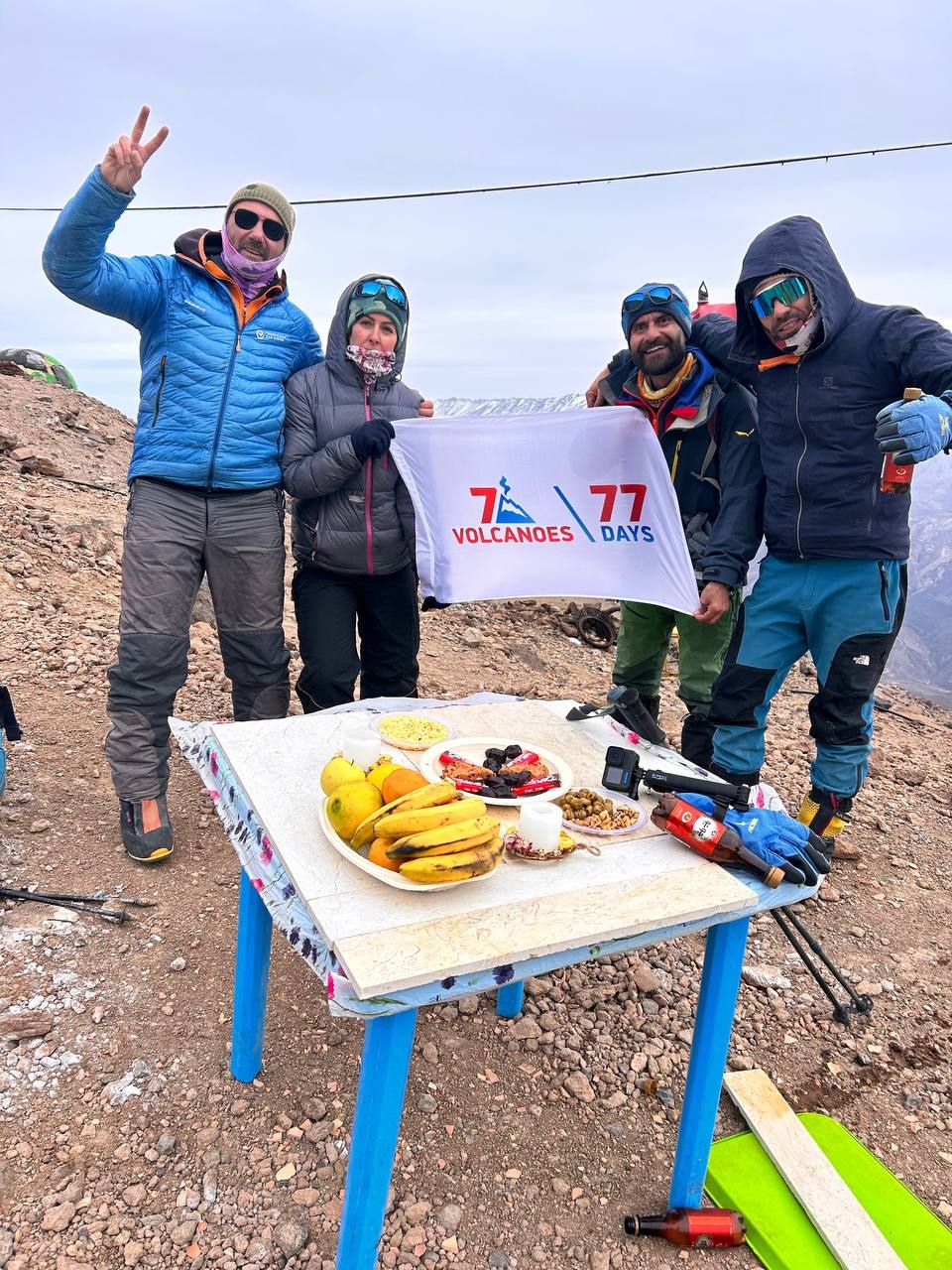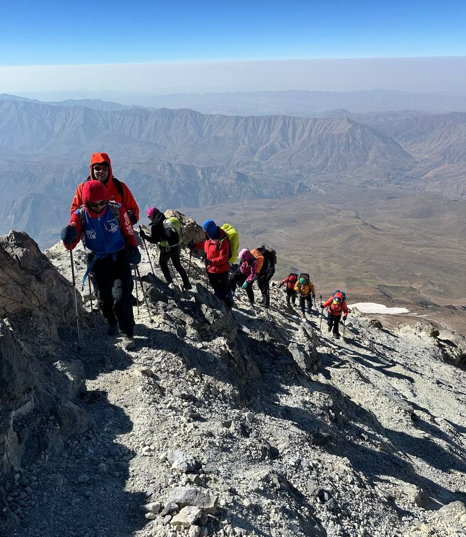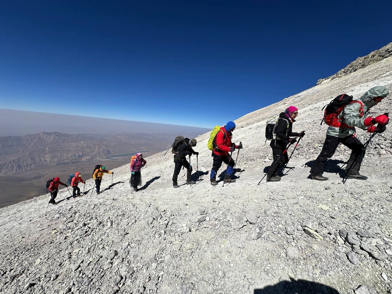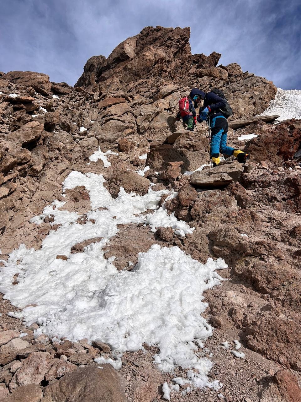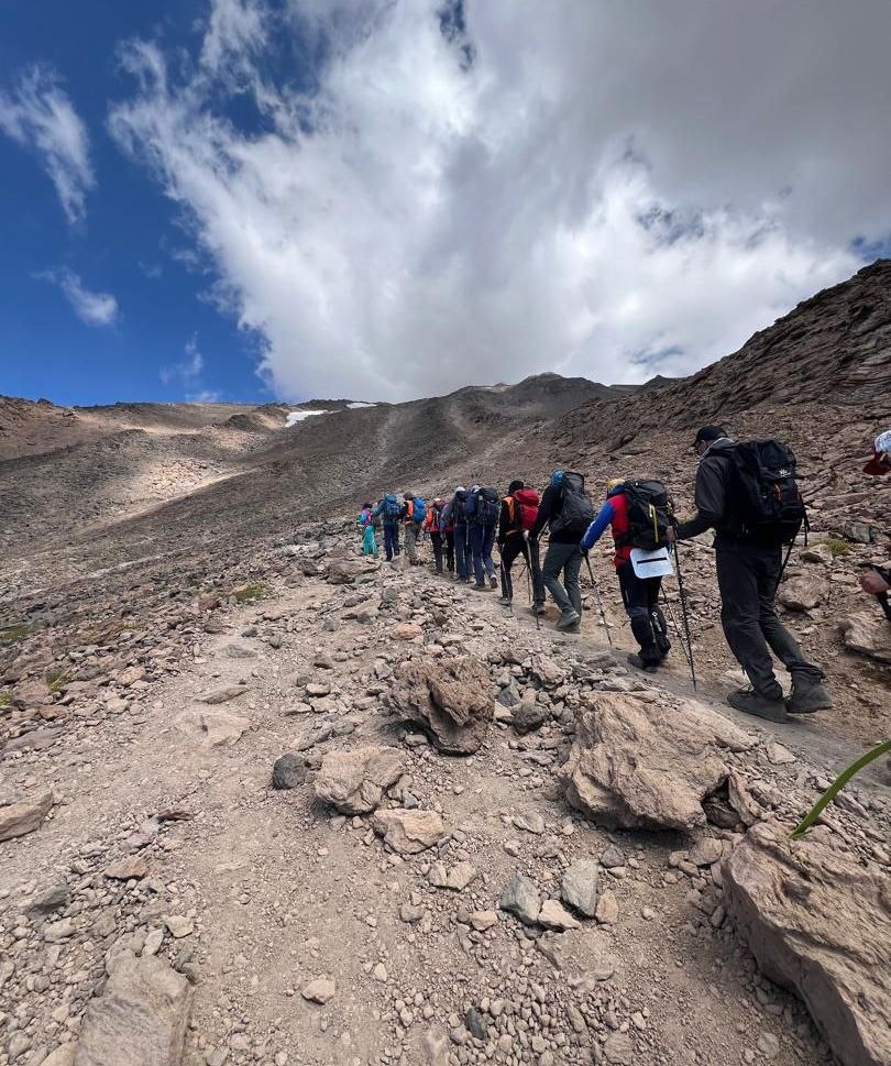 Greetings from Iran from the "X Group"! Today we reached our goal and climbed Mount Damavand. The day before there was a thunderstorm with snow all evening, so we postponed the start time several times. In the end, we finally waited for a weather window and successfully climbed to the top. On the descent, we were caught in a thunderstorm with snow again. But now we are already in the camp and resting.