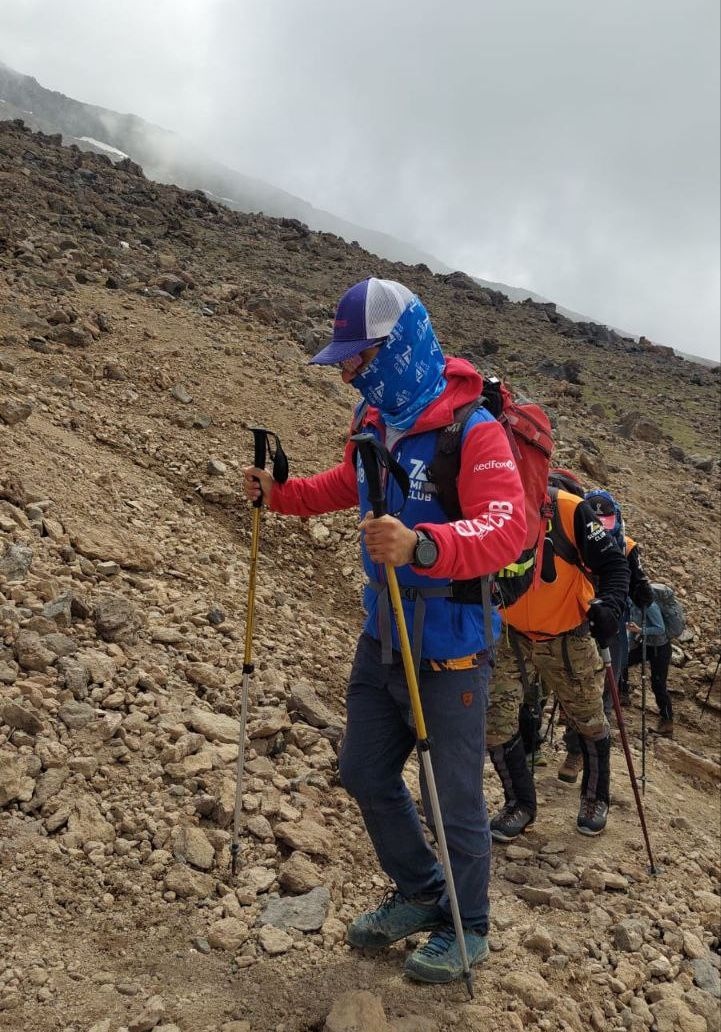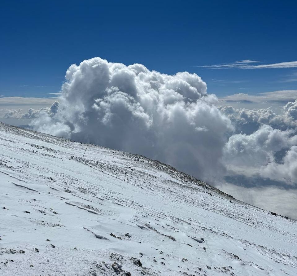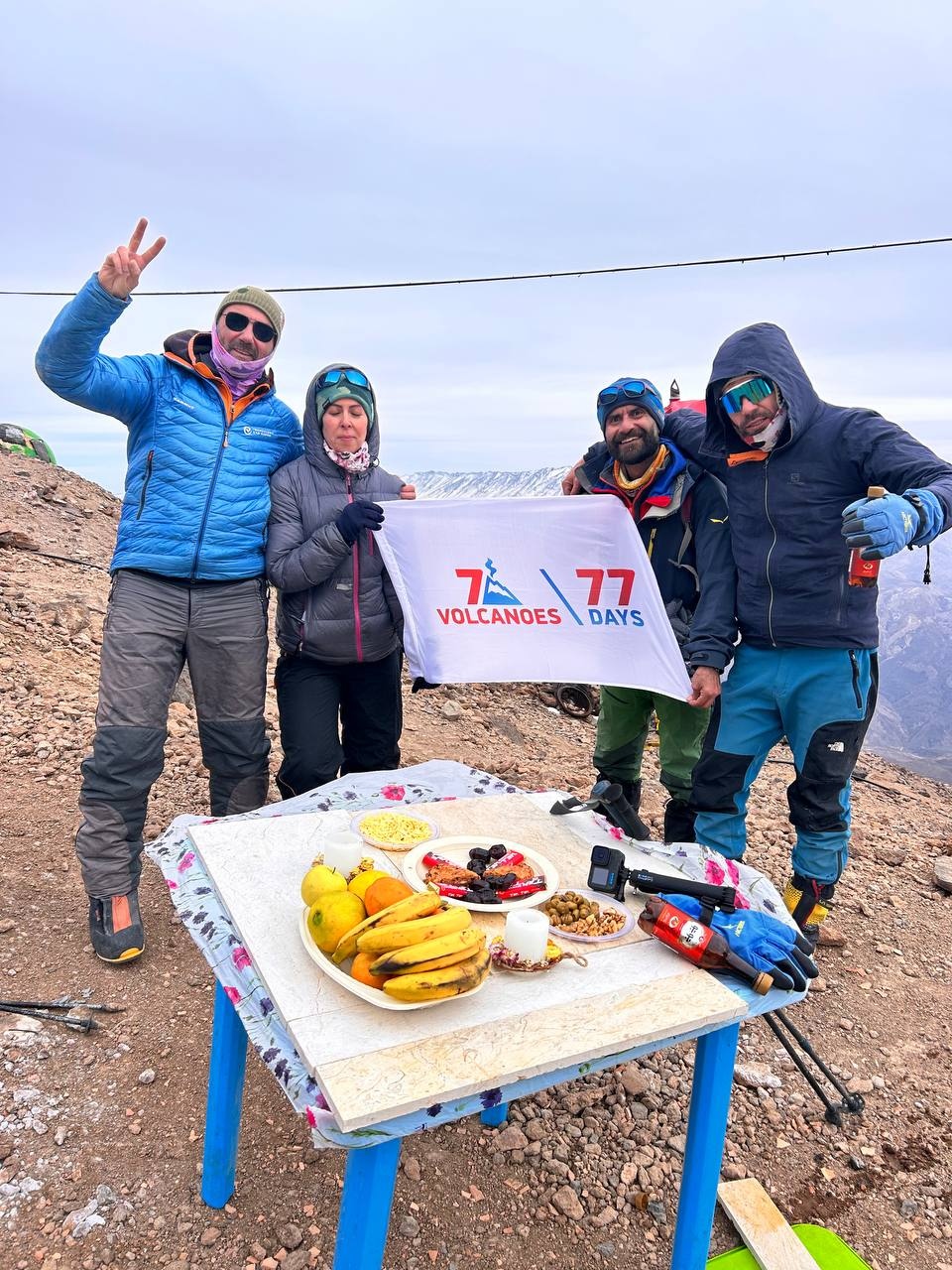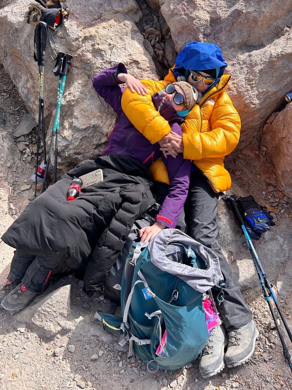 Greetings from Iran from the "X Group"! Today we reached our goal and climbed Mount Damavand. The day before there was a thunderstorm with snow all evening, so we postponed the start time several times. In the end, we finally waited for a weather window and successfully climbed to the top. On the descent, we were caught in a thunderstorm with snow again. But now we are already in the camp and resting.