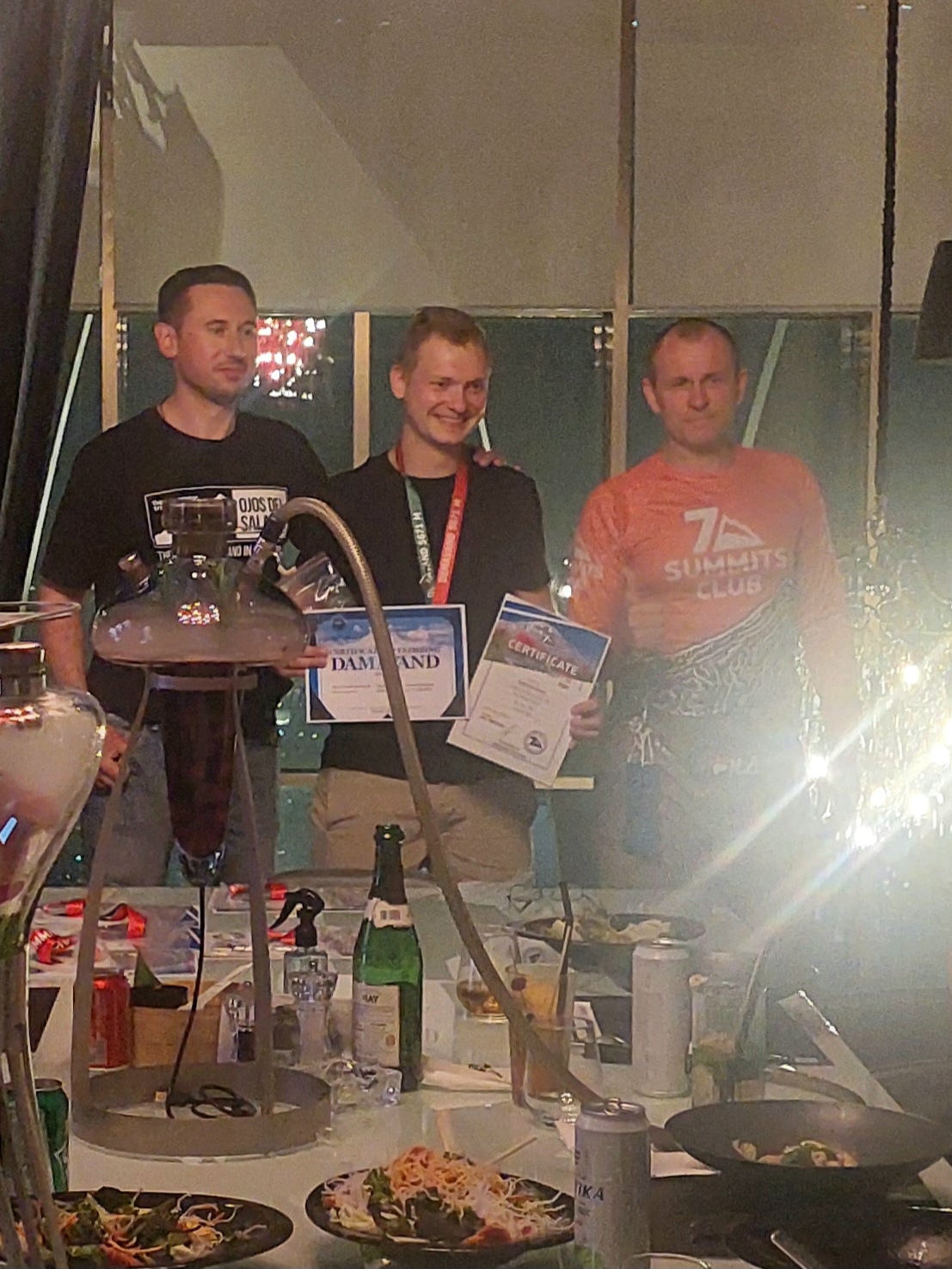 We completed the program with a festive dinner at the Sky Lounge restaurant on the 21st floor of our hotel!  The participants were also awarded certificates from the 7 Summits Club and from our Iranian partners, and medals were awarded for completing the Summits from the Seven Volcanoes program. Everyone is happy!