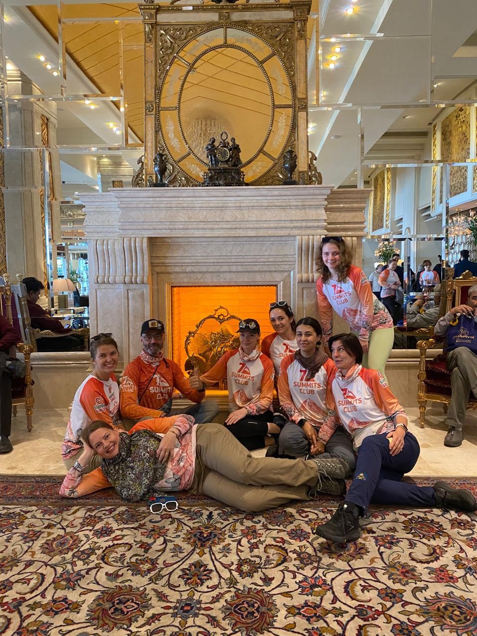 Greetings from Iran! The new group of the 7 Summits Club has started the program of climbing Damavand! Tehran greeted us with the usual heat, under +36. However, in the north of the city, at the foot of the mountain range, where our magnificent hotel Espinas Palace is located, it is more comfortable. The first day of the stay was devoted to getting to know the city. The program included lunch in the panoramic restaurant of the Milod Tower at an altitude of 280 m, a sightseeing tour of Tehran and a visit to the Golestan Palace, the residence of the Qajar dynasty. We managed to do everything, even left a couple of hours to relax in the hotel spa. The welcome dinner was held in the Diba restaurant, numerous appetizers, traditional Iranian kebabs and shashliks were appreciated by the group members. During the day we got to know each other better and wished each other a successful ascent. The name of the group will be announced in the next news item. Guides Andrey Selivanov and Valery Myasoedov.