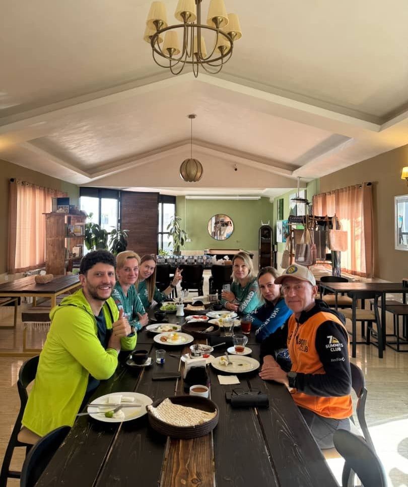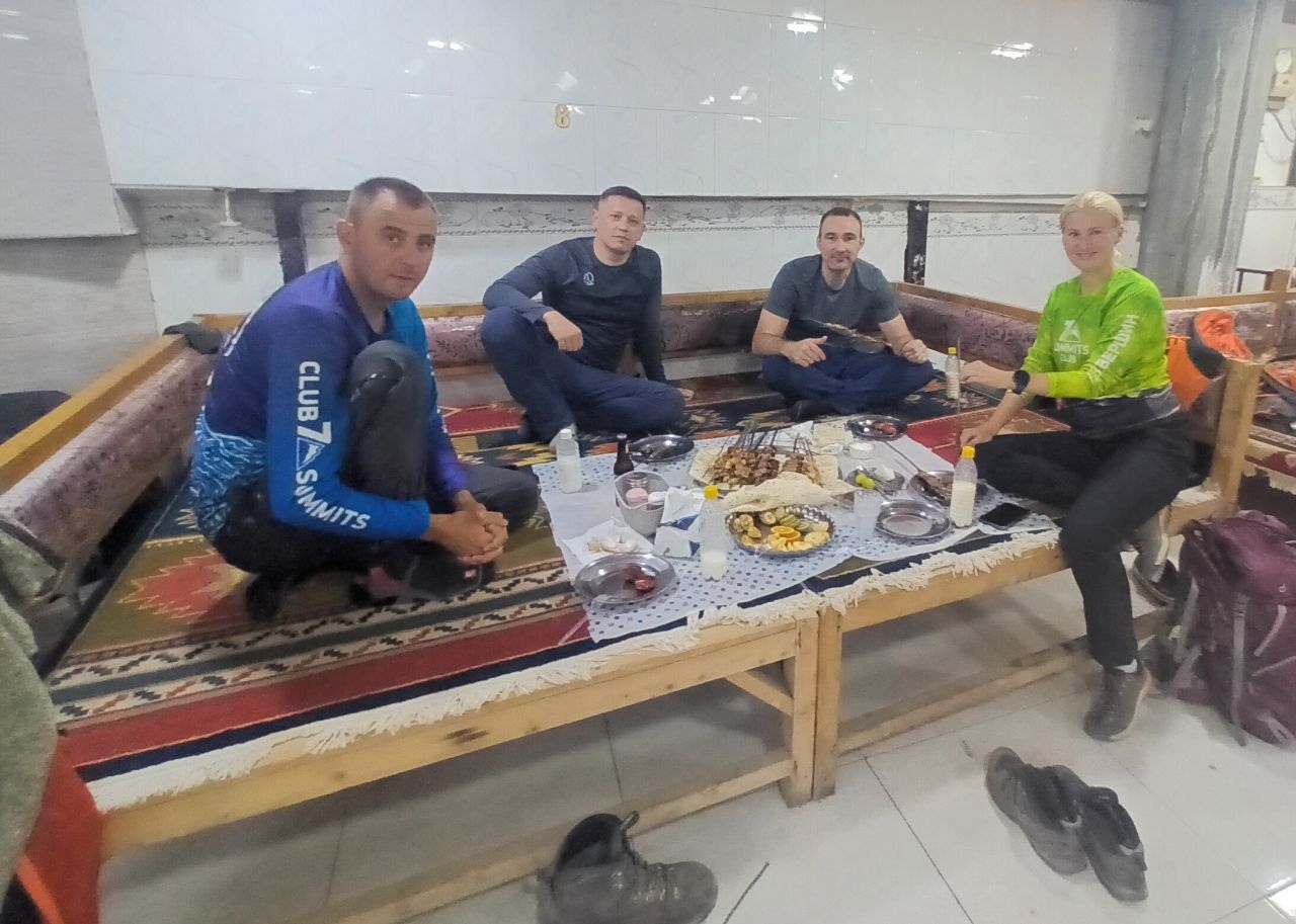 Greetings from Iran! Yesterday, the participants of the new 7 Summits Club program - "Group X" arrived here. We checked into the hotel, had a briefing. Today we climbed Mount Tochal, looked at Tehran from above. Then we went down to the hotel, we will rest. We eat delicious kebabs and olives. And in general, Iranian cuisine is very tasty.
