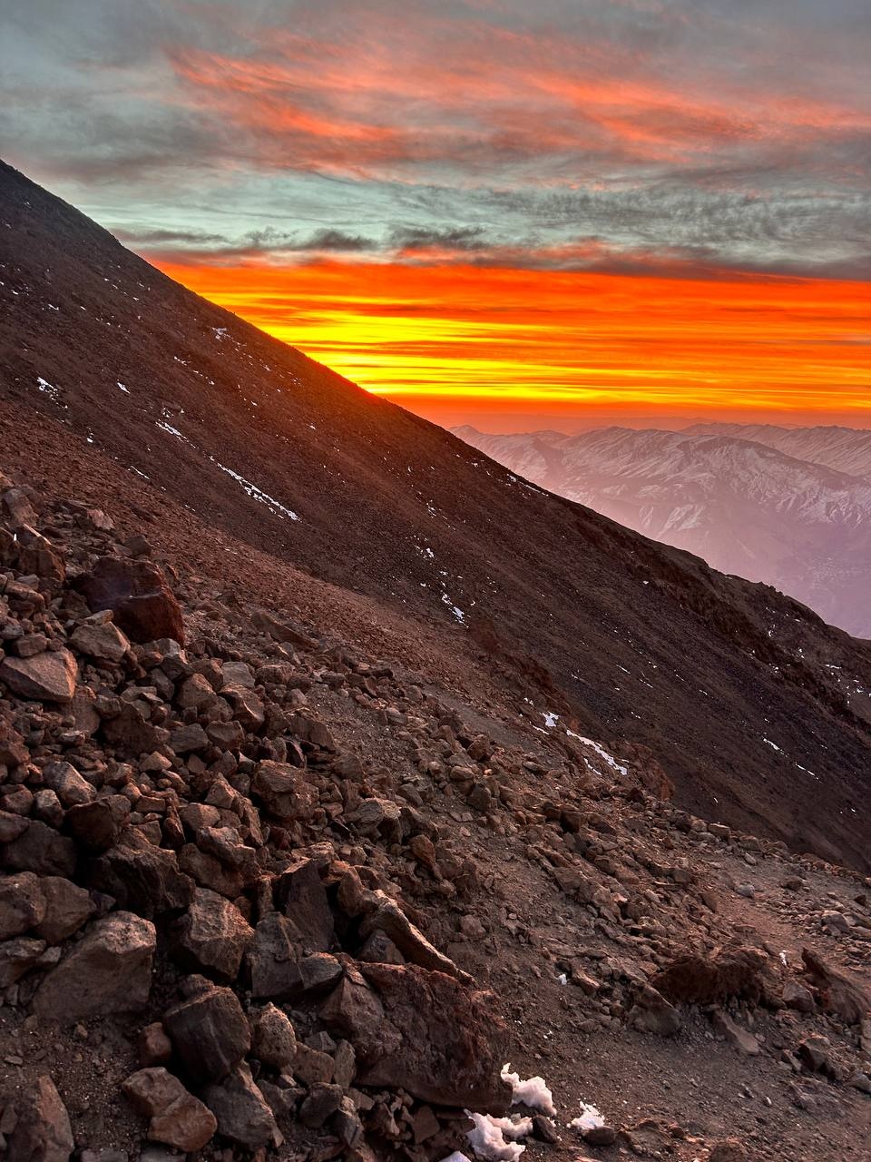News from Iran. Today, in three and a half hours at a super-even pace, we gained a kilometer of altitude and reached the refuge at an altitude of 4200 meters. While we were walking, the wind didn't bother us much, we even walked half the way in fleece jackets. But at the shelter it was already blowing quite a bit, and although the sun was shining, it was still cold. We tried not to get scared and prepared for the assault. The departure was scheduled for 4:30.