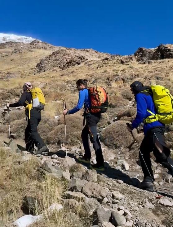 Greetings from Iran! The "Oktyabryata" group ascended to Camp 3, also known as the assault camp, at 4,200 meters today. The weather was favorable—it was cool and windless, and we climbed at a good pace. The peak season on the mountain is almost over; there are only a few other people in camp, although the weather conditions so far appear quite suitable for a summit attempt. It was great to see our old friends—the jeep drivers and muleteers—who are always happy to help us, despite the low season. Special thanks to our Iranian girls—guide Parisa and cook Narges—for the photo shoot! They certainly added a special touch to this news.