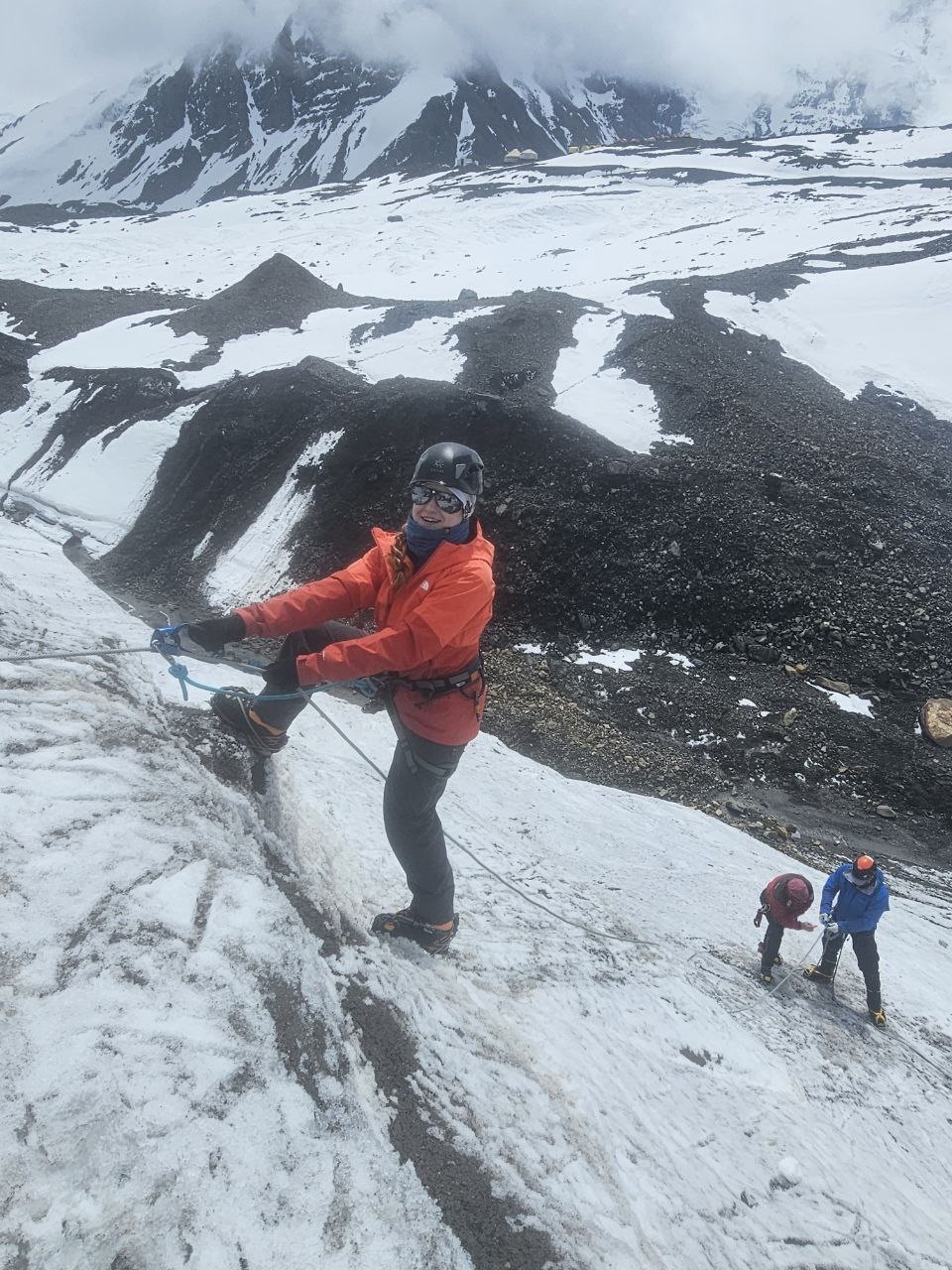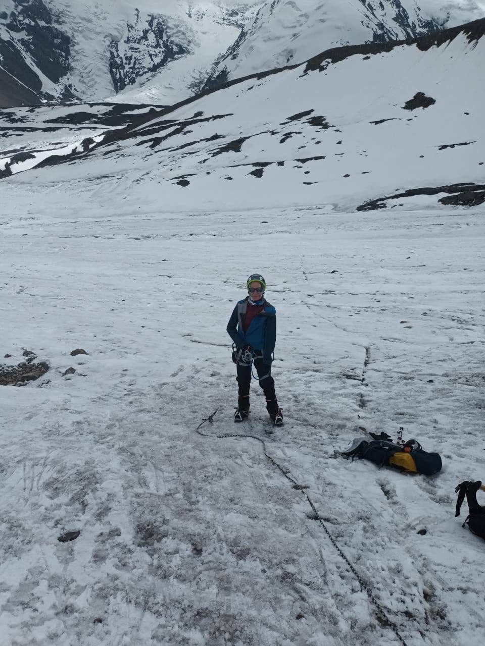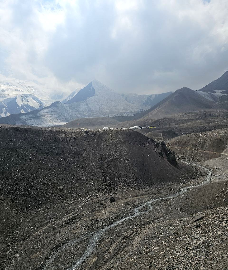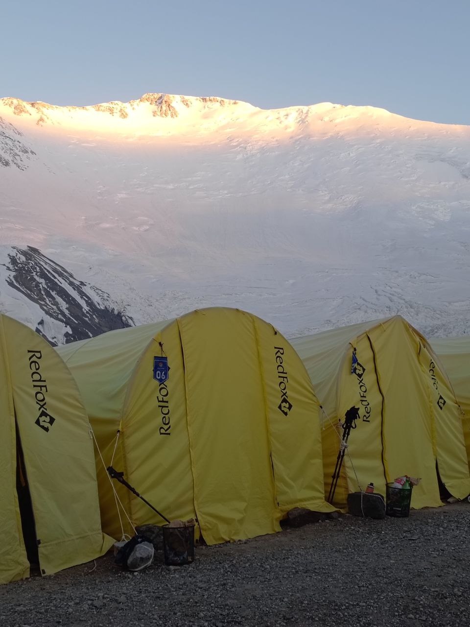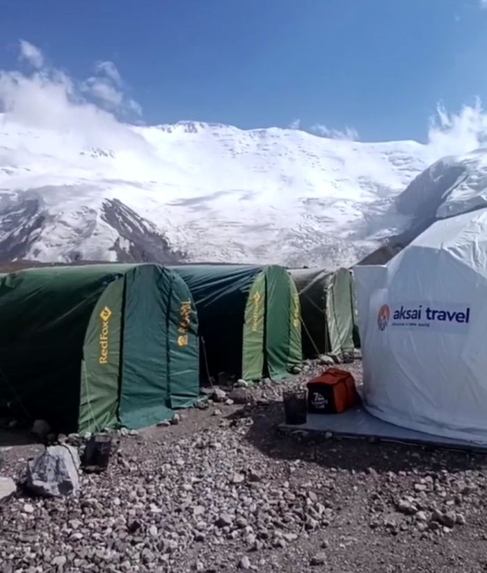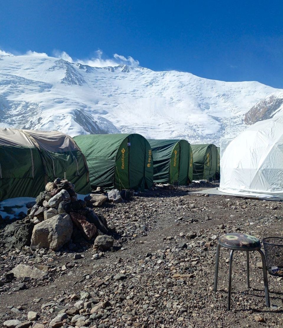 Greetings from Kyrgyzstan from Lenin Peak from the group "Always ready-s"! We are already in the First Camp at 4,400 m! We reached it at a good pace in 5 hours. We didn't have time for lunch according to the schedule, but, of course, they were waiting for us, and the stuffed peppers were universally approved. The weather is not good, it is even more or less acceptable before lunch, which we took advantage of, today we held snow and ice classes, remembered the skills of using jumars and ascender devices. After lunch, it was swept away, we rest in comfortable tents with mattresses, pillows and blankets, and electricity is supplied to each tent, a light bulb and a pilot for charging. It's somehow more pleasant to experience bad weather this way.