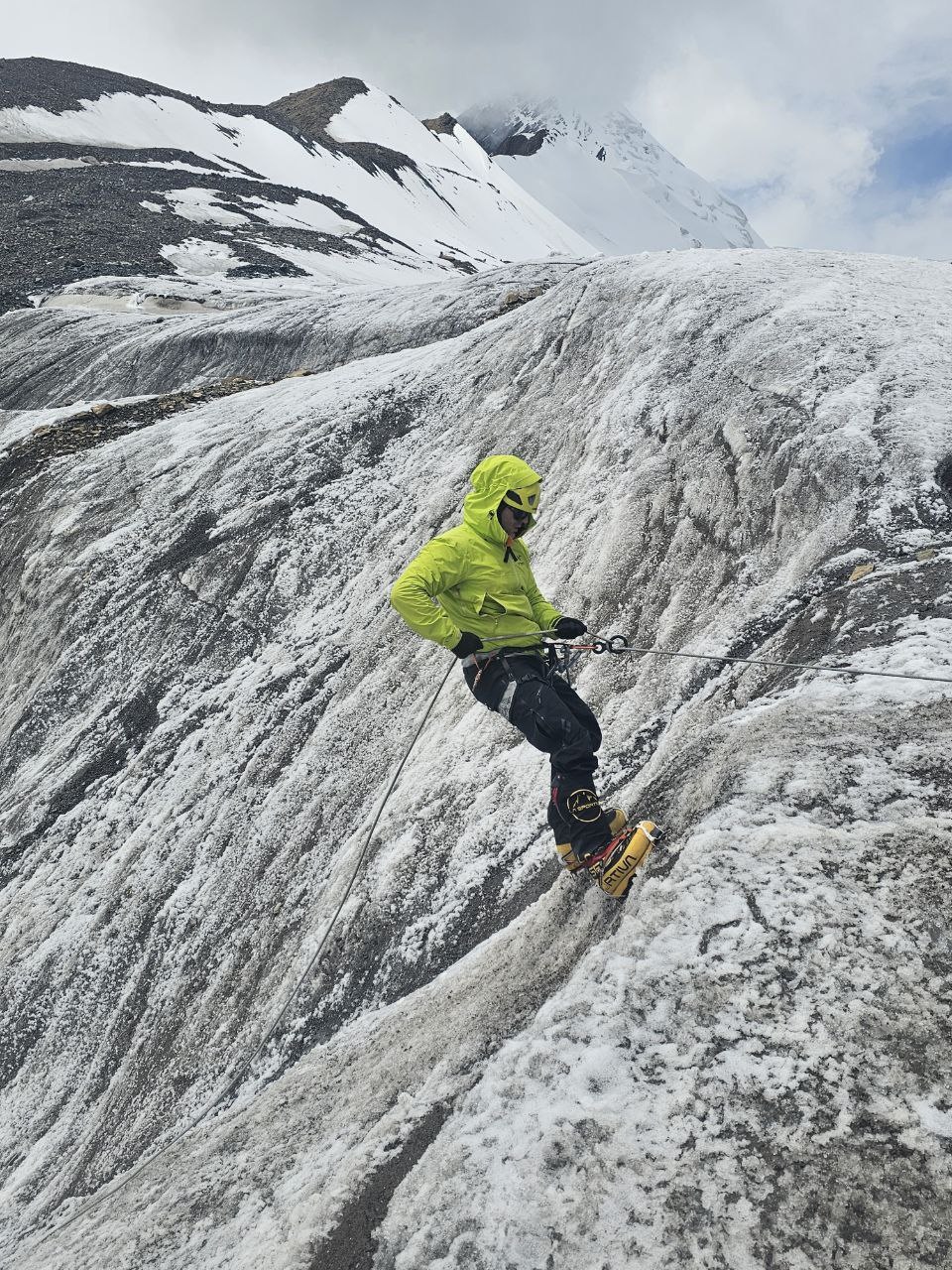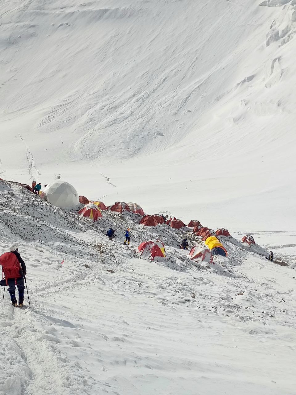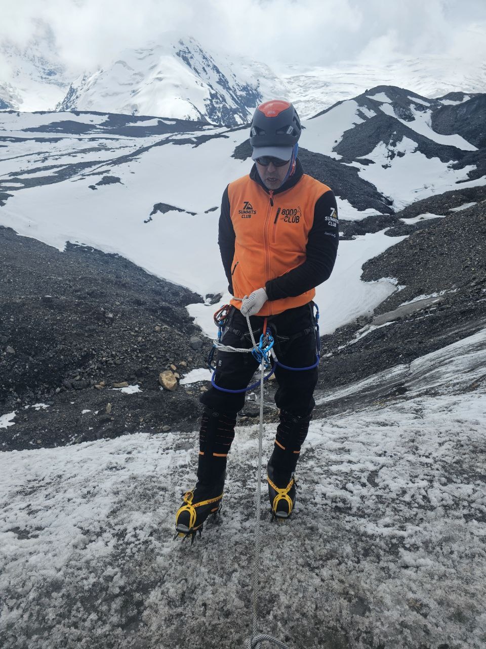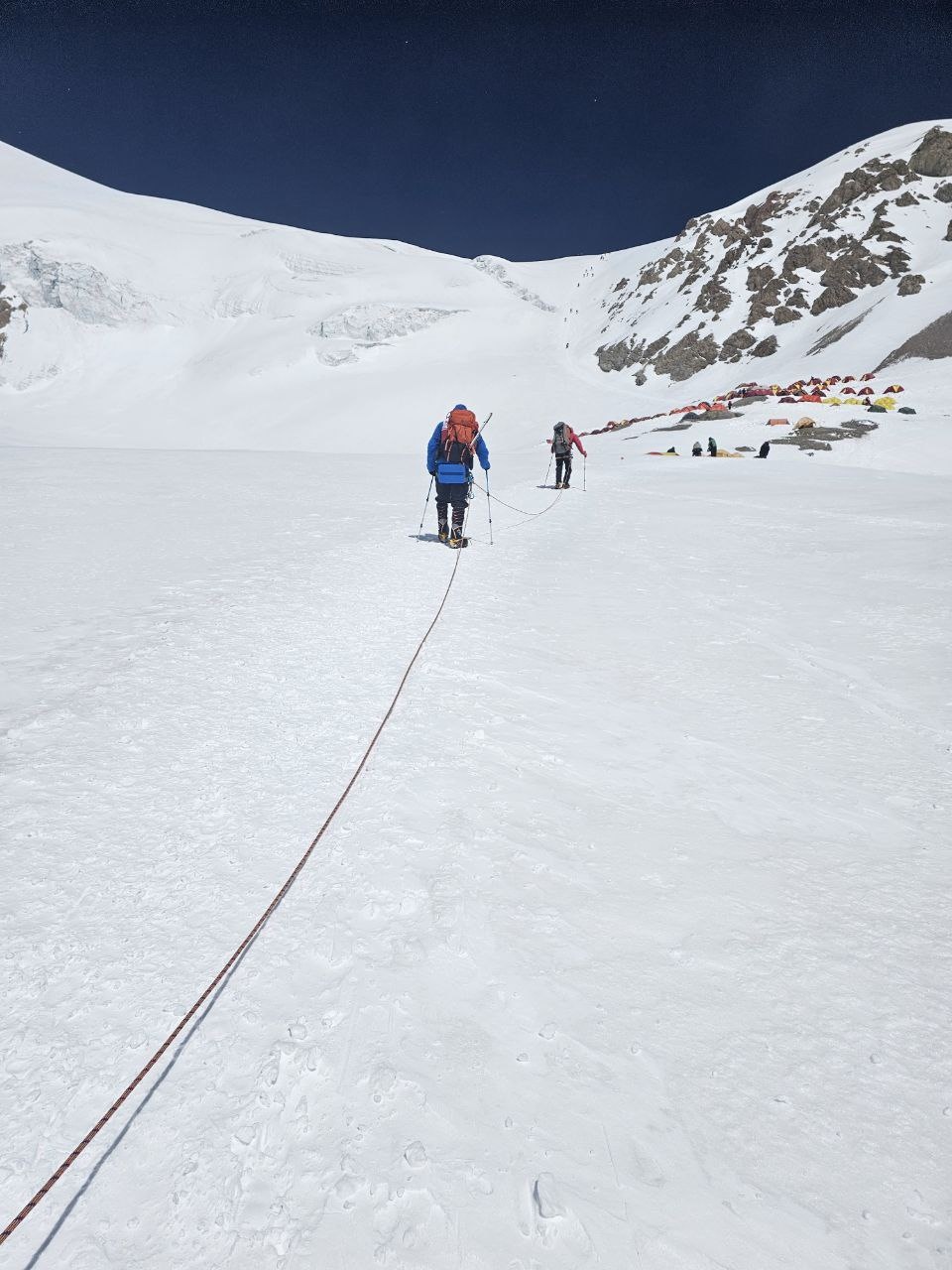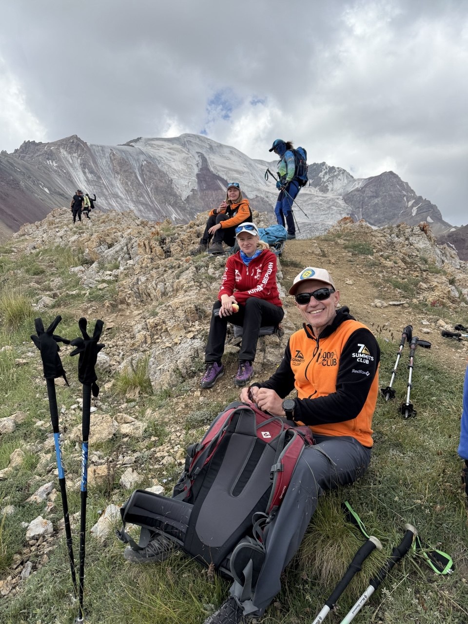 Greetings from Kyrgyzstan from Lenin Peak from the group "Always ready-s"! We are already in the First Camp at 4,400 m! We reached it at a good pace in 5 hours. We didn't have time for lunch according to the schedule, but, of course, they were waiting for us, and the stuffed peppers were universally approved. The weather is not good, it is even more or less acceptable before lunch, which we took advantage of, today we held snow and ice classes, remembered the skills of using jumars and ascender devices. After lunch, it was swept away, we rest in comfortable tents with mattresses, pillows and blankets, and electricity is supplied to each tent, a light bulb and a pilot for charging. It's somehow more pleasant to experience bad weather this way.