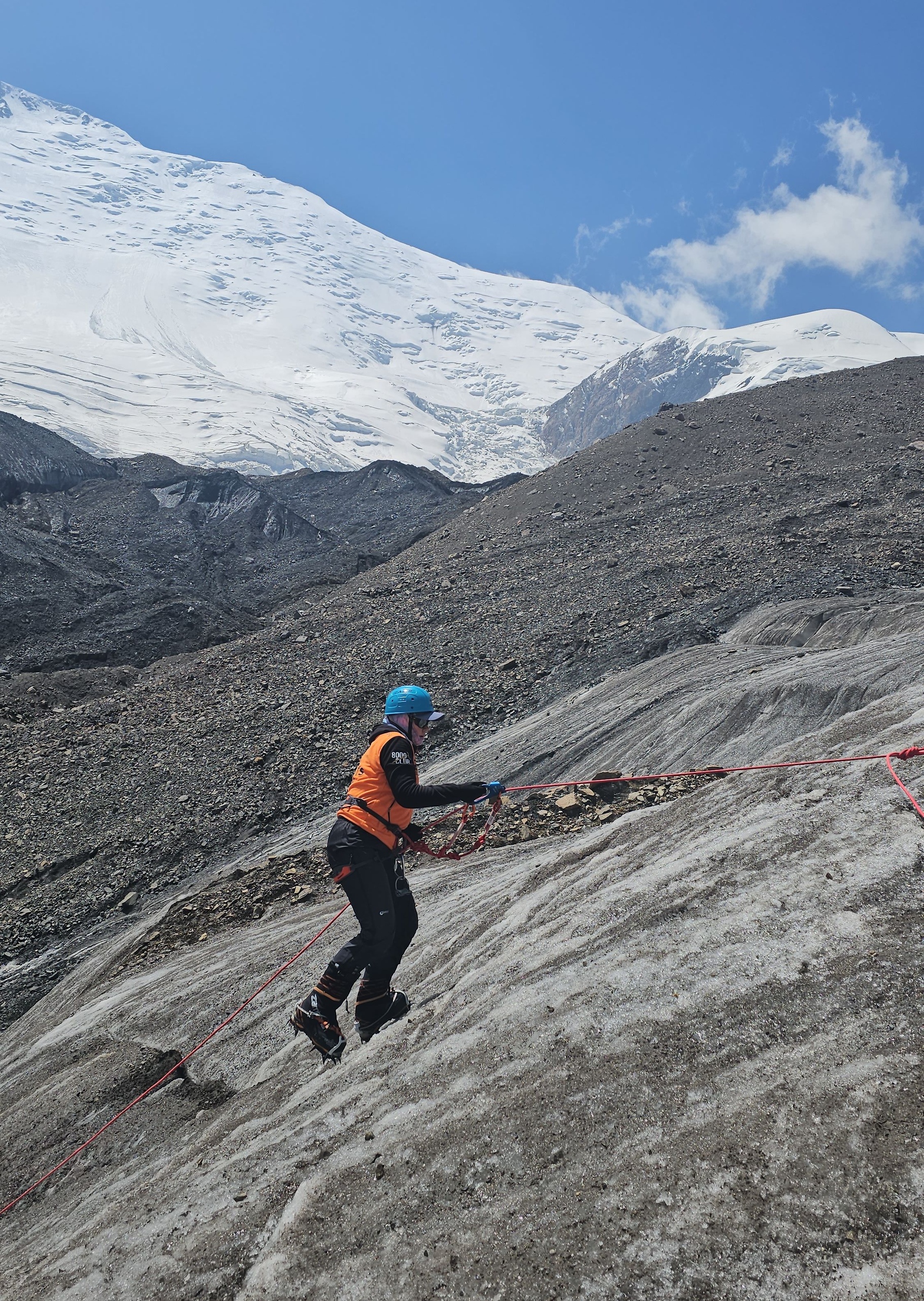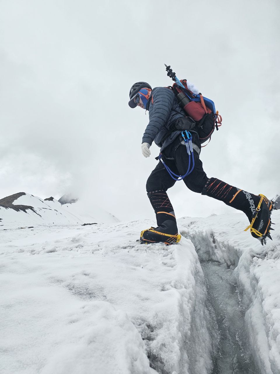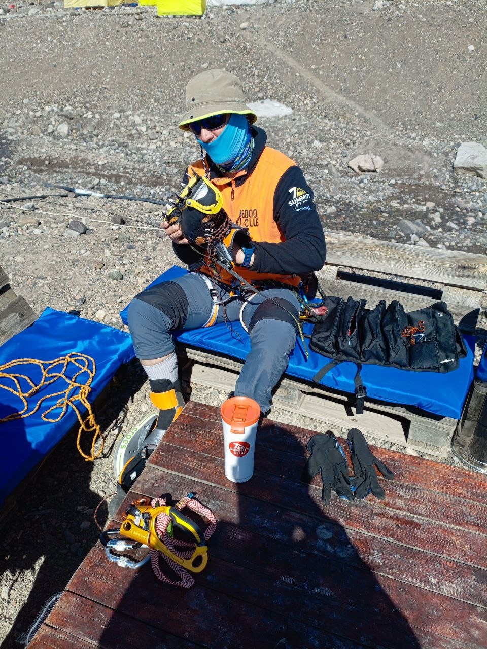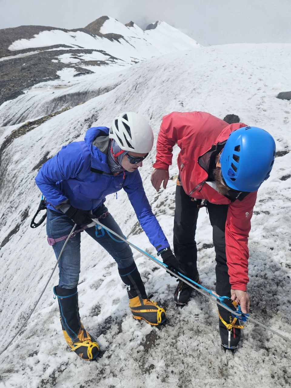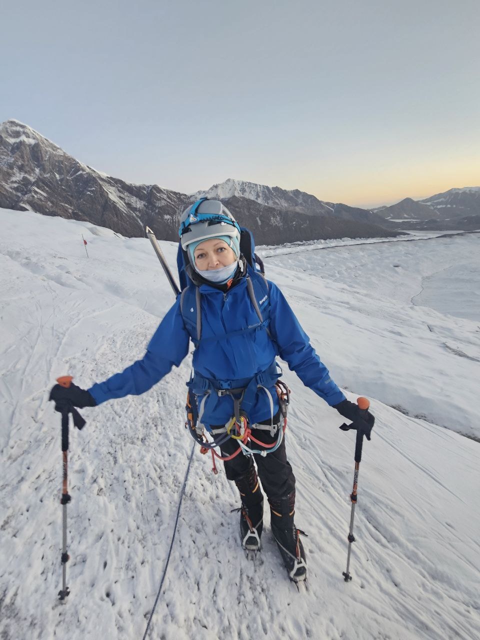 Greetings from Kyrgyzstan from Lenin Peak from the group "Always ready-s"! We are already in the First Camp at 4,400 m! We reached it at a good pace in 5 hours. We didn't have time for lunch according to the schedule, but, of course, they were waiting for us, and the stuffed peppers were universally approved. The weather is not good, it is even more or less acceptable before lunch, which we took advantage of, today we held snow and ice classes, remembered the skills of using jumars and ascender devices. After lunch, it was swept away, we rest in comfortable tents with mattresses, pillows and blankets, and electricity is supplied to each tent, a light bulb and a pilot for charging. It's somehow more pleasant to experience bad weather this way.