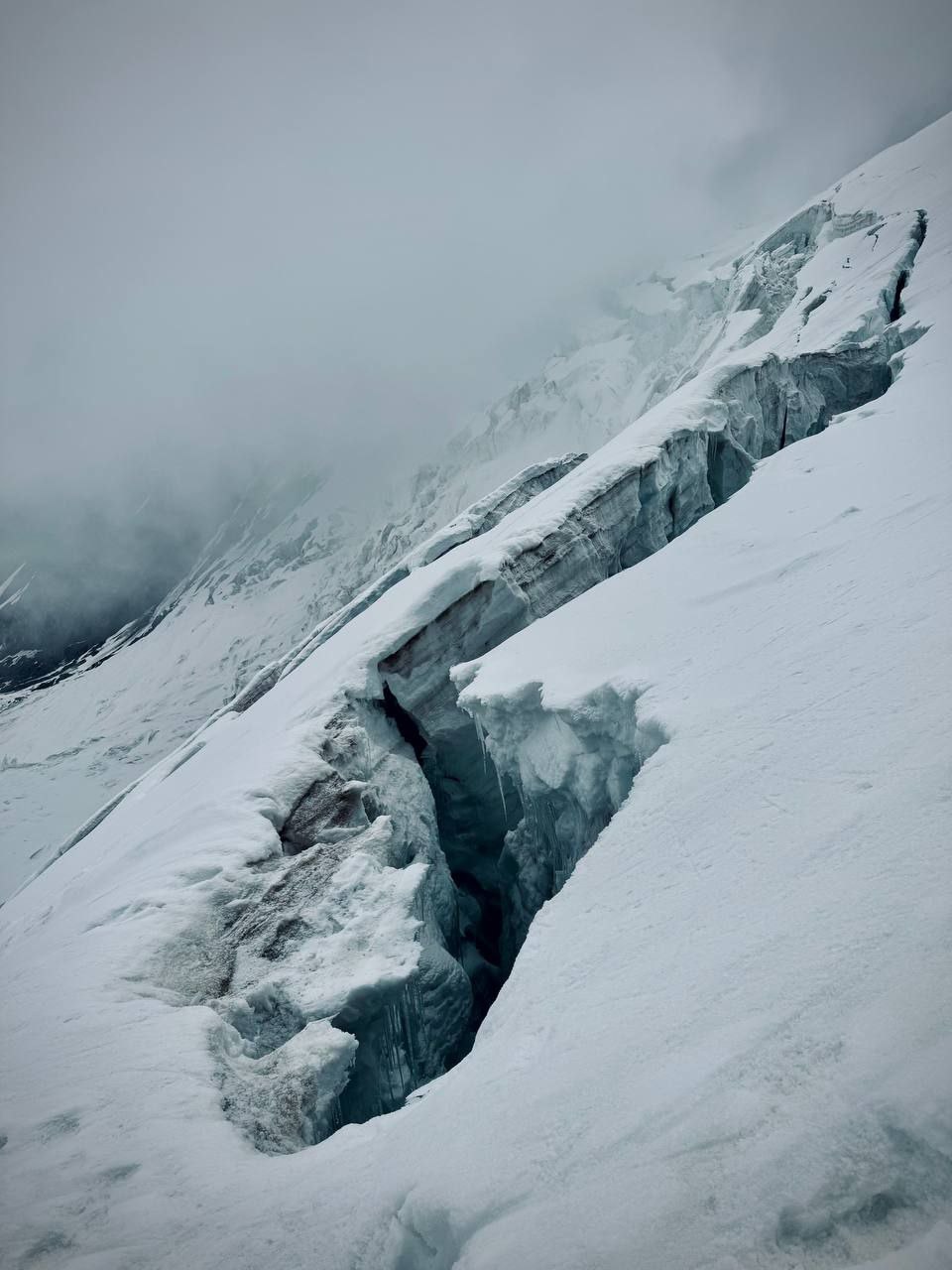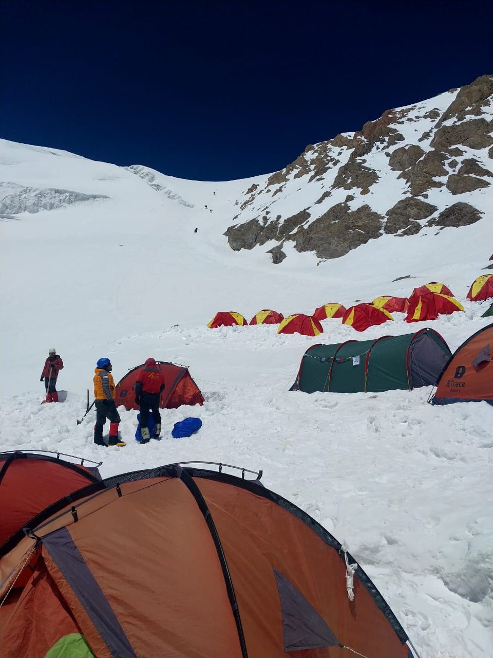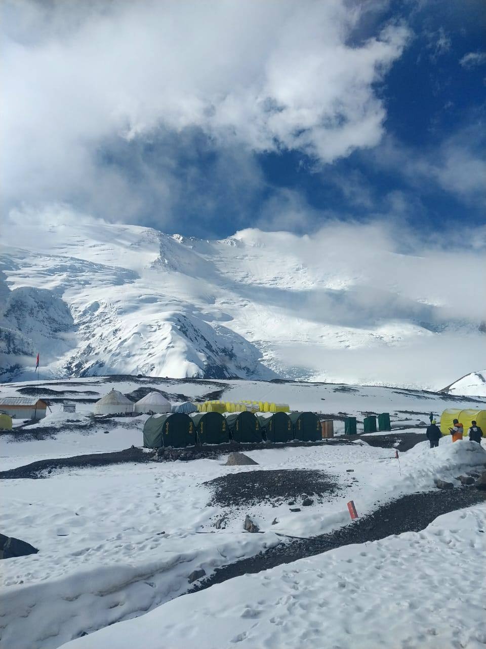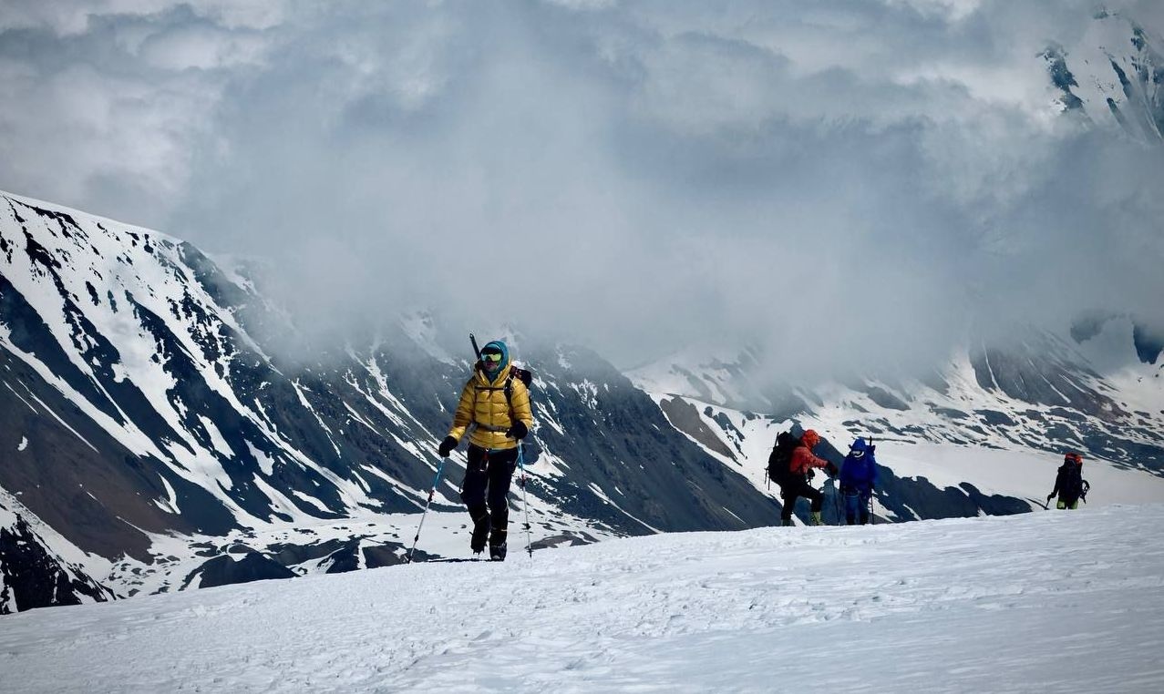 Greetings to everyone from not-so-sunny Kyrgyzstan, from the "Shashlychnaya Fantasy" group! I will give a chronology of these three days. On July 7 at two o'clock in the morning we left Camp One for Camp Two. The glacier is very torn, in some places there are ladders through the cracks. We were lucky with the weather that day and at 12 o'clock we were at the place where a large cozy tent, lunch and rest were waiting for us. On July 8 we left at 9 am for Razdelnaya. And although we had to trample the snow above Camp Two, in five hours we were able to climb to Camp Three at an altitude of 6,100 meters. And then the weather began to deteriorate, a strong wind blew, by lunchtime we descended to Camp Two at 5,400 and spent the night for the second time. It snowed all night and shook the tents. On July 9, we got up early and began the descent to the base camp. There was no visibility, which made the descent difficult. In the middle of the day, we managed to escape from the snow captivity and by lunchtime, tired but happy, we descended to the first camp. And we began to rest and restore our strength.