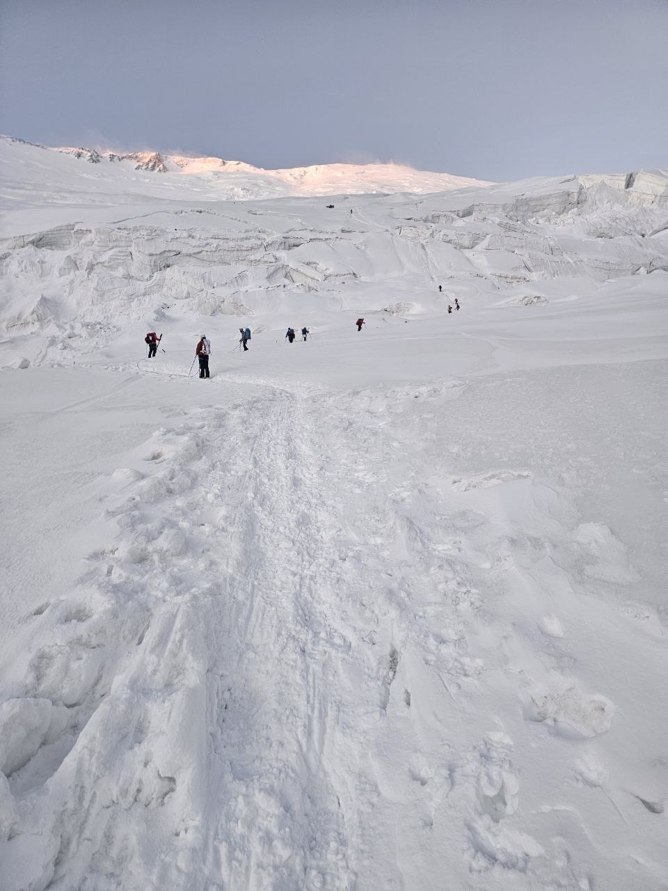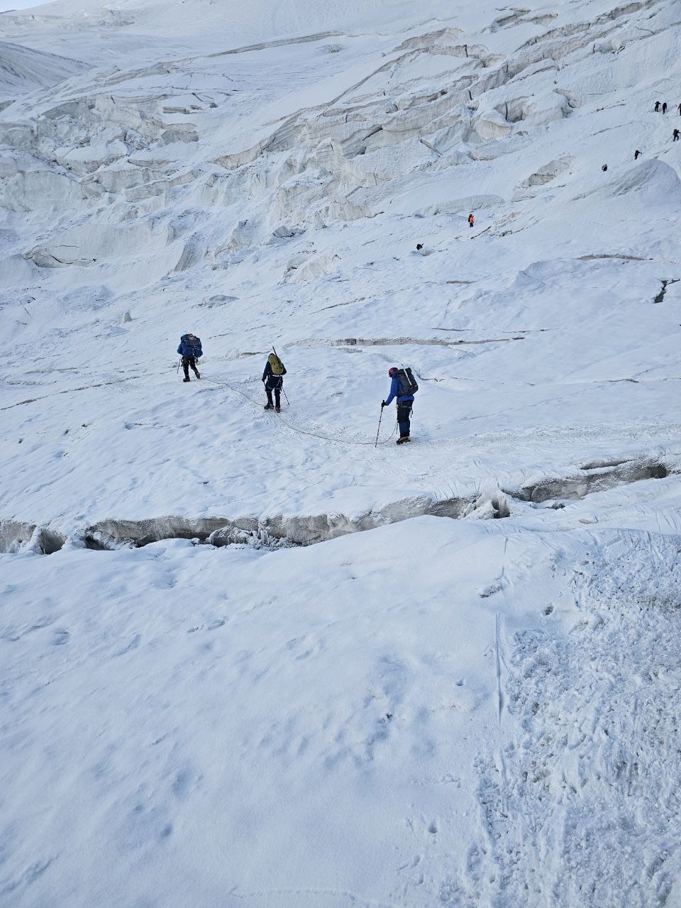 Again information from the "Shashlychnaya Fantasy" group. The calendar shows July 6th and we have a rest day planned. But we didn't waste time, in the morning we adjusted crampons to our boots and held training sessions on climbing and descending a fixed rope. Then we walked in ropes. After lunch we received food for tomorrow's trip. Tomorrow we leave at two in the morning to the second camp. On July 8th, a rotation to Razdelnaya is planned, again spending the night in the second camp. And on the 9th we descend to the first camp. Here is the plan for these days. Wish us a good and easy journey, patience and luck. These days we will be without communication, be patient, wait for new messages!