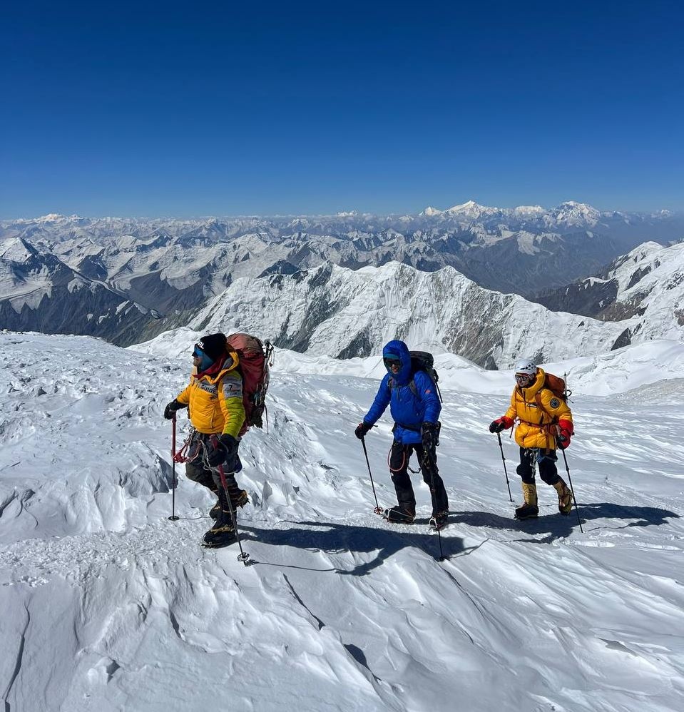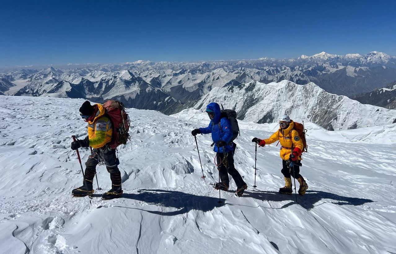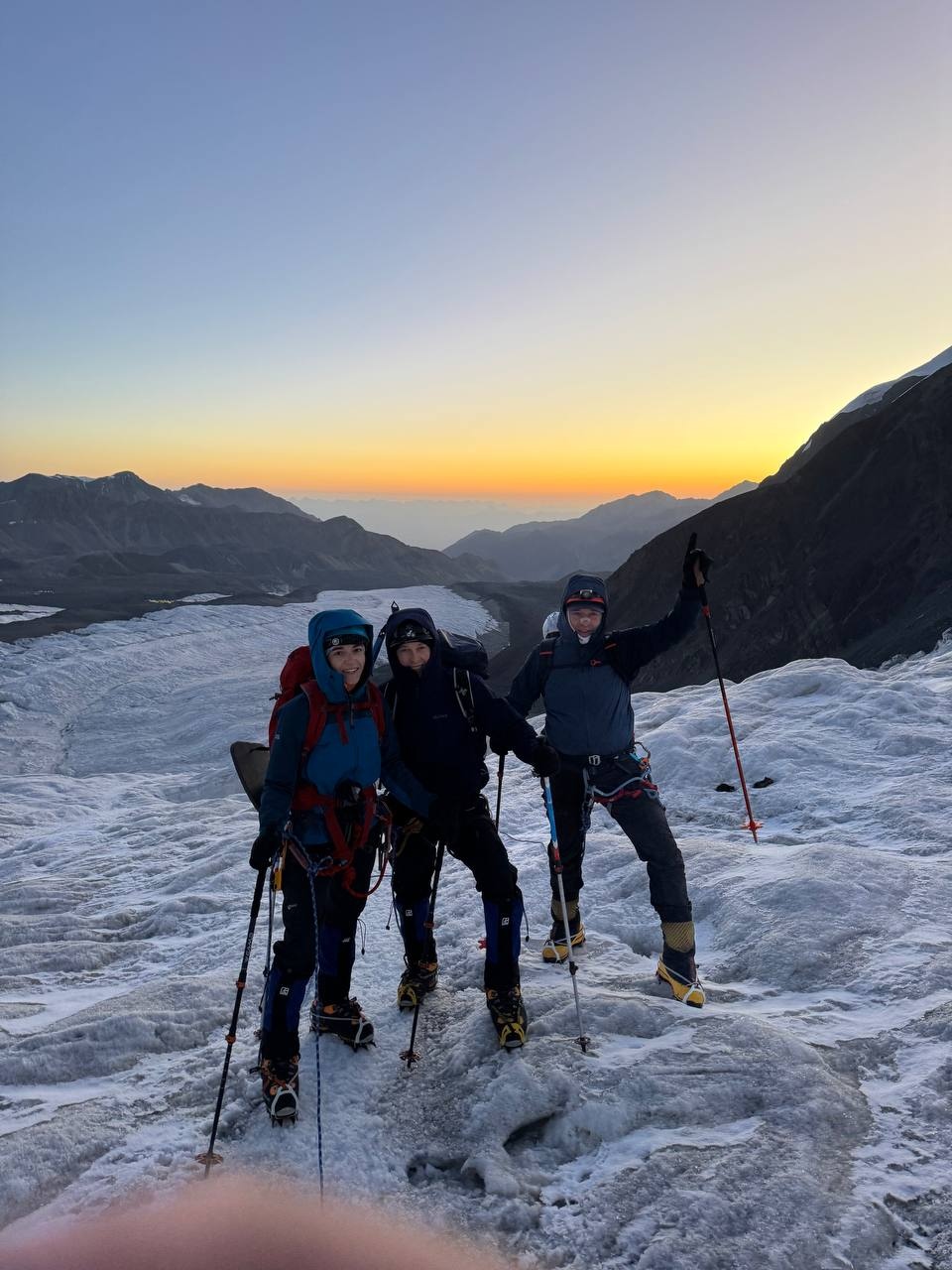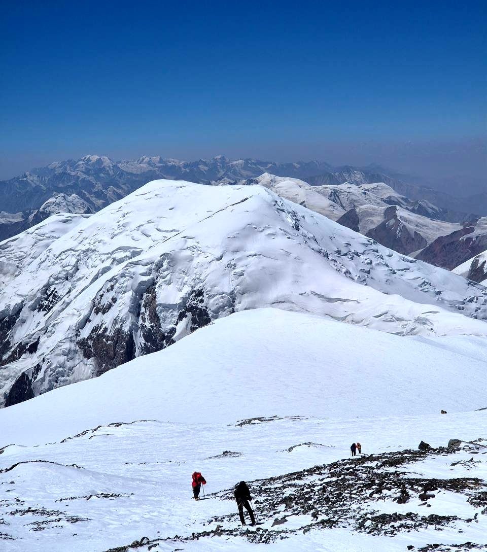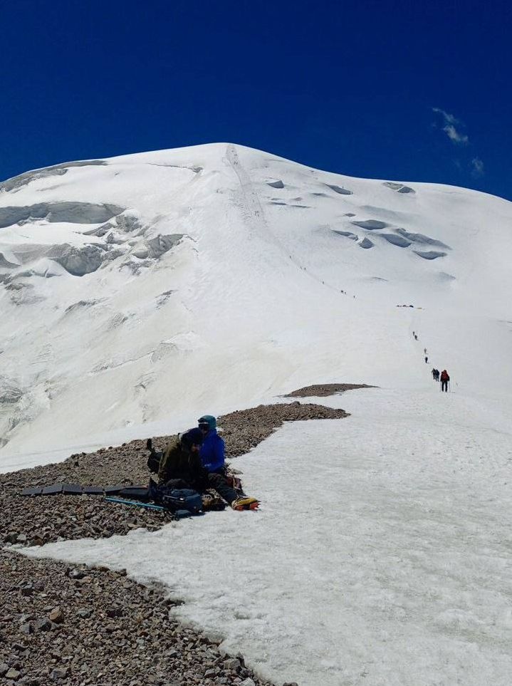 Hello to everyone from almost sunny Asia, from the "Shashlychnaya Fantasy" group! I will give a chronology of the last days. So, before dawn on July 12, we left the first to the second camp. On the 13th, we climbed to the third camp and on the 14th, before dawn again, we set out to storm the summit. Unfortunately, one participant felt ill and had to be lowered back to the third camp, and then to the second camp. I, with one participant, continued the ascent to the summit.