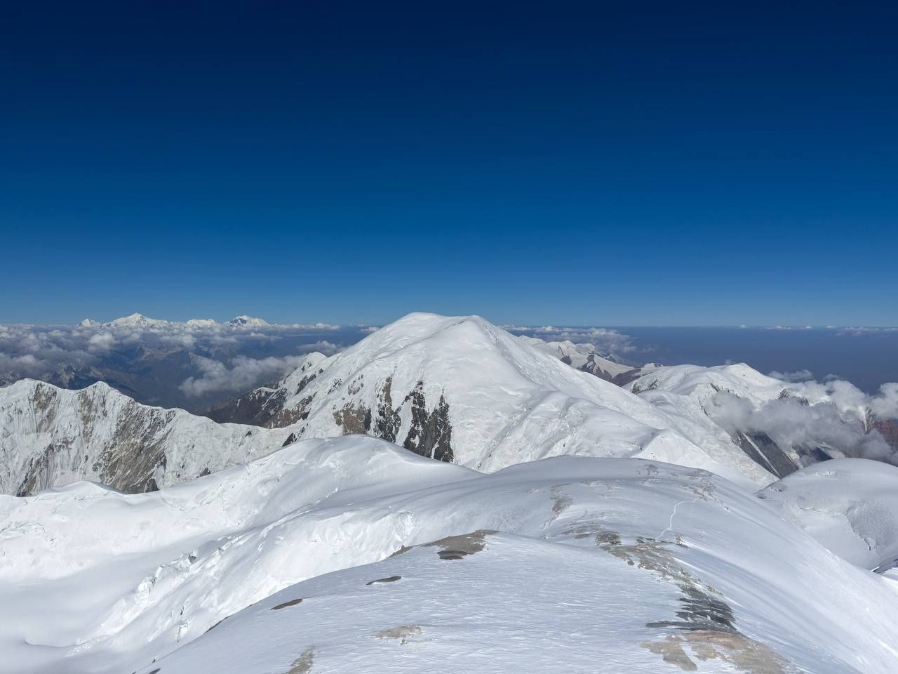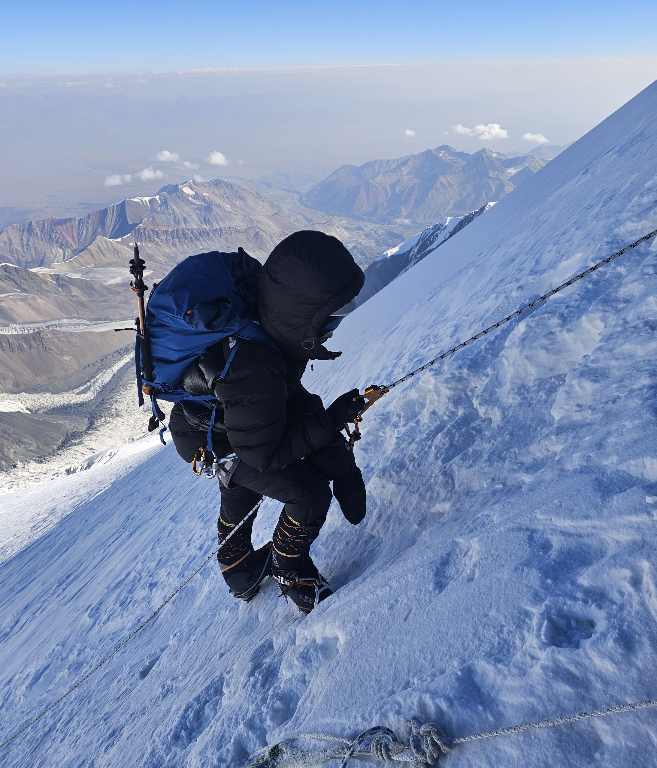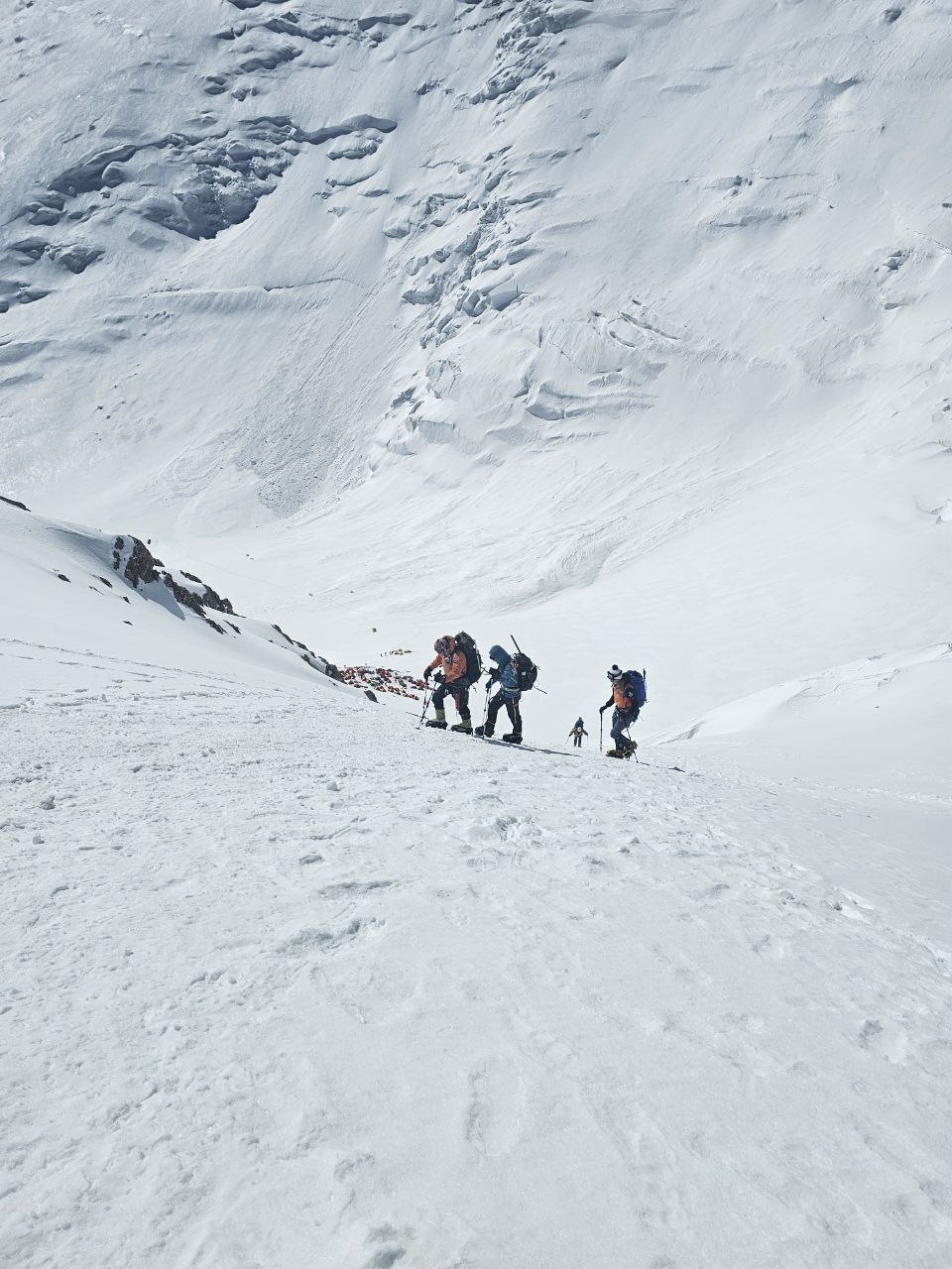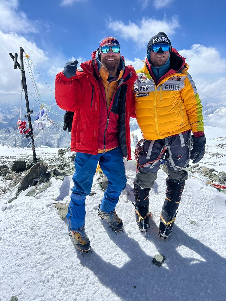 Hello to everyone from almost sunny Asia, from the "Shashlychnaya Fantasy" group! I will give a chronology of the last days. So, before dawn on July 12, we left the first to the second camp. On the 13th, we climbed to the third camp and on the 14th, before dawn again, we set out to storm the summit. Unfortunately, one participant felt ill and had to be lowered back to the third camp, and then to the second camp. I, with one participant, continued the ascent to the summit.