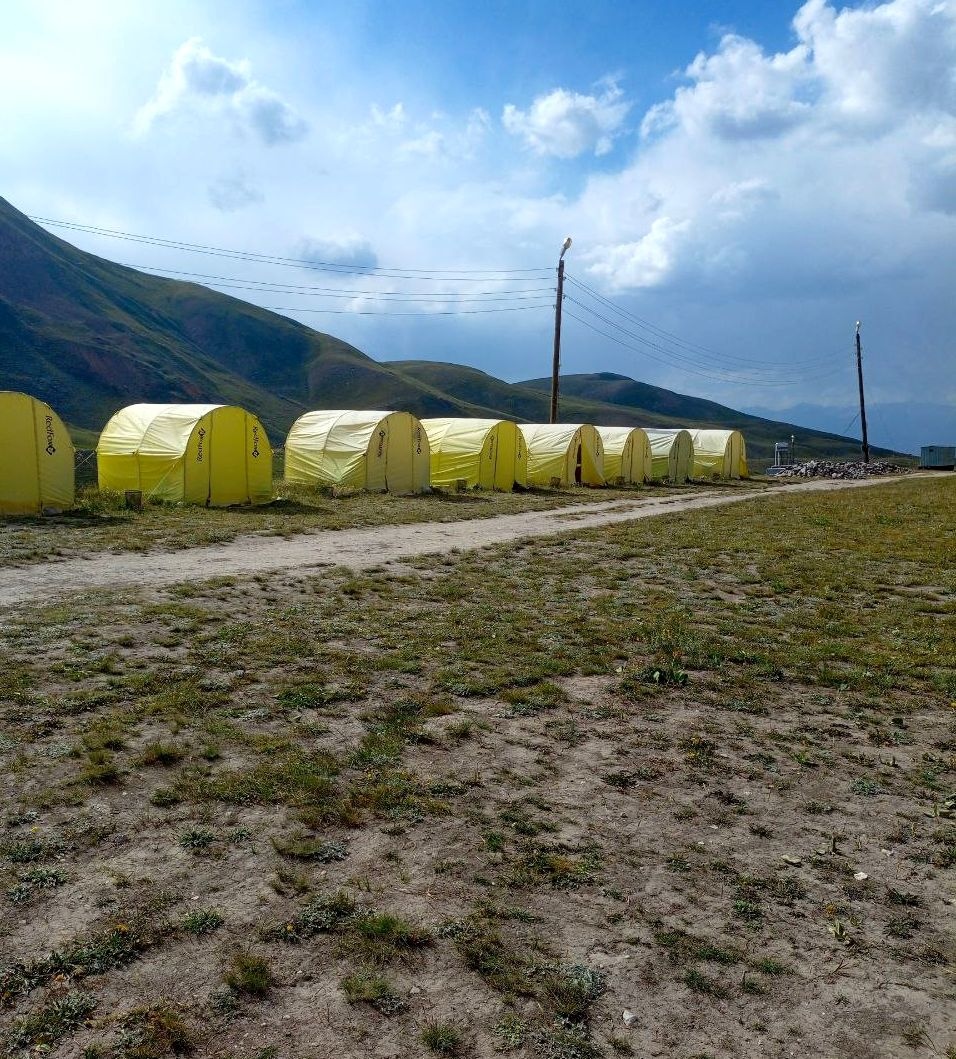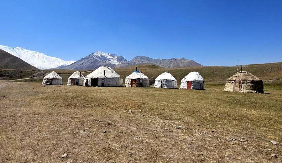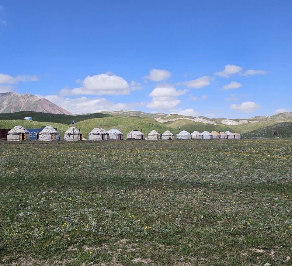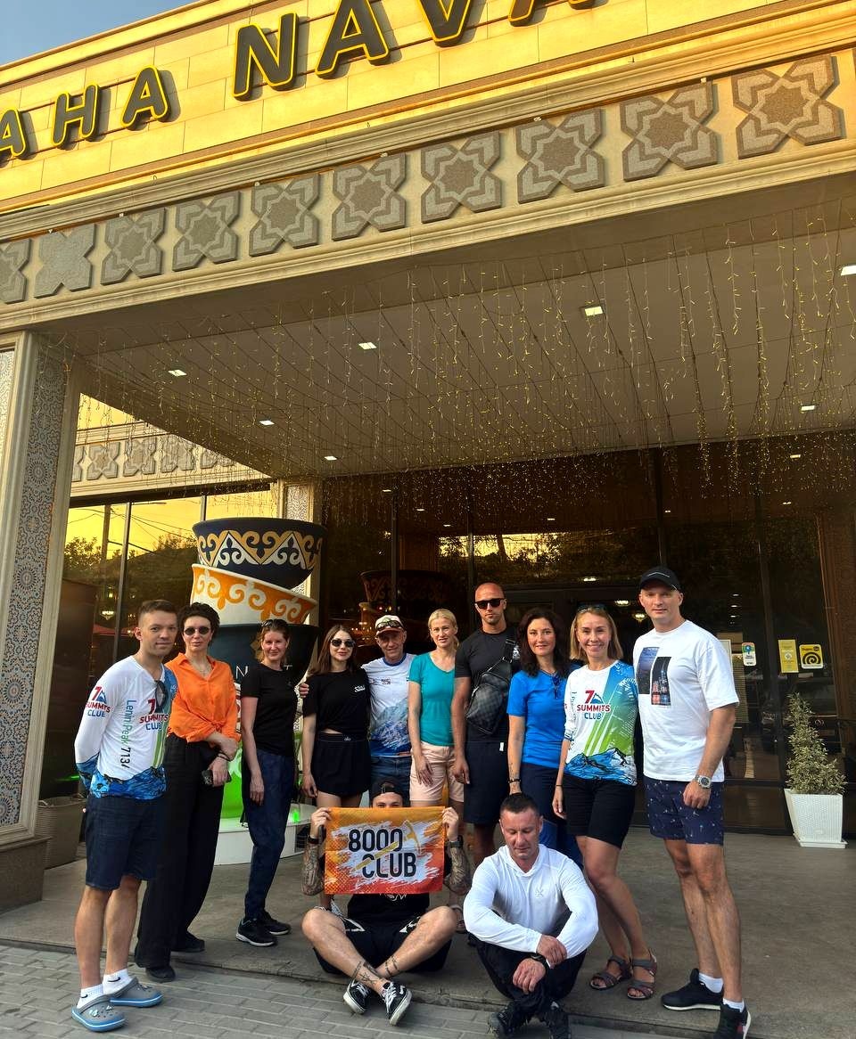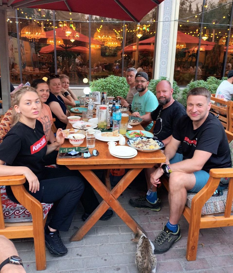 Greetings from Kyrgyzstan! Another group from the summer season of the 8000 Club arrived at the Lenin Peak Base Camp today. On the way, we got stuck in a traffic jam for an hour and a half, and work was being carried out on the Pamir Highway to clear the slopes of dangerous stones. But this did not affect our excellent mood, and the amazing comfortable yurts in which we will spend two nights raised it even more. The day before, we spent the day in Osh, walked around the city and along Mount Suleiman-Too, and had dinner at the national restaurant Navat. Fortunately, despite numerous flight delays and cancellations, everyone arrived on time, and now nothing prevents us from starting our program. The group name will be ready tomorrow.