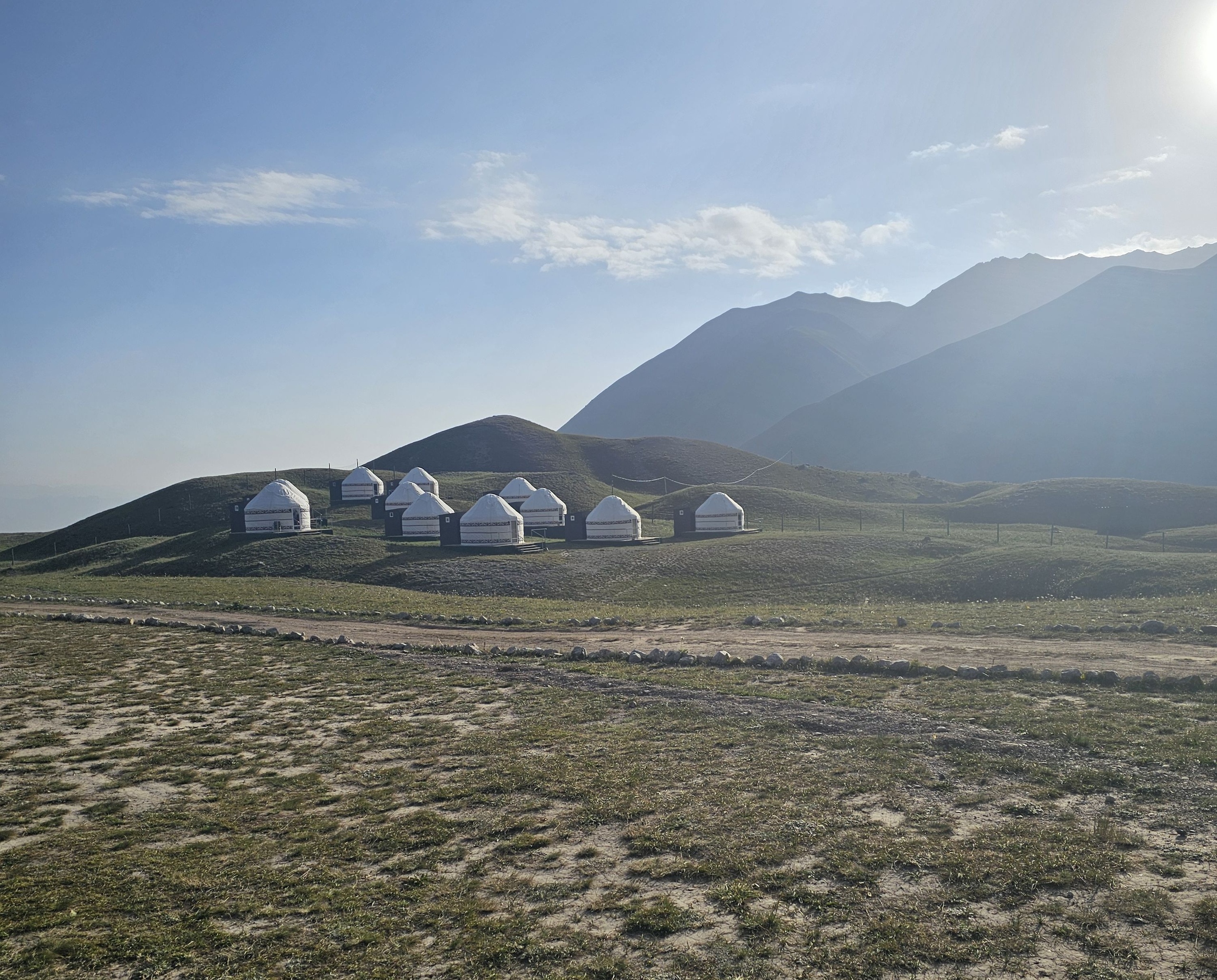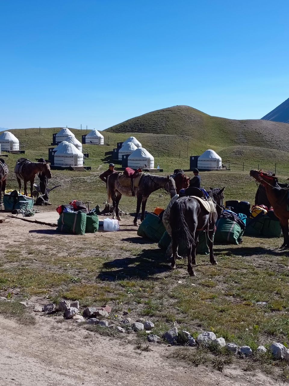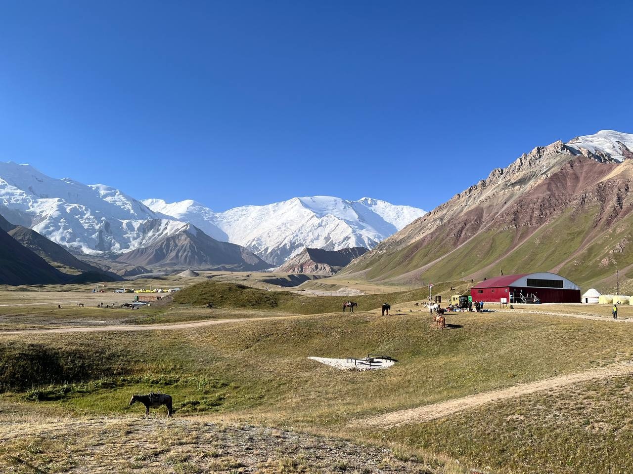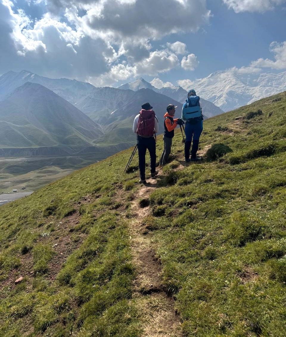 Greetings from Kyrgyzstan! Another group from the summer season of the 8000 Club arrived at the Lenin Peak Base Camp today. On the way, we got stuck in a traffic jam for an hour and a half, and work was being carried out on the Pamir Highway to clear the slopes of dangerous stones. But this did not affect our excellent mood, and the amazing comfortable yurts in which we will spend two nights raised it even more. The day before, we spent the day in Osh, walked around the city and along Mount Suleiman-Too, and had dinner at the national restaurant Navat. Fortunately, despite numerous flight delays and cancellations, everyone arrived on time, and now nothing prevents us from starting our program. The group name will be ready tomorrow.