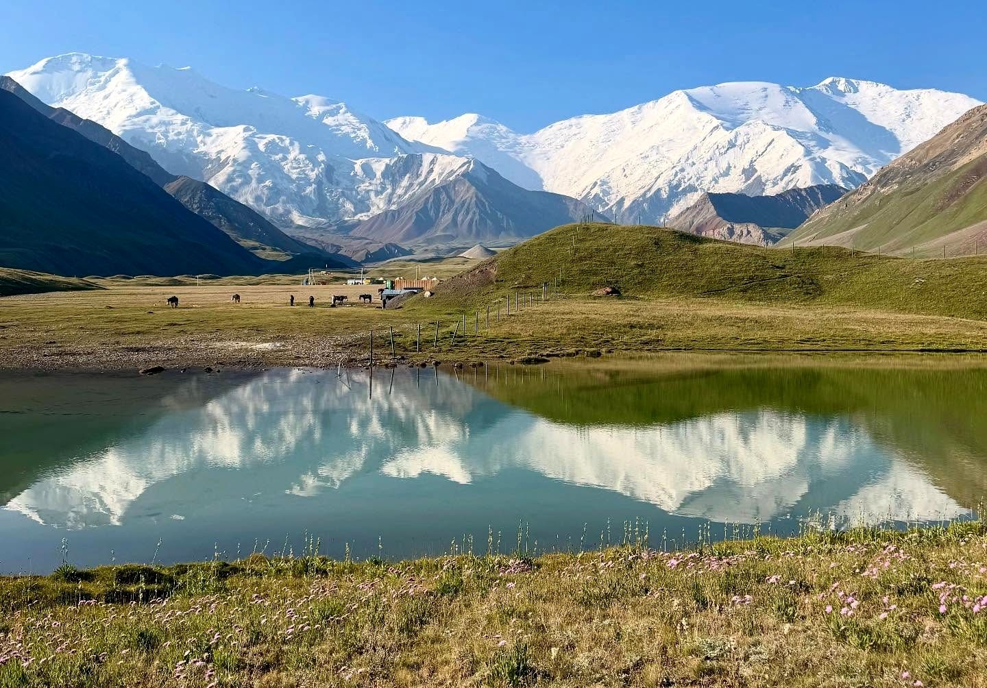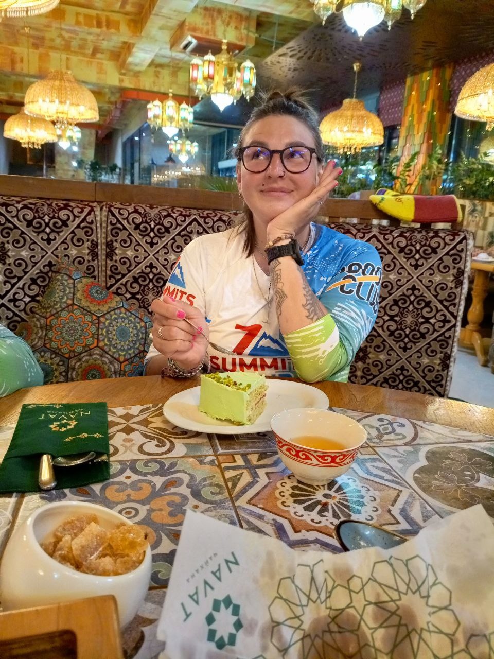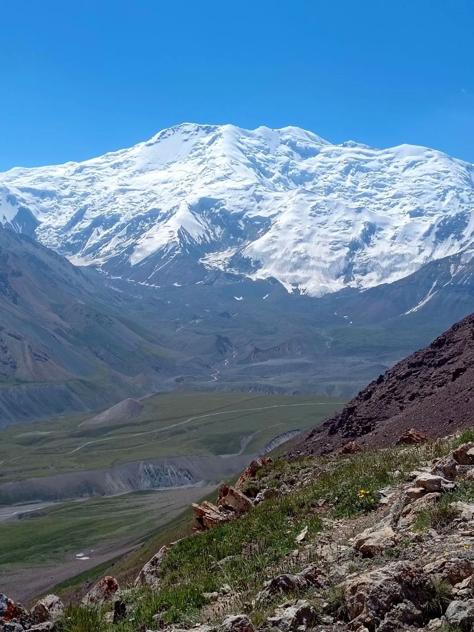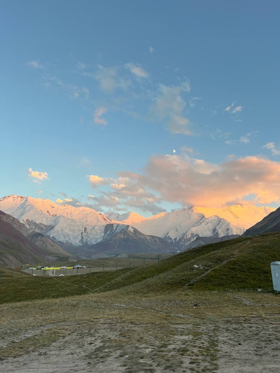 Greetings from Kyrgyzstan! Another group from the summer season of the 8000 Club arrived at the Lenin Peak Base Camp today. On the way, we got stuck in a traffic jam for an hour and a half, and work was being carried out on the Pamir Highway to clear the slopes of dangerous stones. But this did not affect our excellent mood, and the amazing comfortable yurts in which we will spend two nights raised it even more. The day before, we spent the day in Osh, walked around the city and along Mount Suleiman-Too, and had dinner at the national restaurant Navat. Fortunately, despite numerous flight delays and cancellations, everyone arrived on time, and now nothing prevents us from starting our program. The group name will be ready tomorrow.