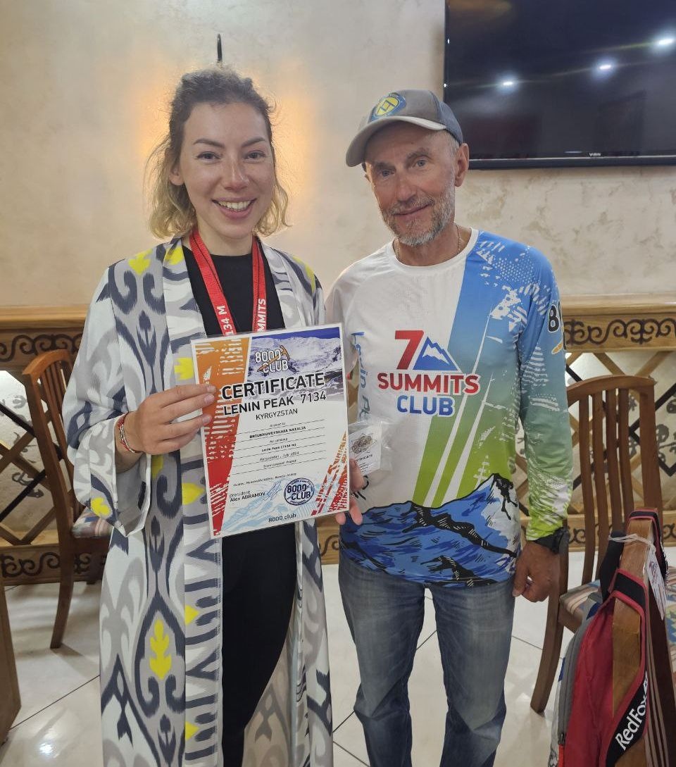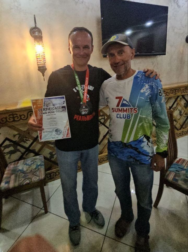 Hello to everyone from Kyrgyzstan! The "Old Bucks" group successfully climbed to the top of Lenin Peak, height 7134 meters. After a week of waiting, we finally caught a weather window between periods of strong winds, and climbed to the summit in excellent weather conditions. Today we are already in the first camp. Tomorrow - the trek to Achiktash and then immediately go to Osh. We were late!
