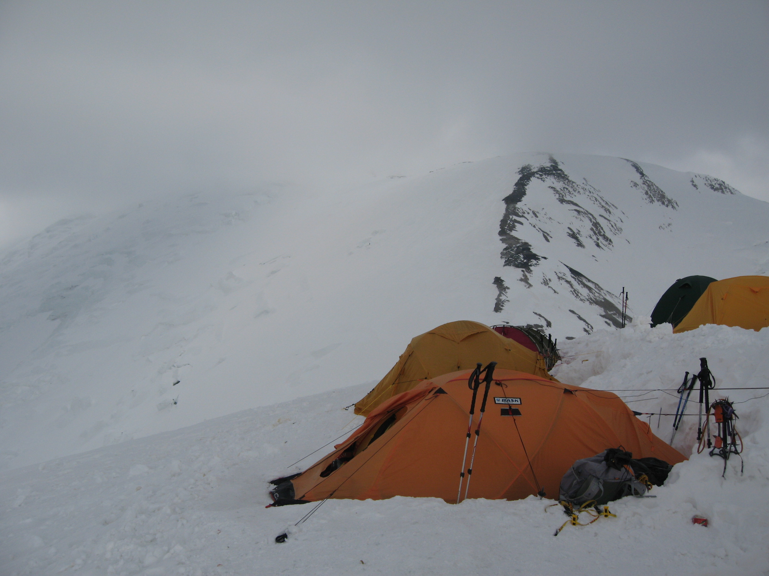 Hello to everyone from Kyrgyzstan! The "Old Bucks" group has climbed to the Camp 3 of Lenin Peak, from where we will set out to climb tonight. The wind was blowing and snowing all day while we were walking from Camp 2 to Camp 3. We settled into tents, had dinner and went to bed. Tomorrow is the climb.
