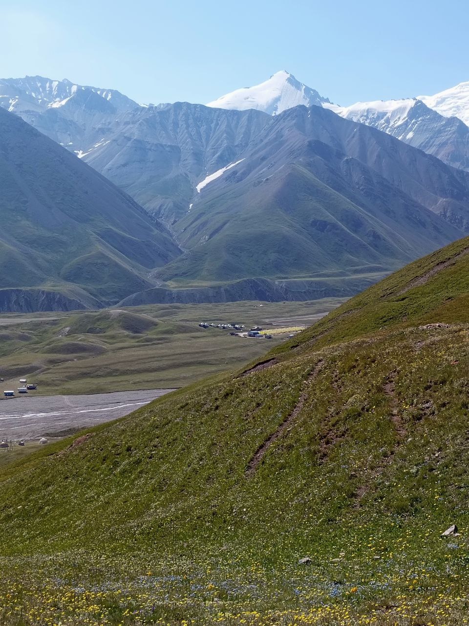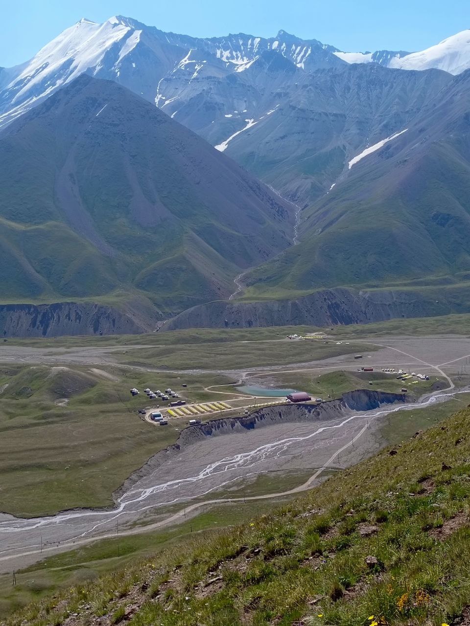 News from under Lenin Peak from the "Shashlychnaya Fantasy" group. Today we were on the road all day. Early in the morning we left the glorious city of Osh, drove through the pass and then drove along the wide Alai Valley. In the afternoon we arrived at our base camp, the settlement of Achiktash. There we were very well received, comfortably settled in large permanent tents and fed deliciously. The weather in the base camp is slightly cloudy and cool. We are starting to acclimatize.