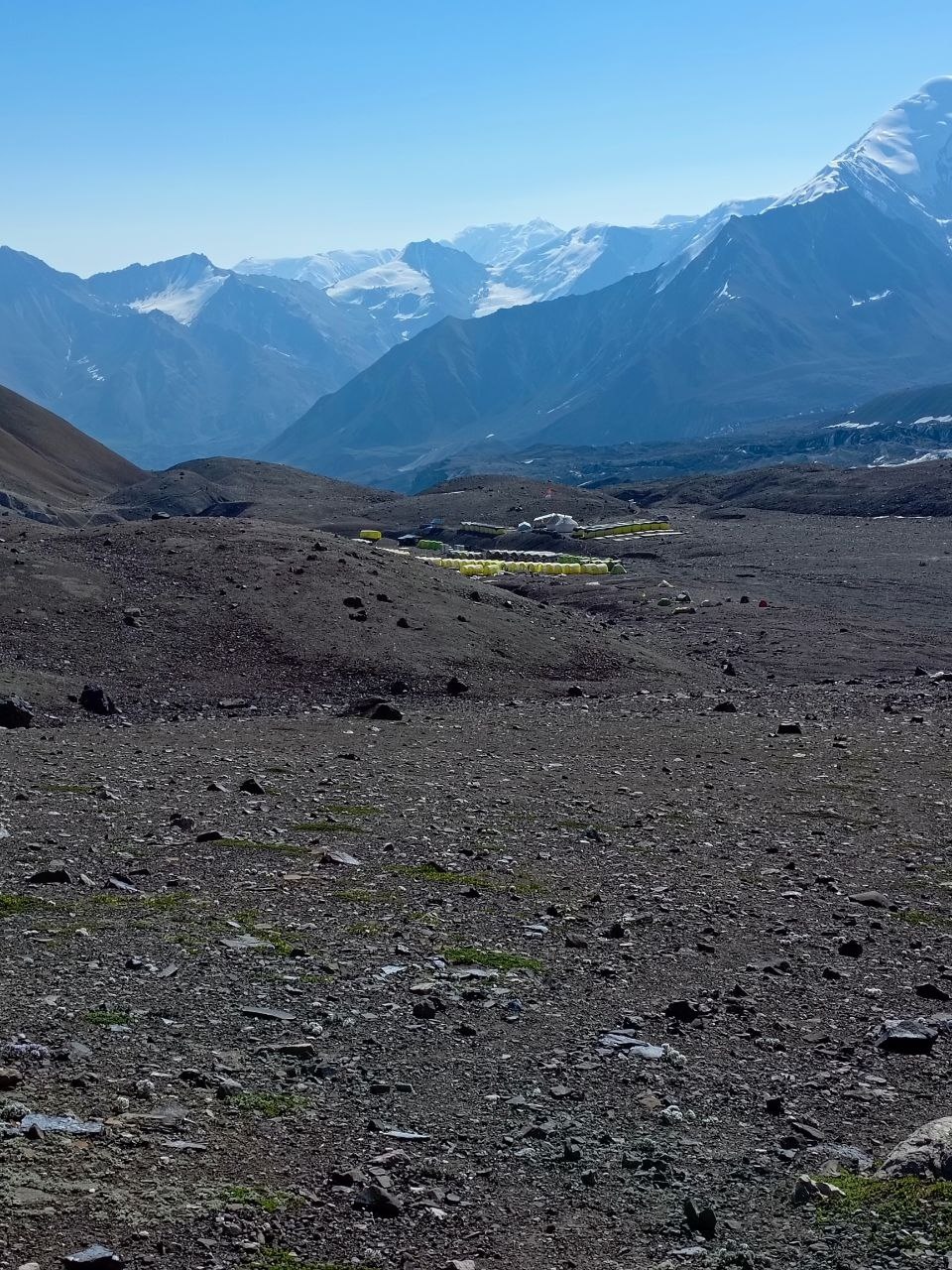 Hello to everyone from Kyrgyzstan! The "Svet Zhok" group arrived today at the third camp of Lenin Peak. It is located at an altitude of 6100 meters. This is the assault camp from which the groups go on the ascent. It was very hot throughout the day. At night we go out to storm Lenin Peak.