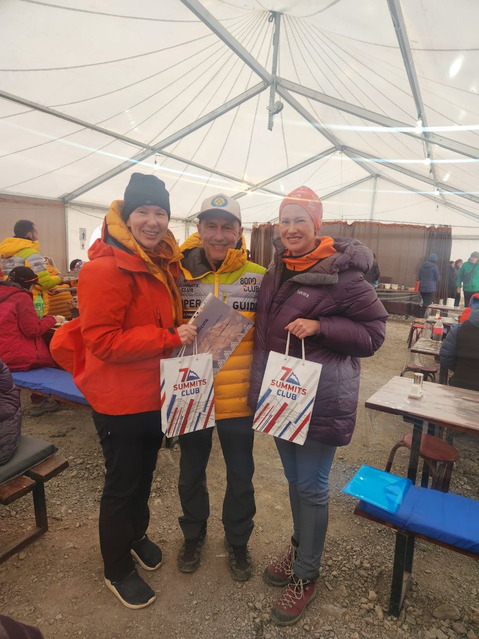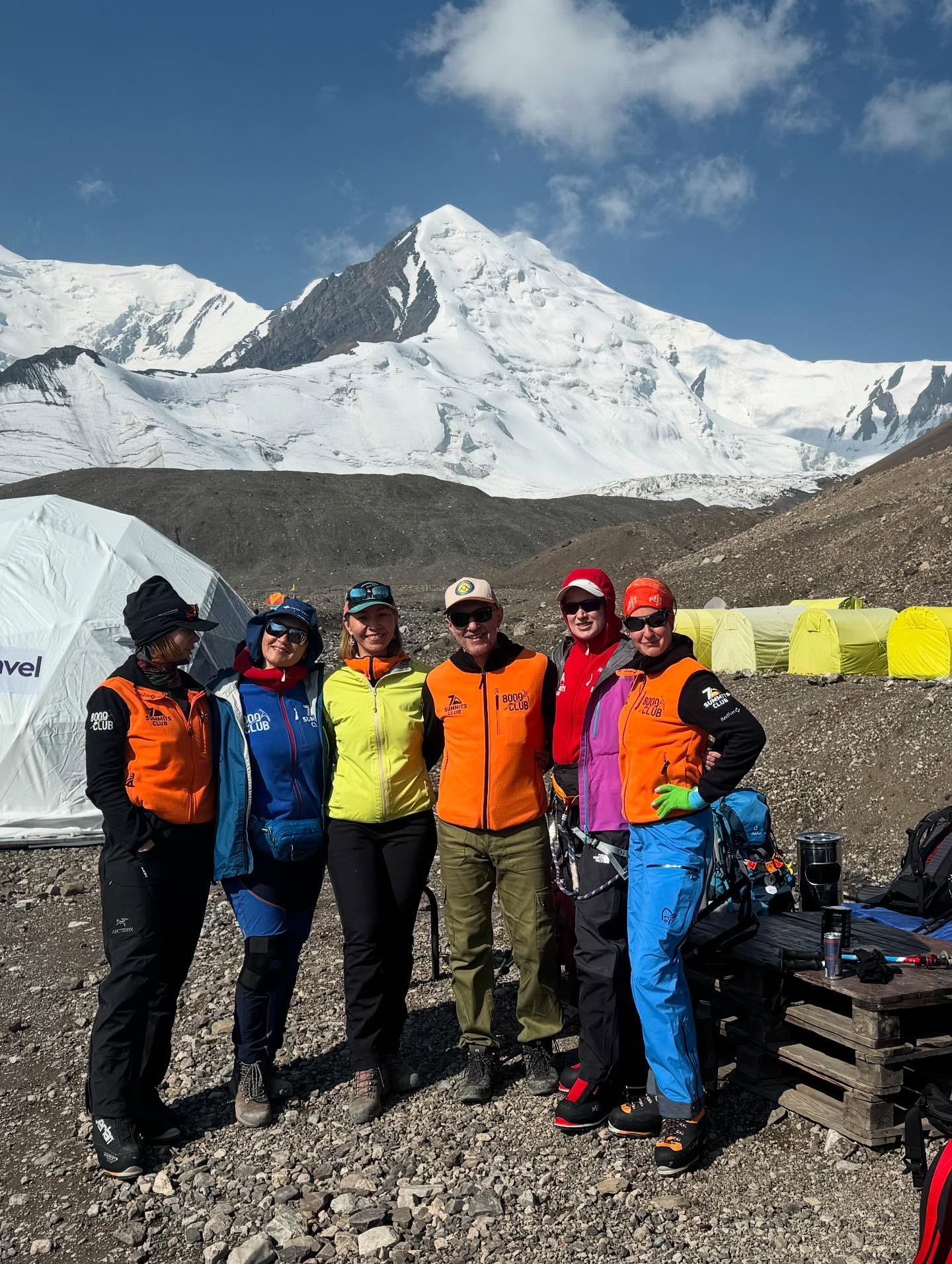 Greetings from the First Camp of Lenin Peak from the "Pamir Vagabonds"! We are resting here and preparing for the decisive exit to storm the summit. We are resting in comfortable tents with beds, they are called "spheres" here, we eat delicious shurpa and a kazan-barbecue, in general, all the conditions have been created for restoring strength. And so that you don't forget us, look at how we saw our girls off after climbing Peak of Razdelnaya. Two of them, by the way, will soon have birthdays, they were given gifts from the 7 Summits Club. And other photos that were not previously included in the news report.