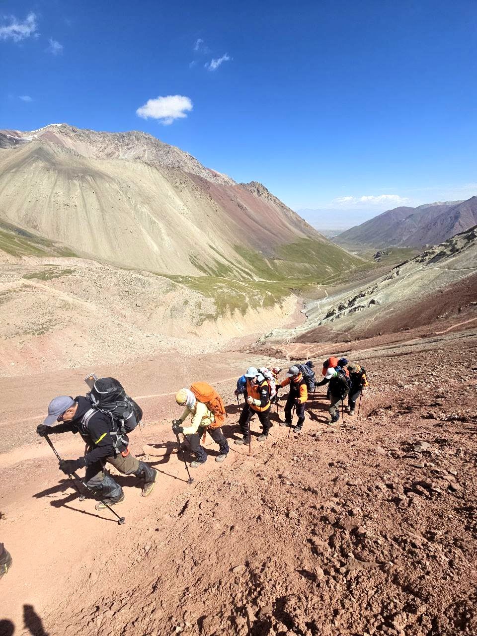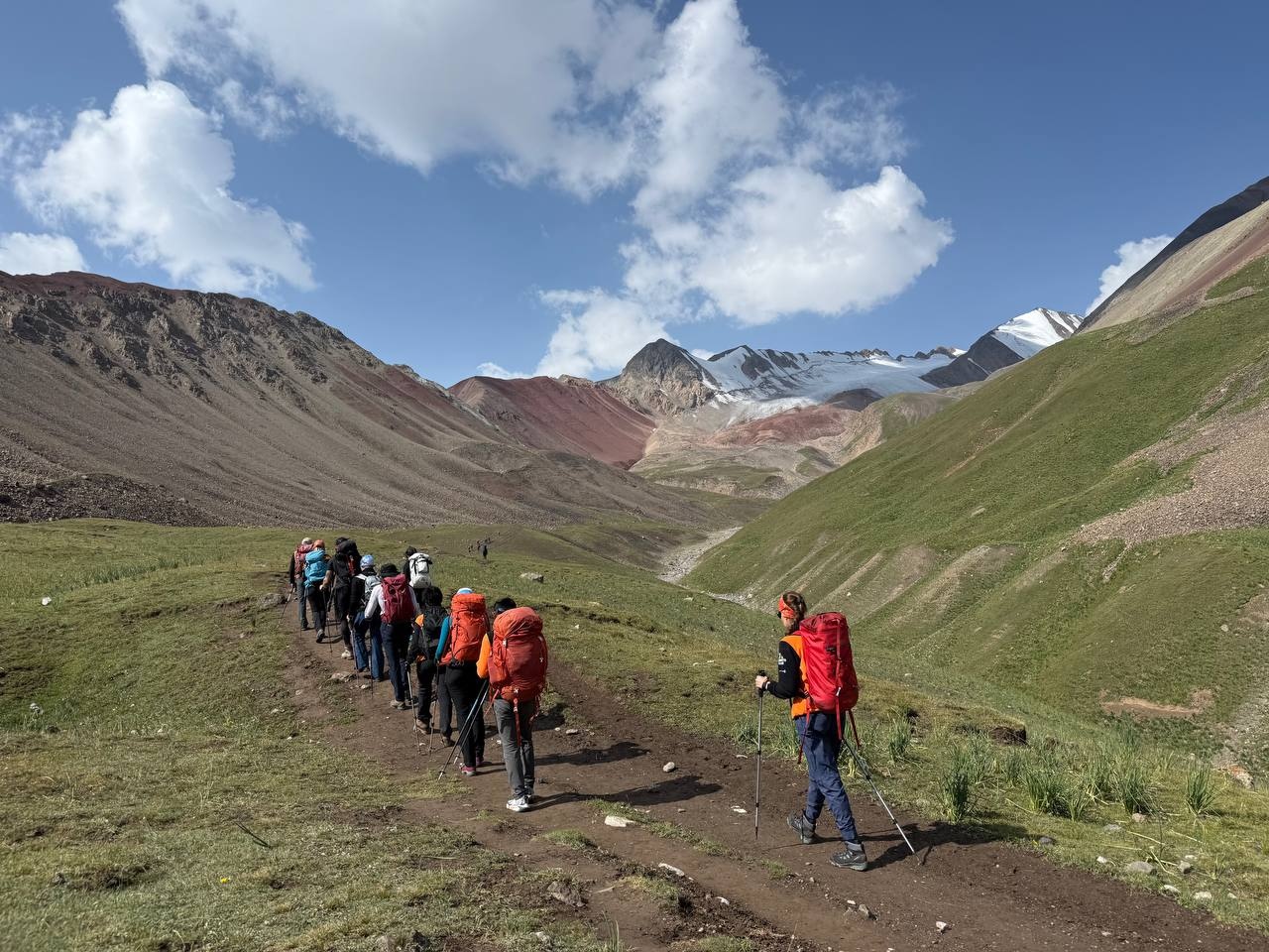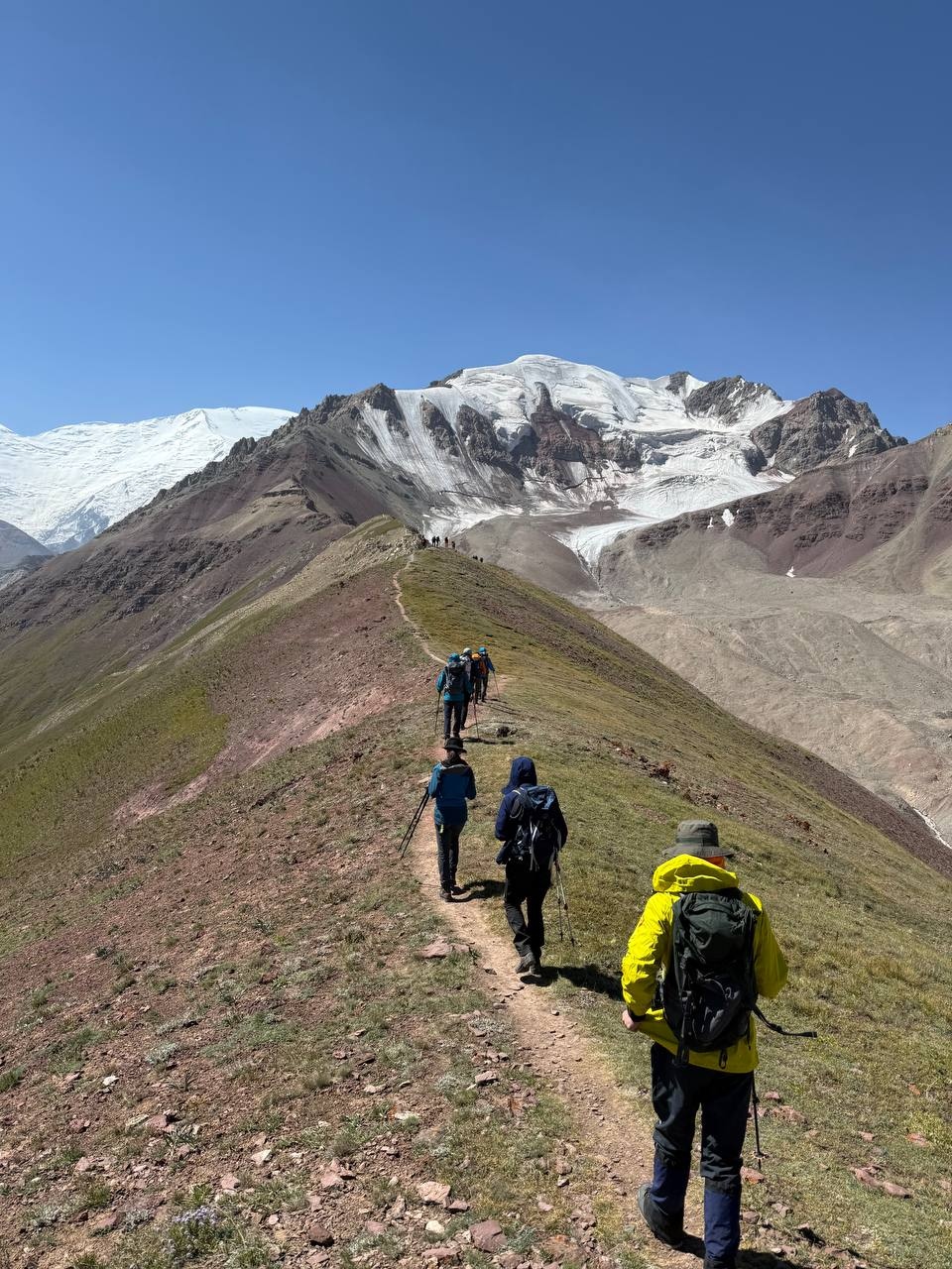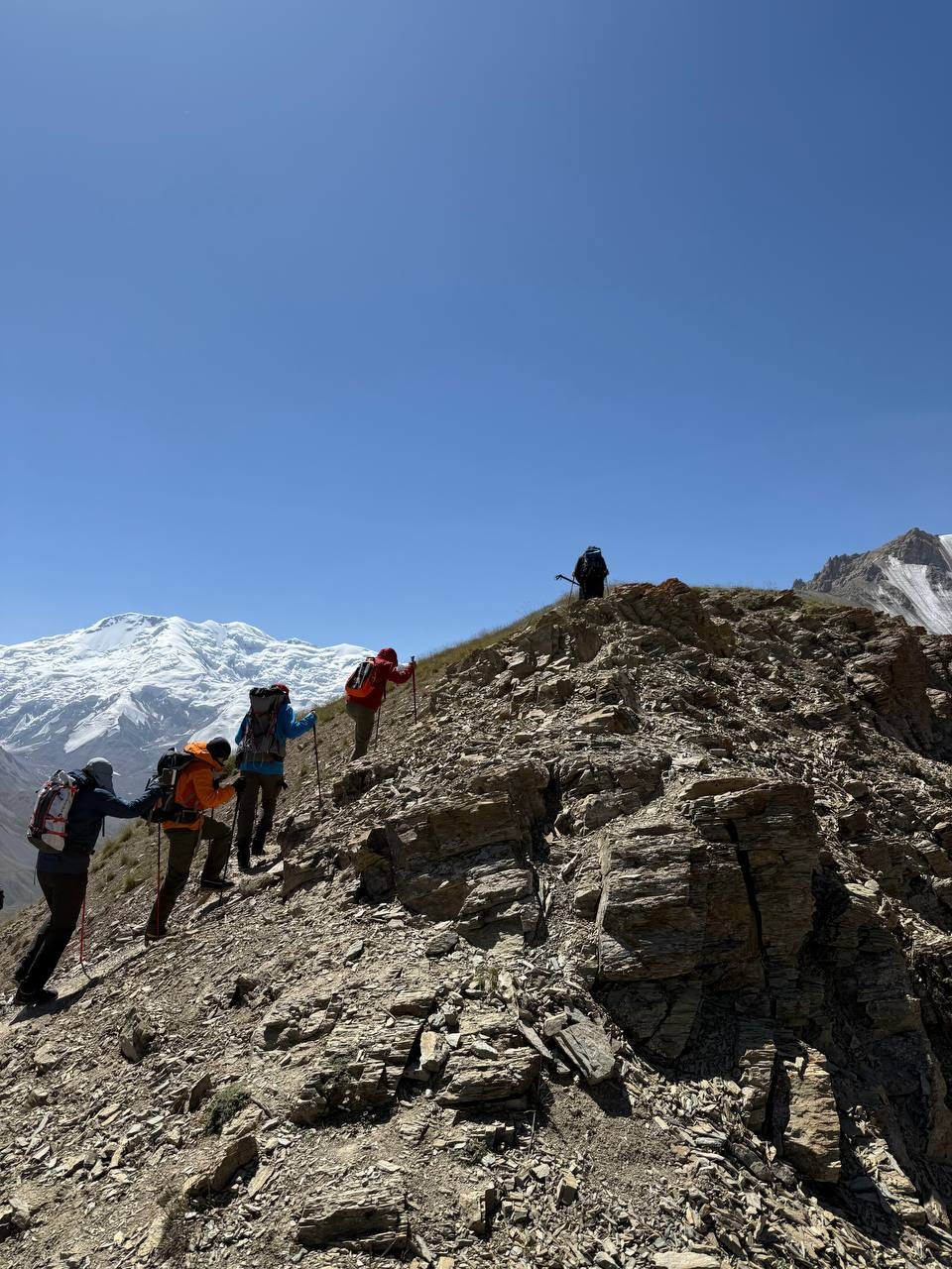 Hello everyone from Kyrgyzstan! From the group that took the name "Mountain gophers". Today we left the Achik-Tash base camp and moved to Camp 1. The trek was long, but all the participants coped! The weather pleased with beautiful views all day.