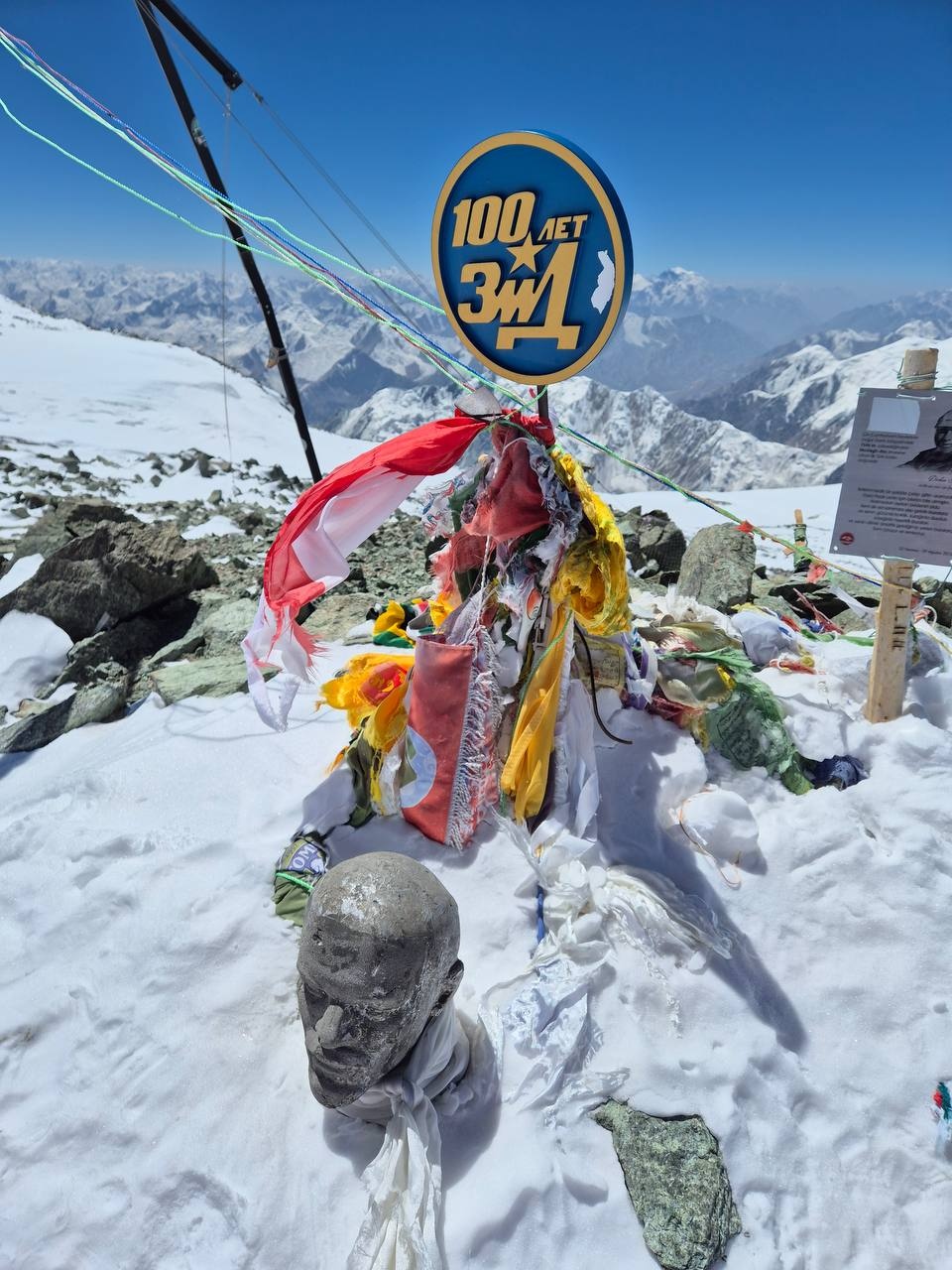 Hello everyone from Kyrgyzstan! News from the "Svet Zhok" group! Yesterday, July 25, we climbed the summit of Lenin Peak, 7134 meters. The weather before reaching the top was wonderful: clear, warm. At the moment when we reached 7134, it became cloudy. But the bust of Lenin, like a beacon on the top, showed the highest point of Lenin Peak. Now we have already descended to the camp, resting.