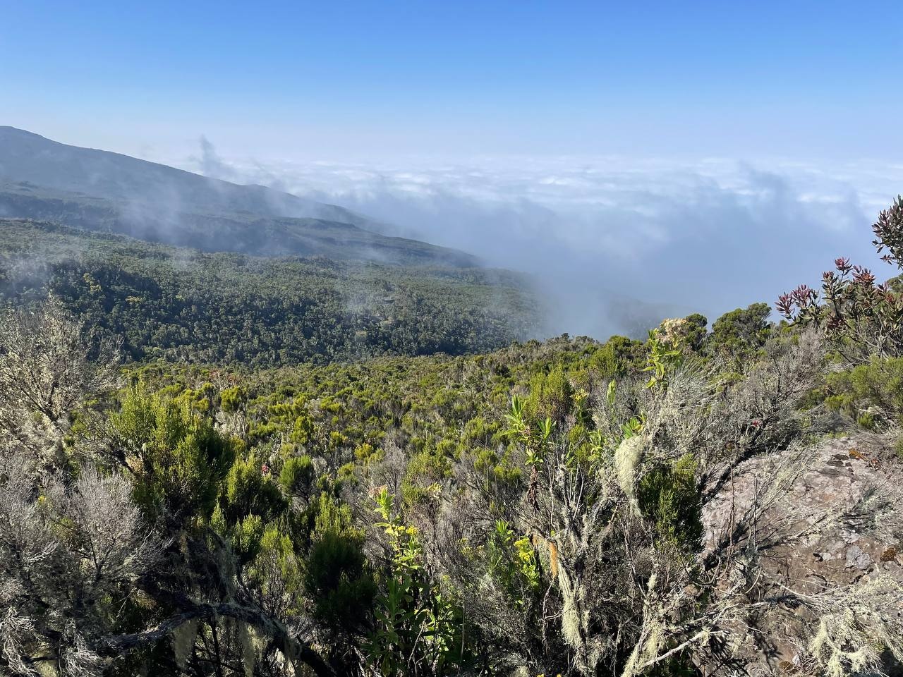We rose above the clouds. We arrived at Mandara Camp at 2800 meters, at the upper tree line. We settled in, discussed our plans for the next day, and settled in for a well-deserved rest.