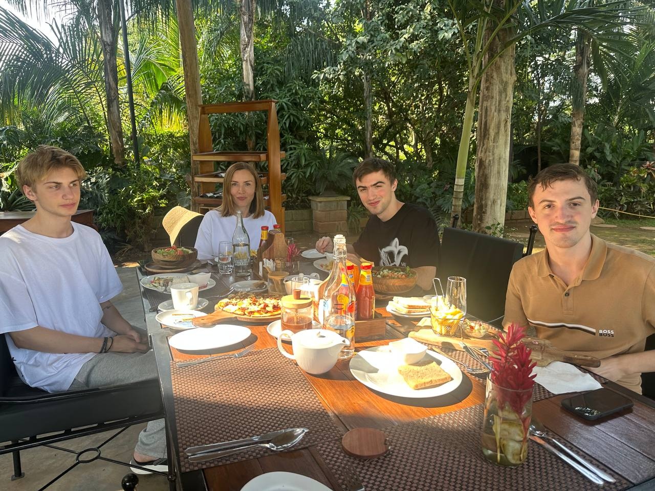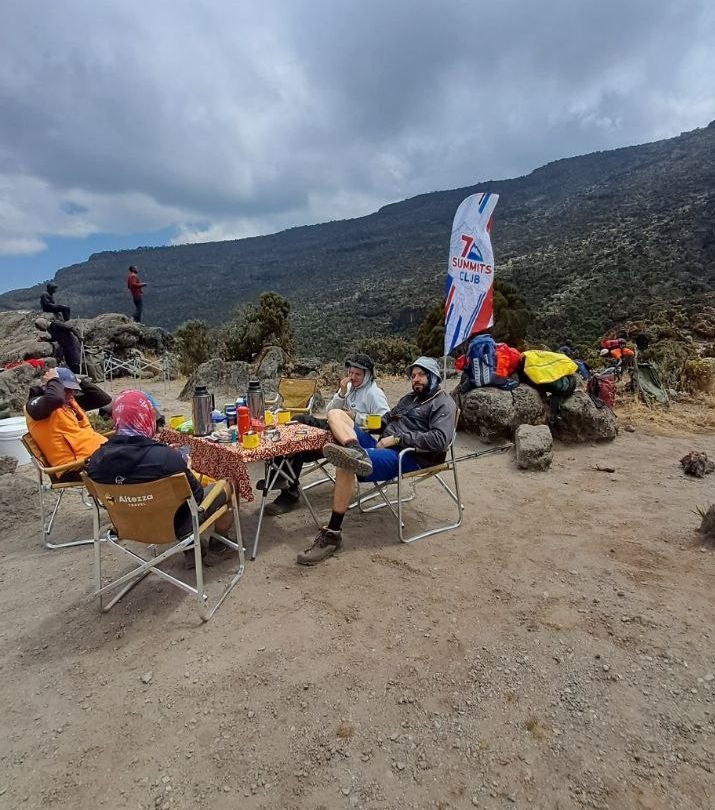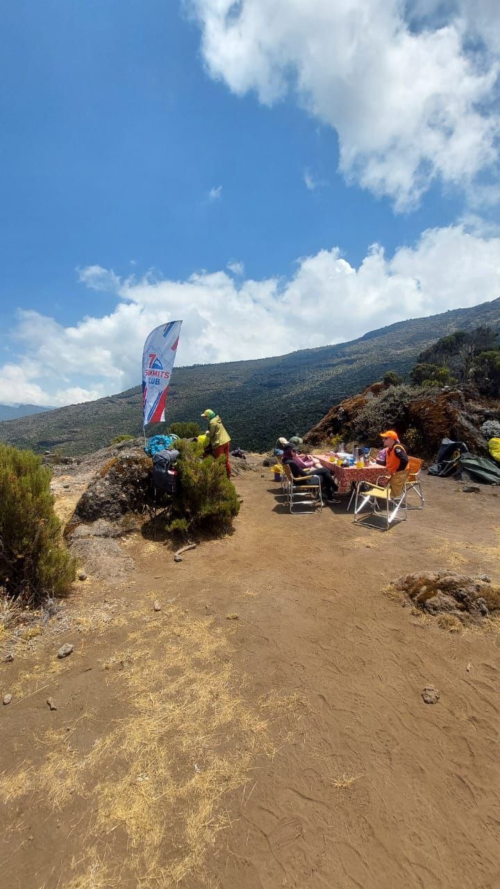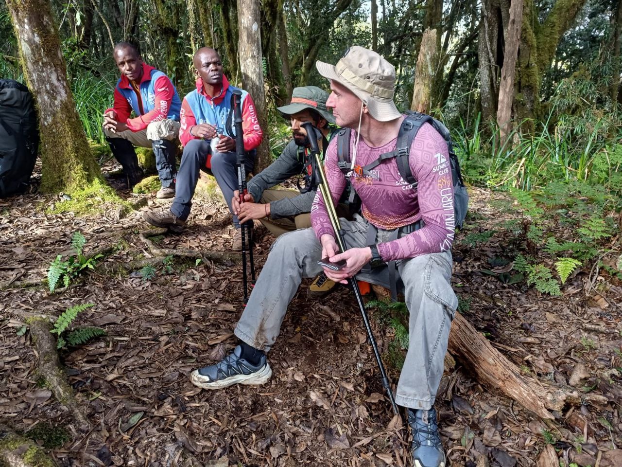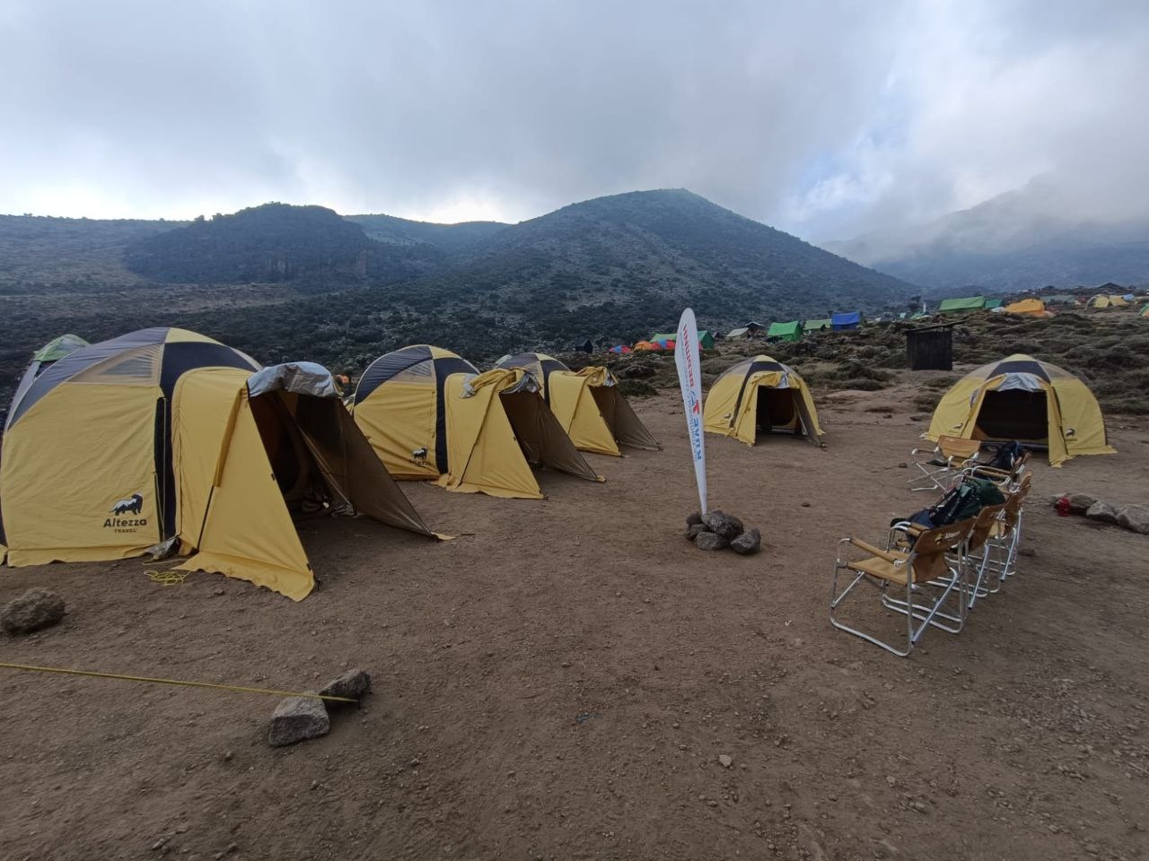 Hello, 7 Summits! The Bang Brothers team safely climbed to Machame Camp at an altitude of 3000 m yesterday. We were lucky with the weather, the rain accompanied us only halfway. And then we came out of the cloud, so we arrived at the camp dry. We ate well, slept well. We will soon continue our way up, right after a delicious breakfast.