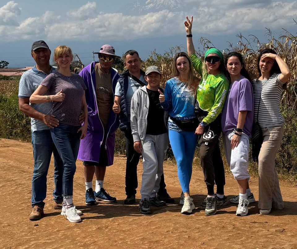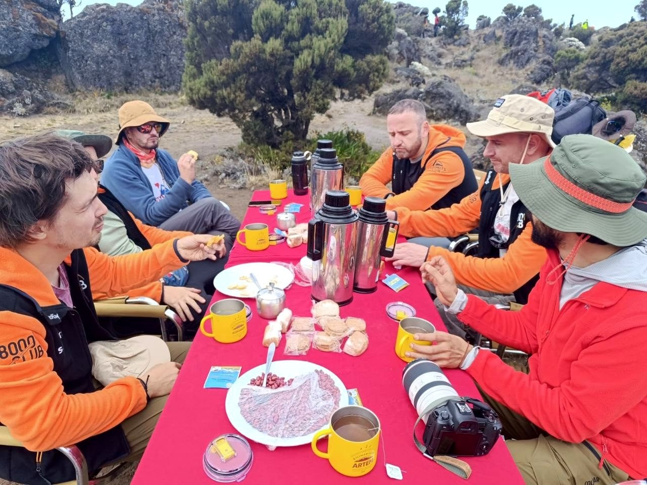 Only one member arrived a day later than the group and was catching up individually. Looking ahead, I'll say that, due to his excellent physical condition and acclimatization in the Himalayas, our Sergey caught up with the group in one day instead of the planned two. He gained such momentum and got into the swing of things that he couldn't stop, overtook the group, and climbed Kilimanjaro in three days instead of the planned six. Sergey is now back at the hotel with a new summit on his list of accomplishments and is waiting for the rest of the guys at the hotel tomorrow.