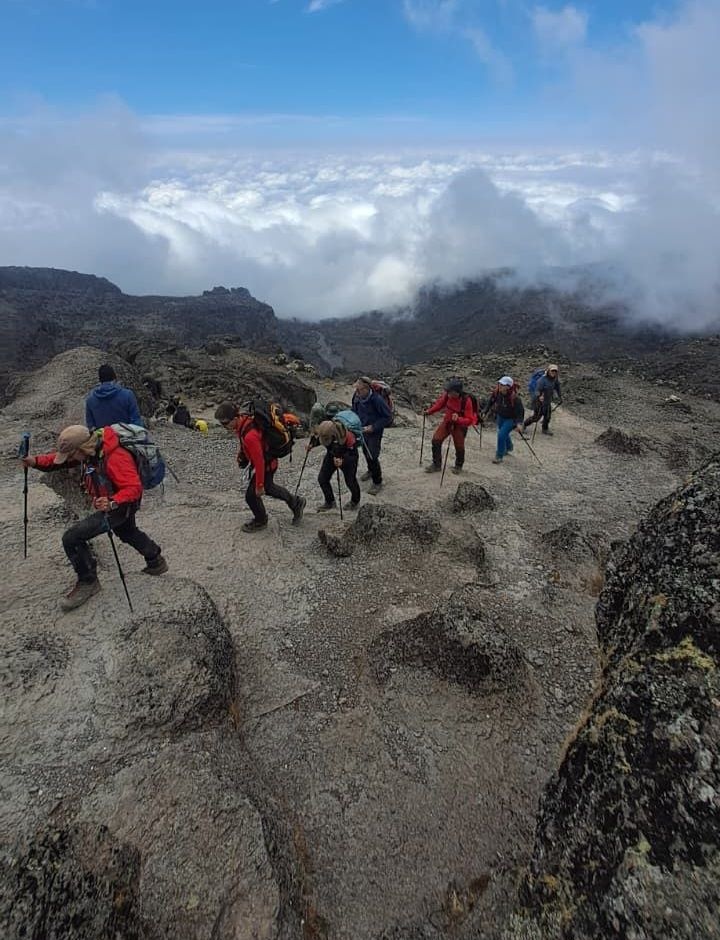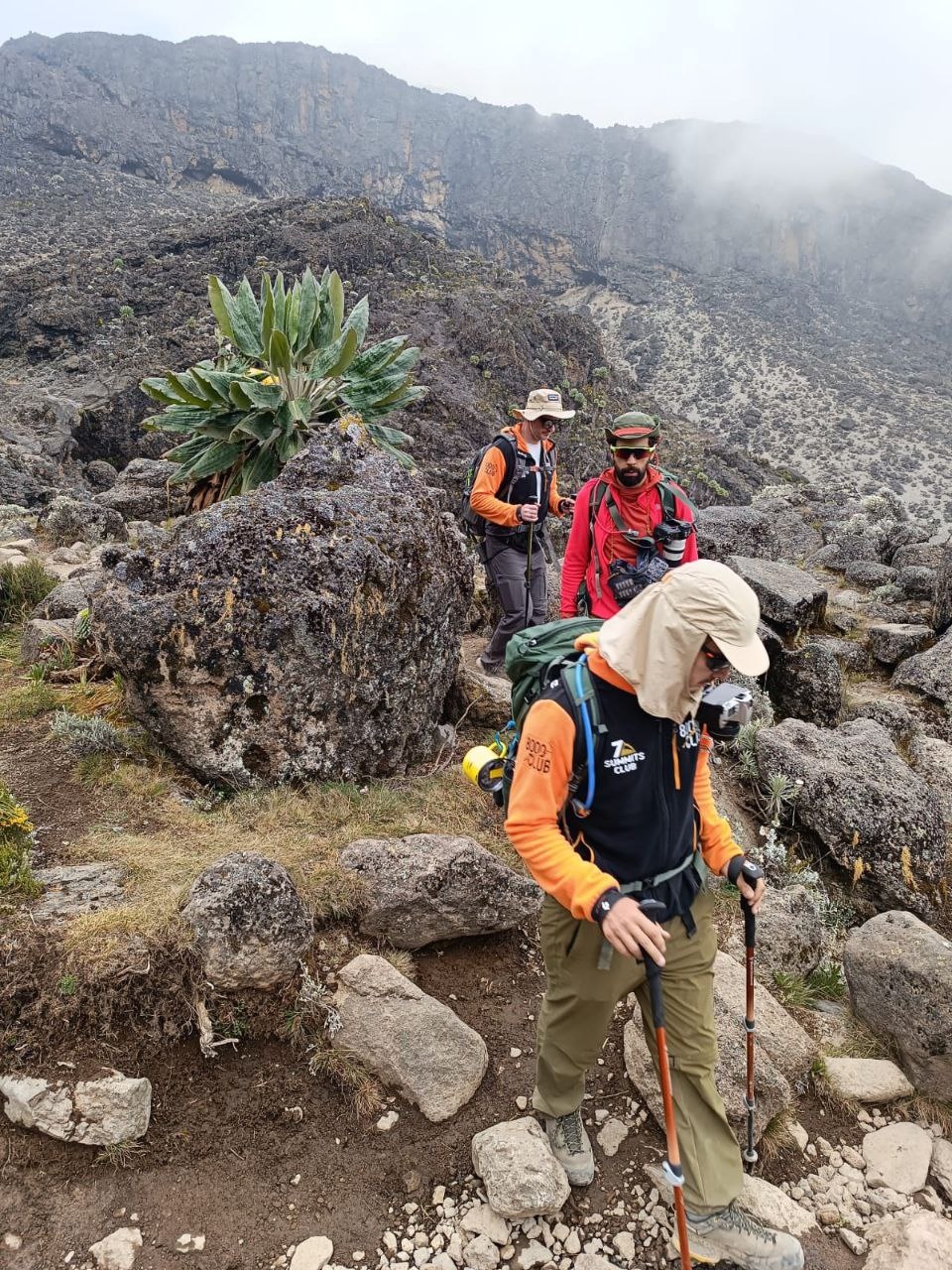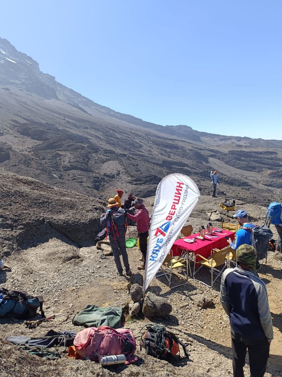 September 17. Hello everyone! Jambo Ma-Rafiki! The 7 Summits Club group "Fura on the Left" completed the most challenging day of the trek today – the ascent to Lava Tower (4,640m) and the descent to Barranco Camp (3,900m) at the foot of the famous Barranco Wall. The group accomplished the task brilliantly. The weather was favorable, once again without precipitation. The service, as always, was excellent!