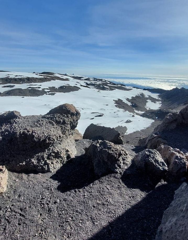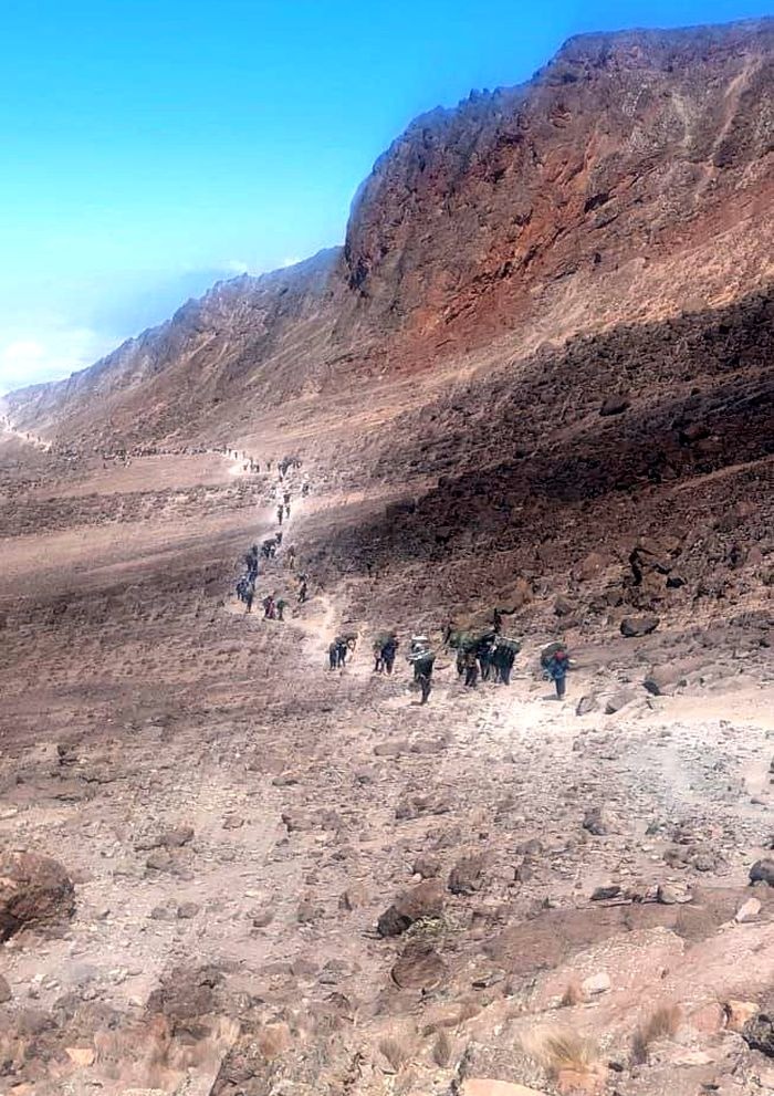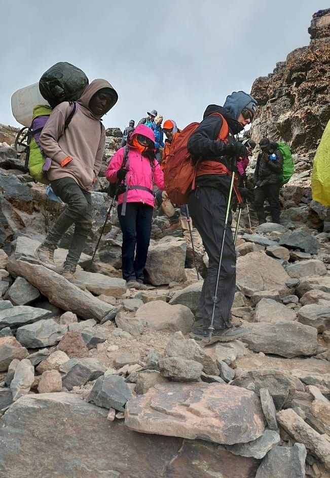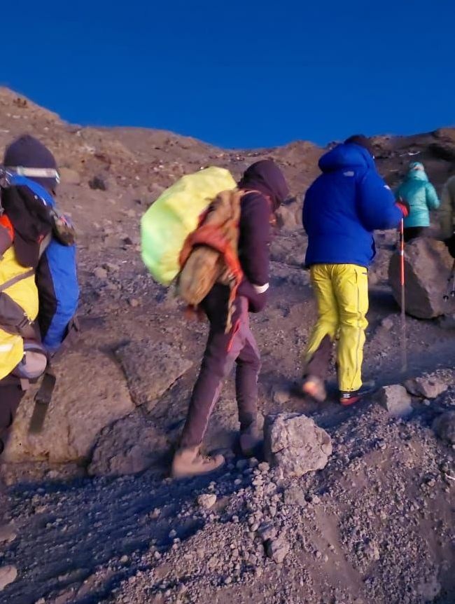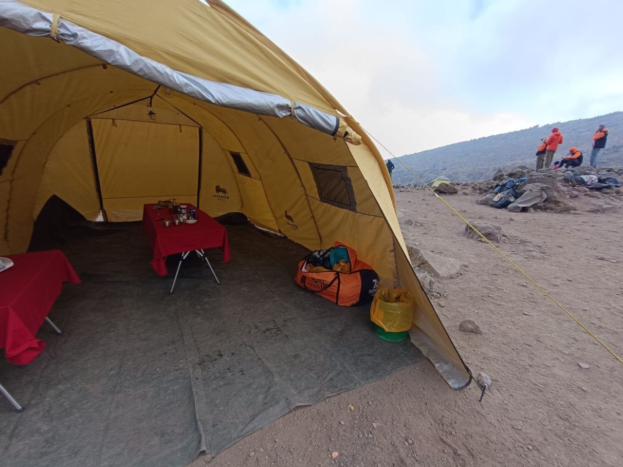 After about four hours of gradual ascent, crossing desert terrain that sometimes feels like a walk on Mars, you reach Kibo Camp at 4,700 meters. There, cozy cabins and the thoughtful faces of climbers await you, anticipating the night of the summit. And also the carefree faces of the local guys, for whom this has long been a routine and part of their lives.
