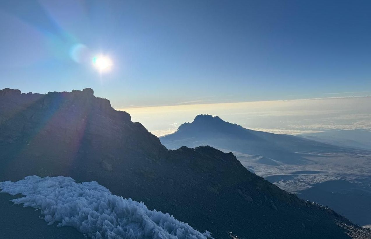 September 20. Hello everyone! Jambo Ma-Rafiki! Hooray, the summit! Today, the 7 Summits Club group "Fura on the Left" successfully summited Uhuru Peak, the main peak of the Kilimanjaro massif at 5,895 meters! As with all the days of the climb, it was sunny, but quite cold at altitude. It's winter in Tanzania, after all. We're now warming up in our camp on the edge of the jungle.