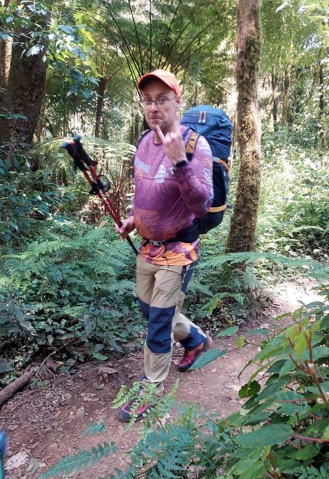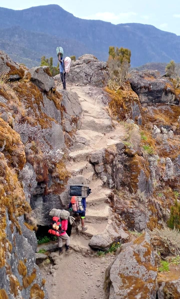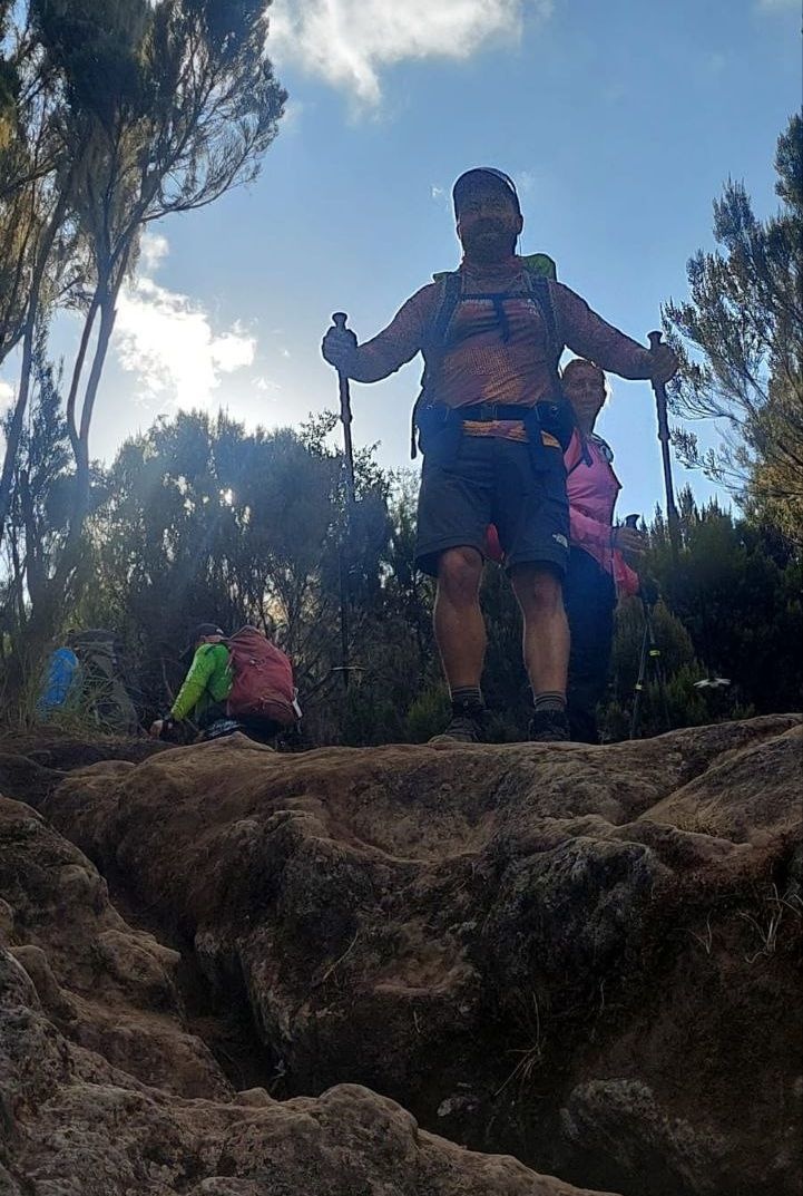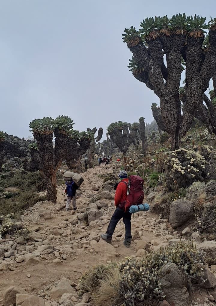 Also on the descent, halfway between Horombo and Mandara, we met a legend of our mountaineering, Uncle Vitya, whom we had recently seen in Namche Bazaar and Kathmandu.