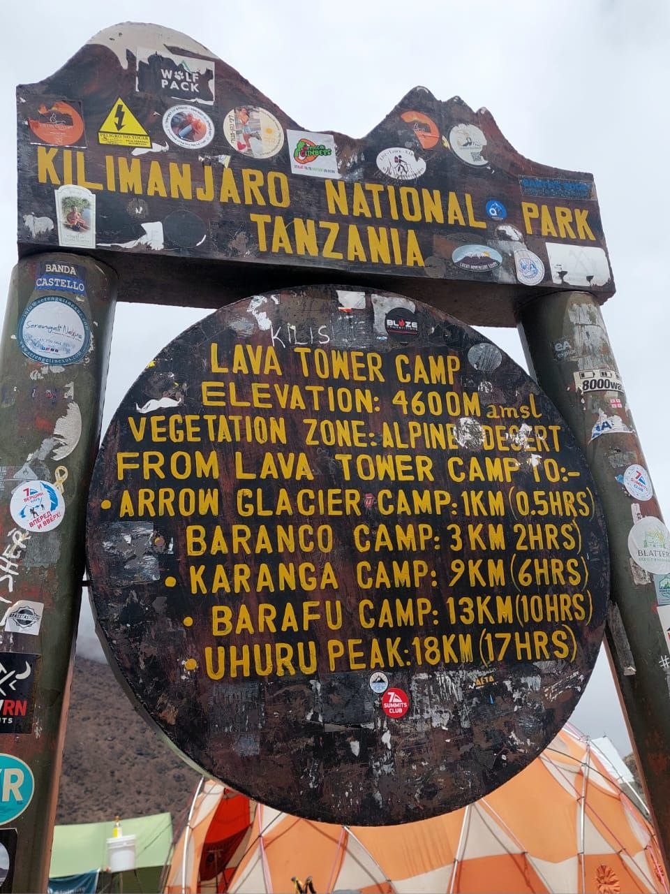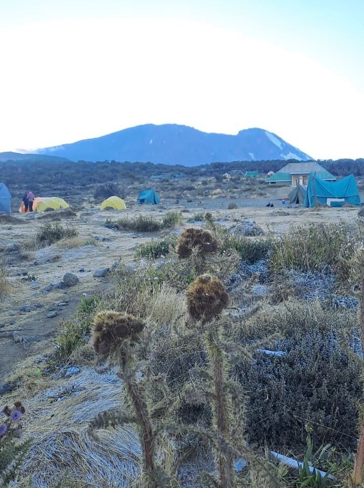 Greetings from Shira Camp on the slopes of Kilimanjaro! Yesterday we climbed here in great weather, to an altitude of 3800 meters. Now we are thawing out in the sun after a cool night. The plan for today is to reach an altitude of 4600 m, a place called Lava Tower. Spend a couple of hours there, have a snack, and continue on to Barranco Camp.