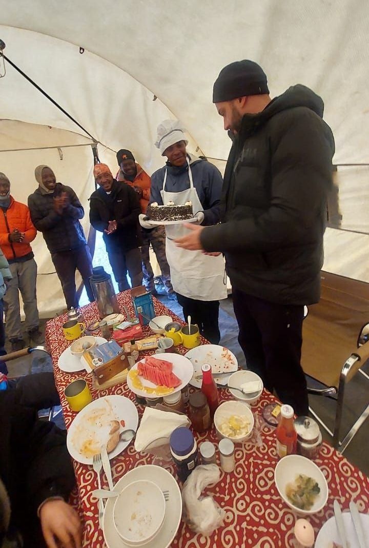 By evening, we had already descended to the Millennium camp, where a celebratory cake and rain awaited us. Everything is fine!