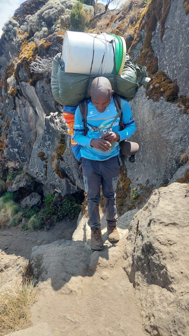 Arriving a day late, I decided to catch up with the group immediately. The expedition organizers were understanding and provided me with a local guide, porter, and transportation, for which I am eternally grateful. My physical condition allows me to undertake long treks upward, and in the end, Francis and I ran from the entrance to the national park to Horombo Hut in one day—or more precisely, six hours—covering 19 km and gaining 2,300 meters in altitude (from 1,450 to 3,750 meters).