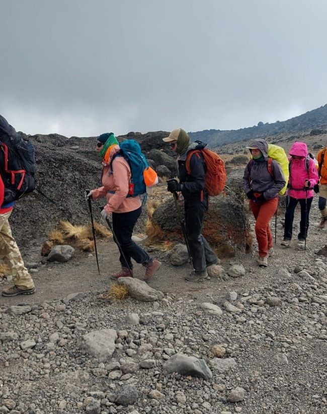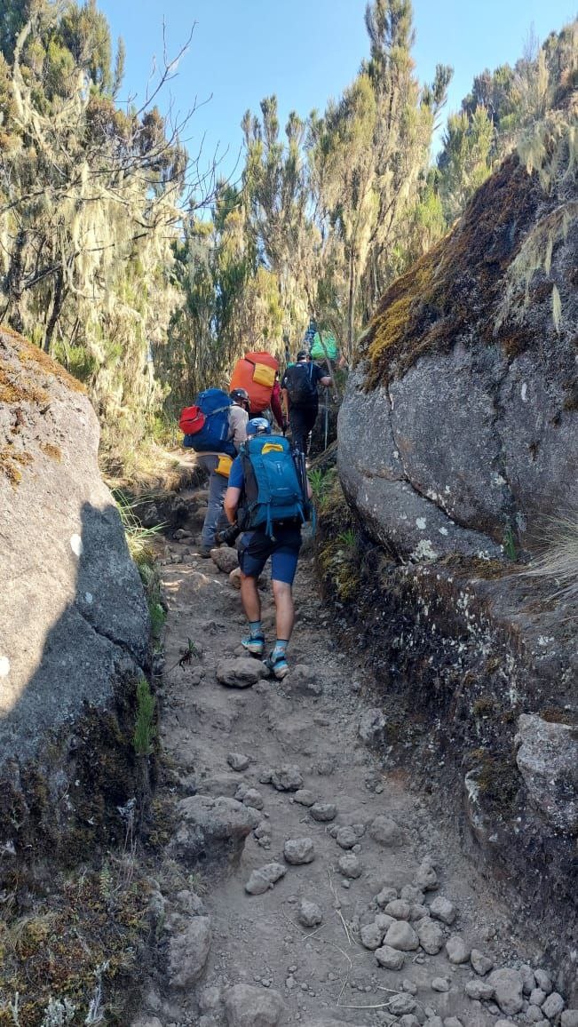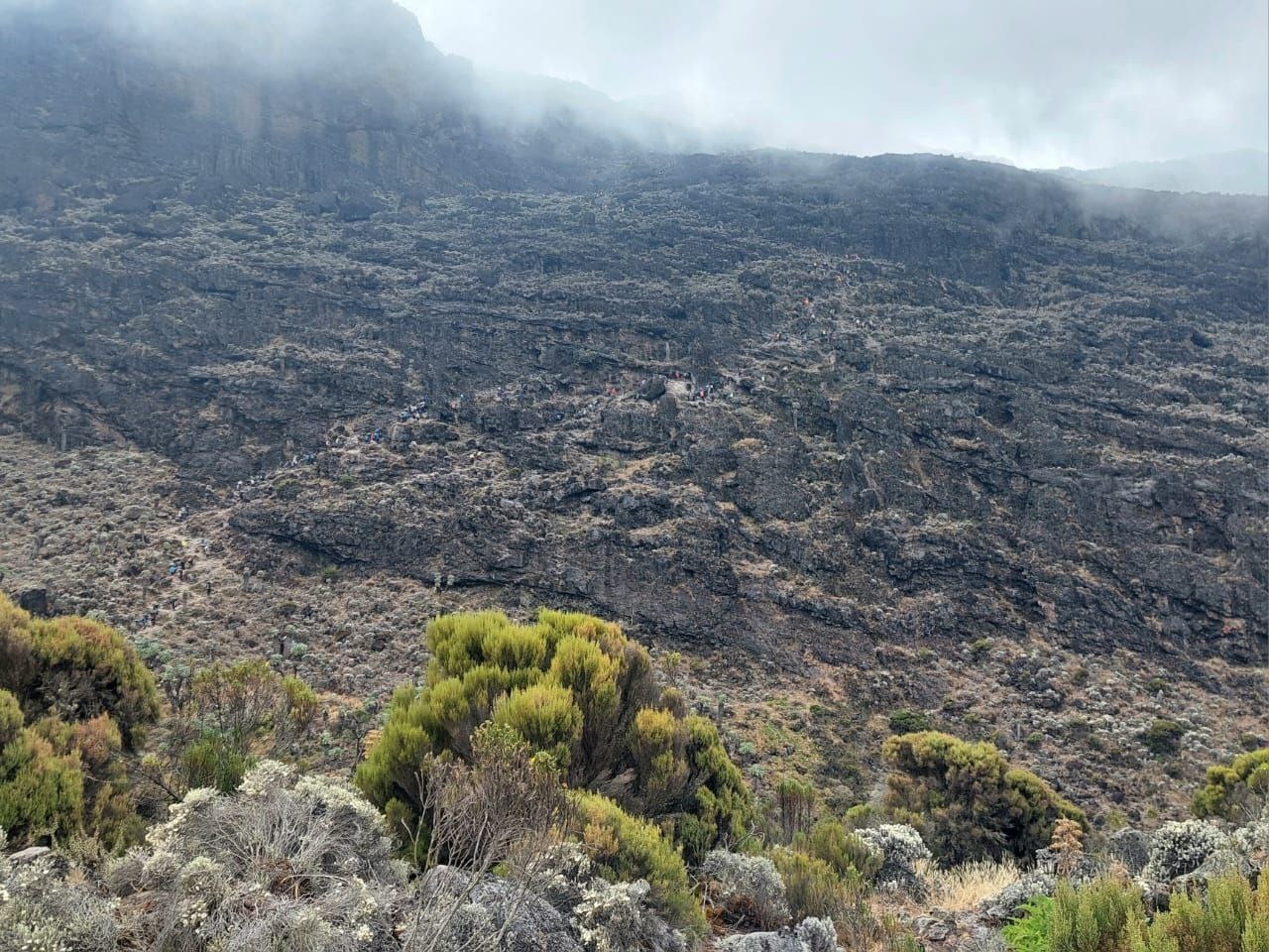 Hello 7 Summits! The slope of Kilimanjaro is in charge. Yesterday, the plan was almost completely fulfilled. It's a pity that now they don't let us climb the Lawa Tower itself, we would have climbed there for a better view. Now we are finishing our morning coffee and looking at the Barranco Wall. In an hour, we will storm it on the way to the next camp. The devices show that the condition of all our participants is satisfactory, which is confirmed by the whole team. We are walking moderately smoothly, in a friendly manner, we are coping with the height.