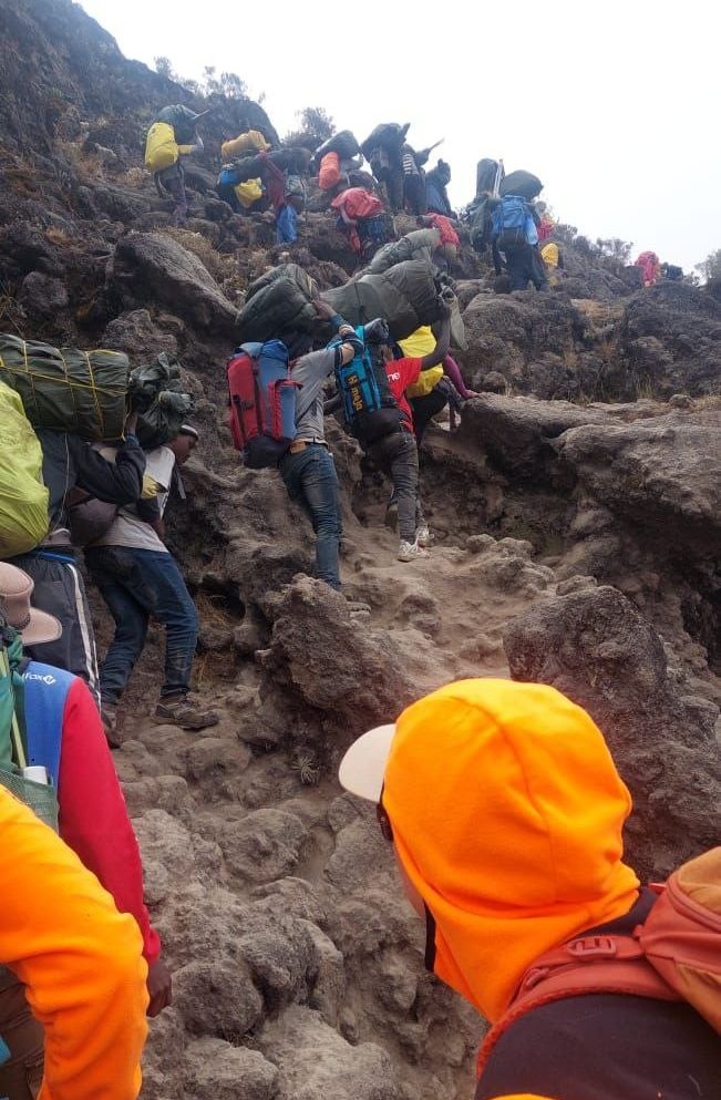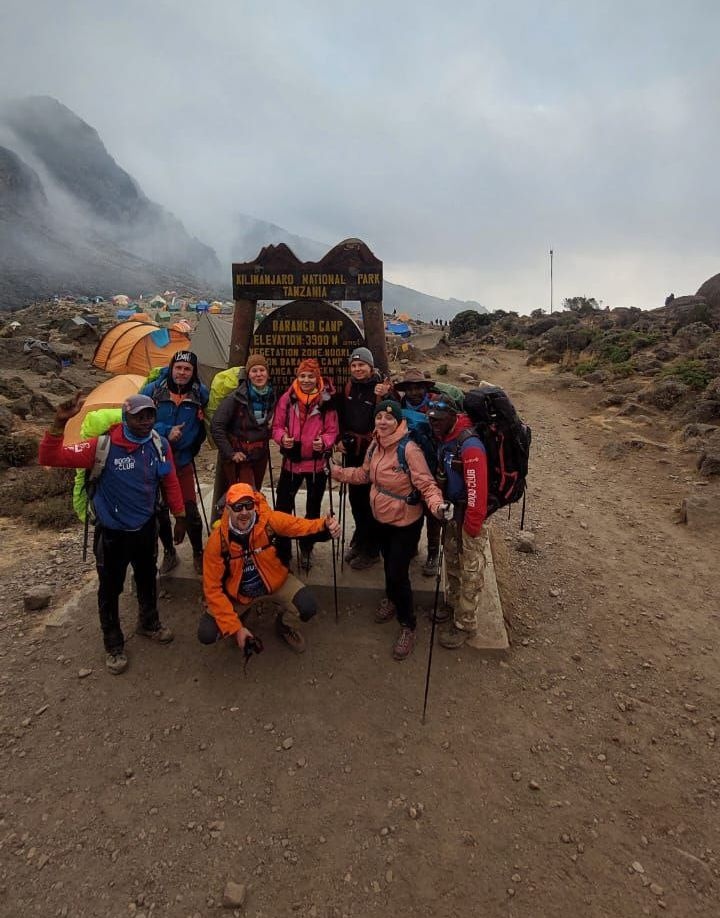 September 18. Hello everyone! Jambo Ma-Rafiki! The 7 Summits Club group "Fura on the Left," after a delicious hearty breakfast, set out to assault the Barranco Wall, which at first glance seems like an impenetrable fortress... But anything goes, and we conquered it in two hours!